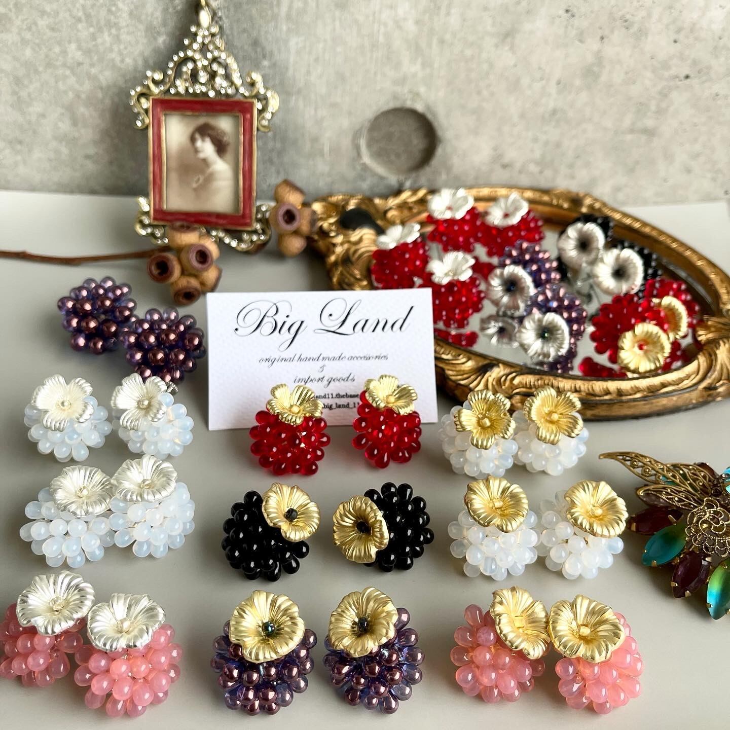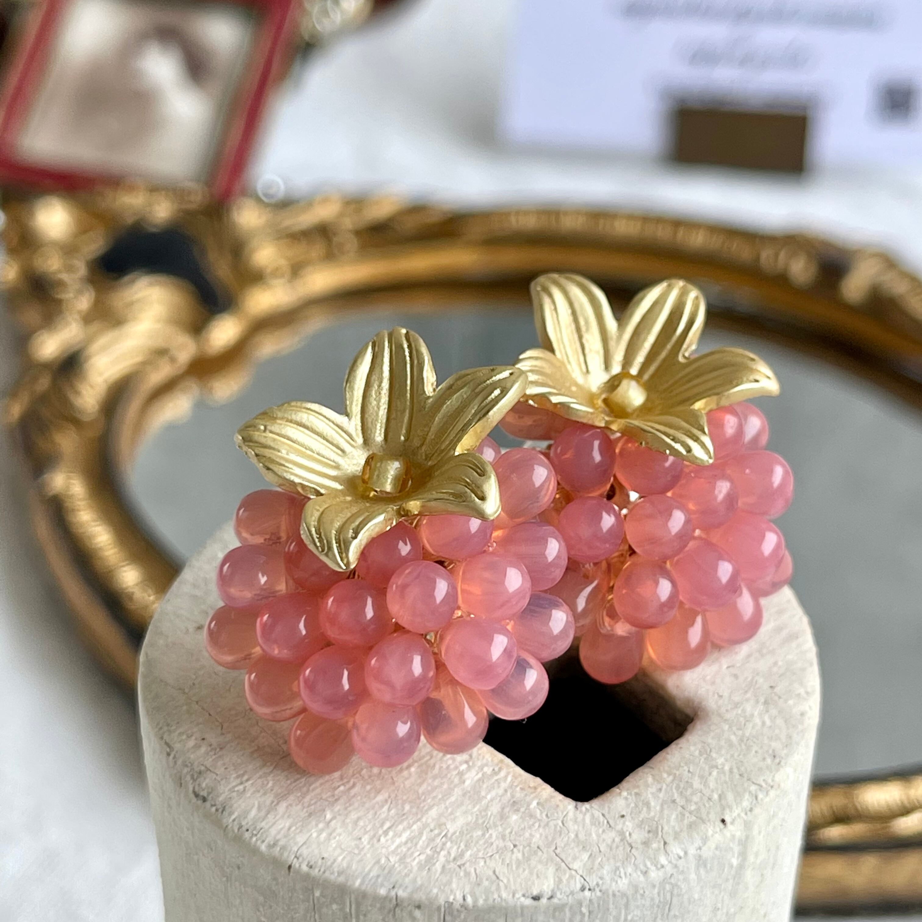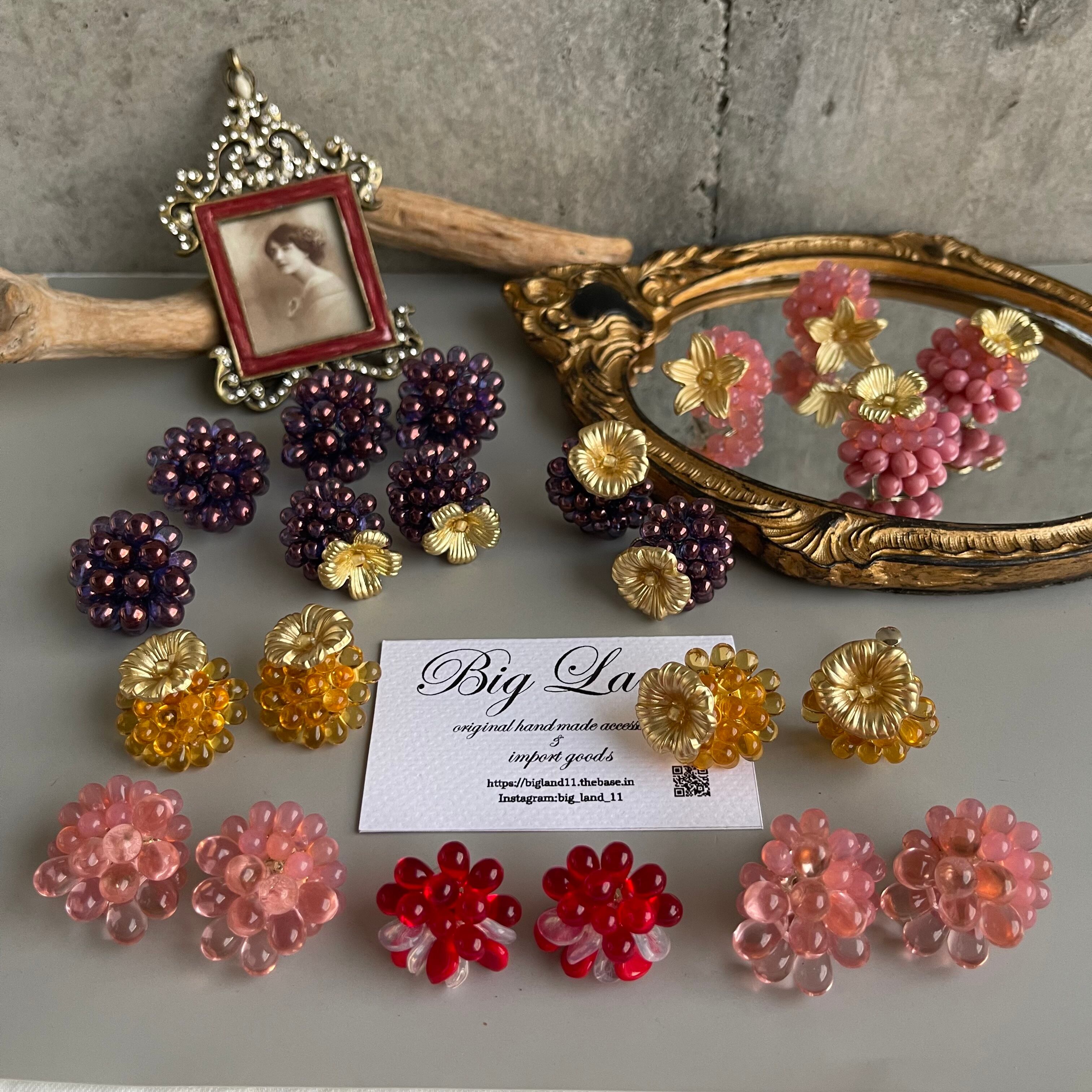 マットなお花とチェコガラスの組み合わせが堪らないキュートさ ‼️