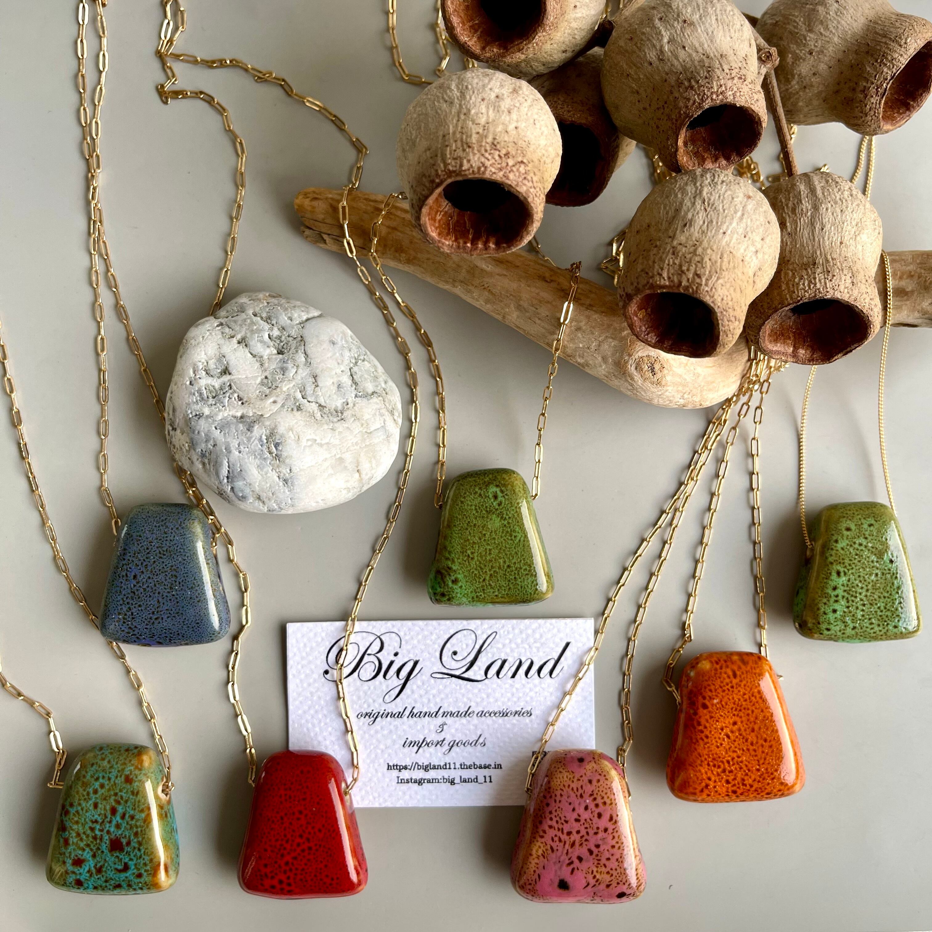 夏はリネン、秋服は暗いお洋服が多くなりますがカラフルな作家風なネックレスで胸元にセンスが光ります✨
