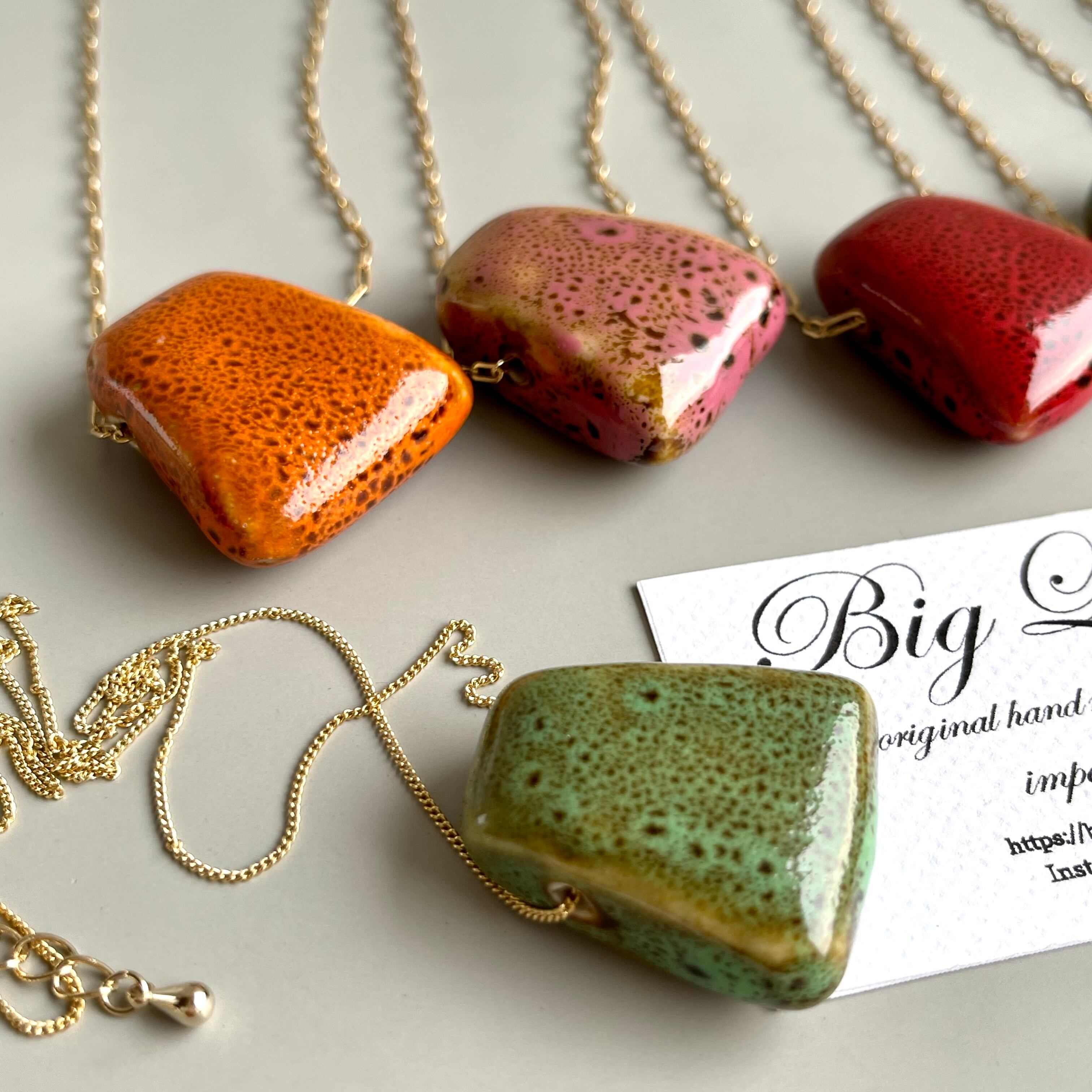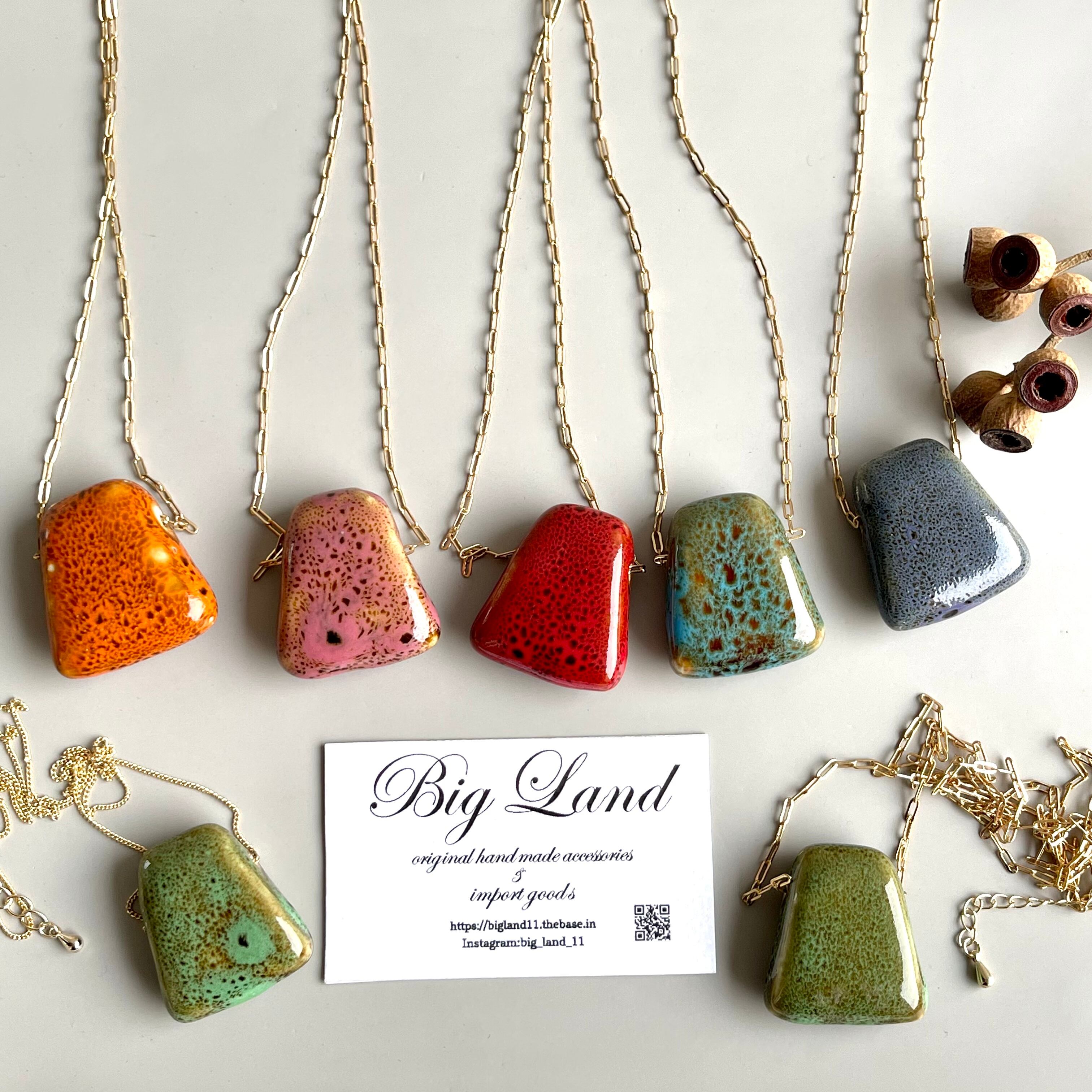 夏はリネン、秋服は暗いお洋服が多くなりますがカラフルな作家風なネックレスで胸元にセンスが光ります✨