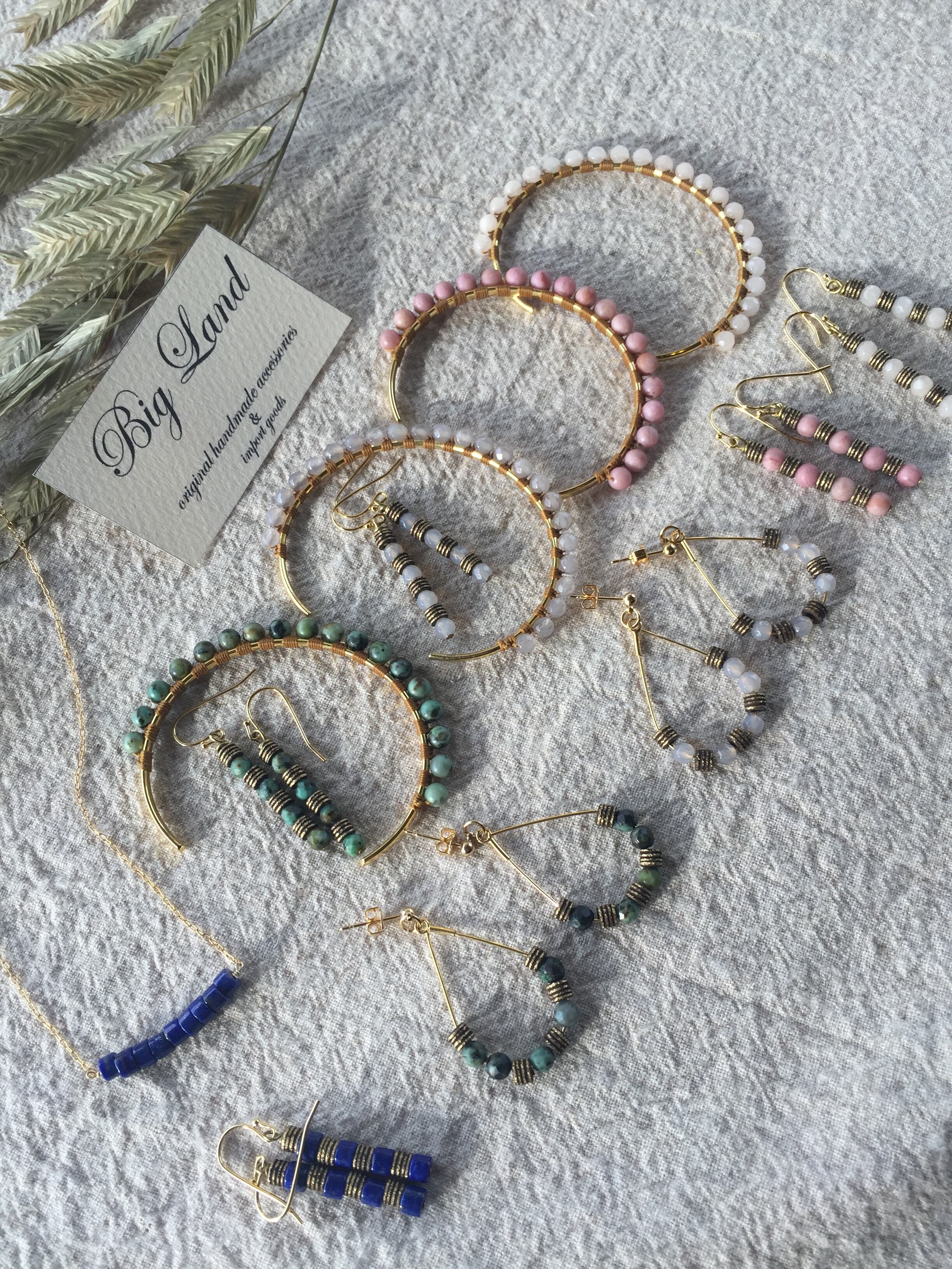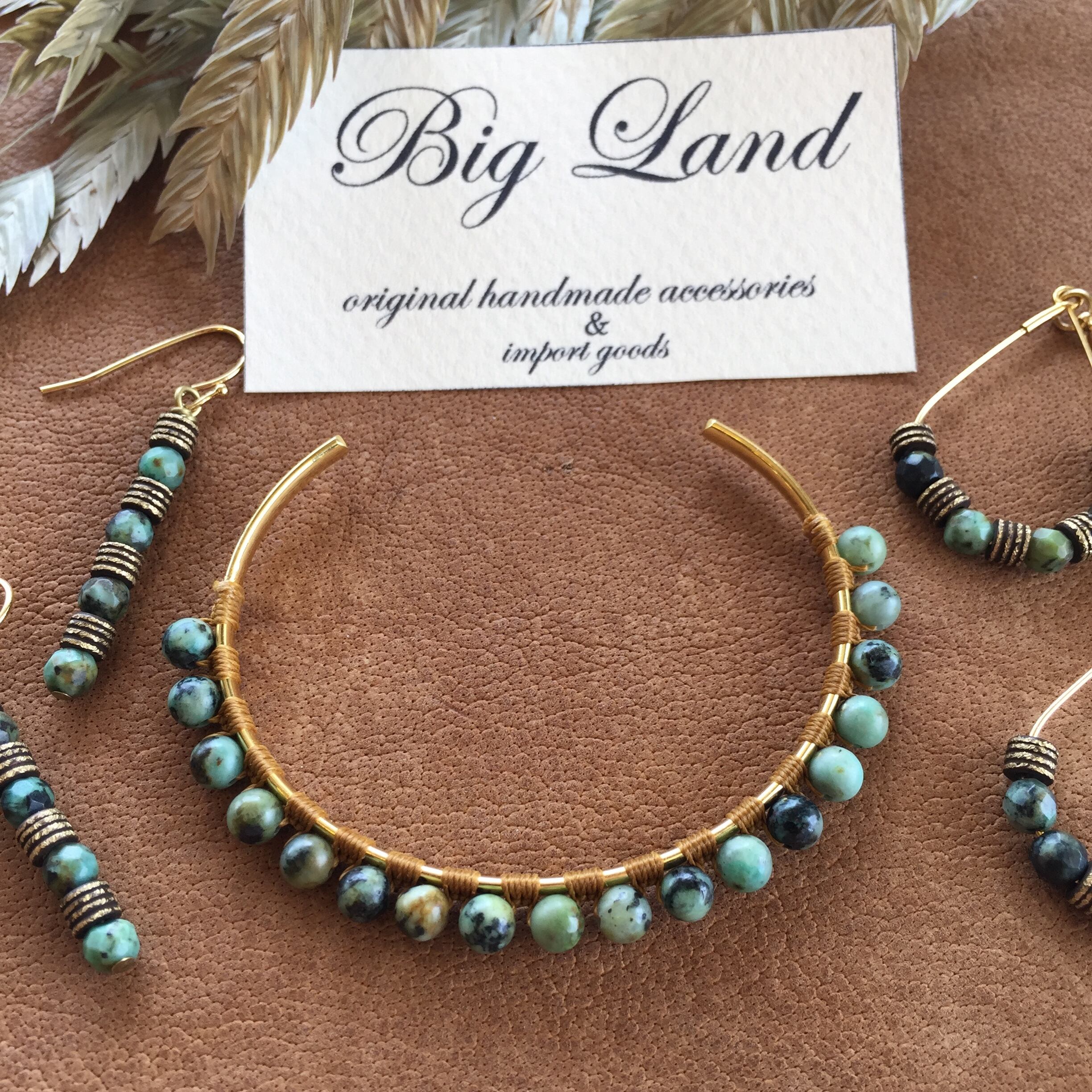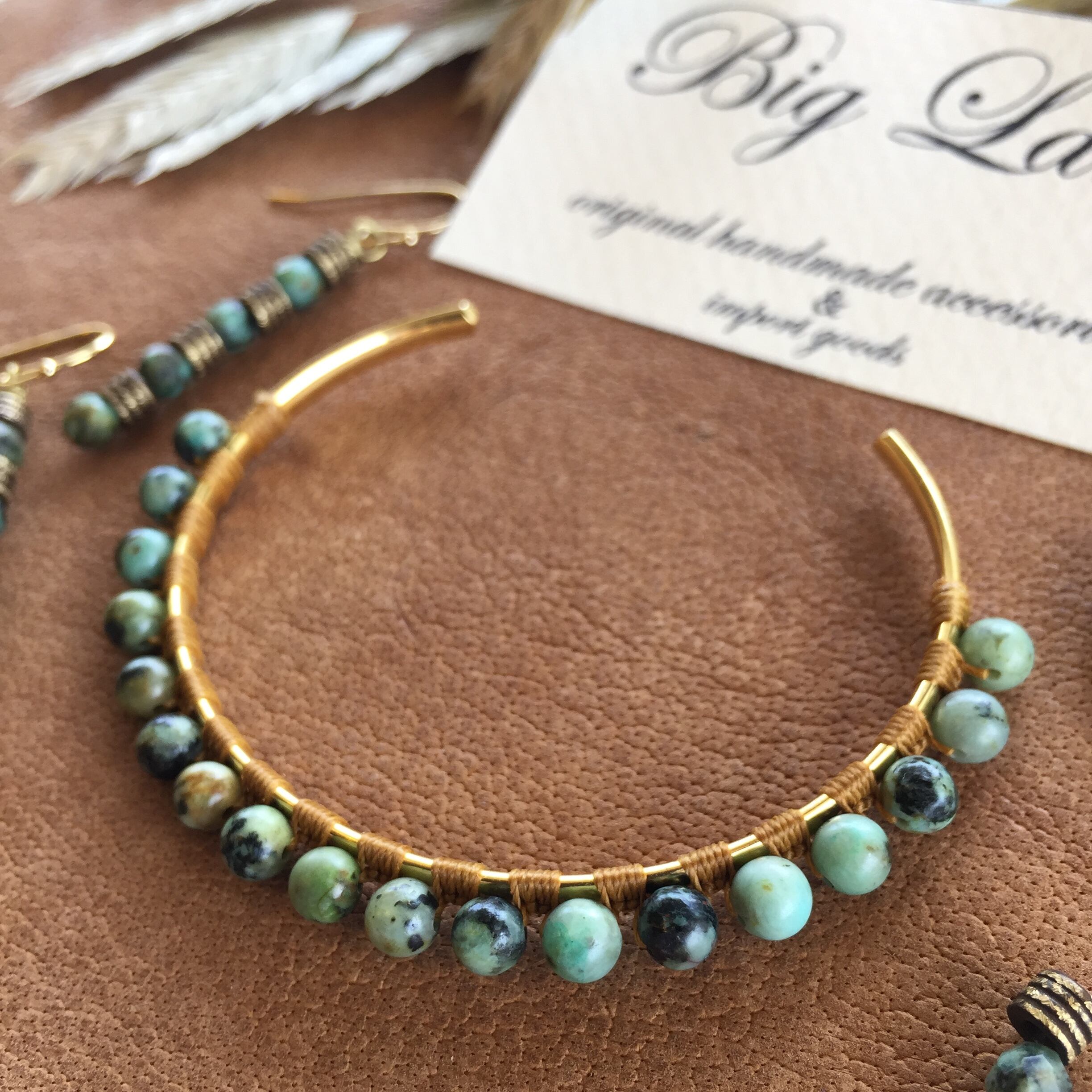 地金にぎっしりと一列に固定された天然石が、手首でワンランク上の雰囲気を醸し出します‼︎