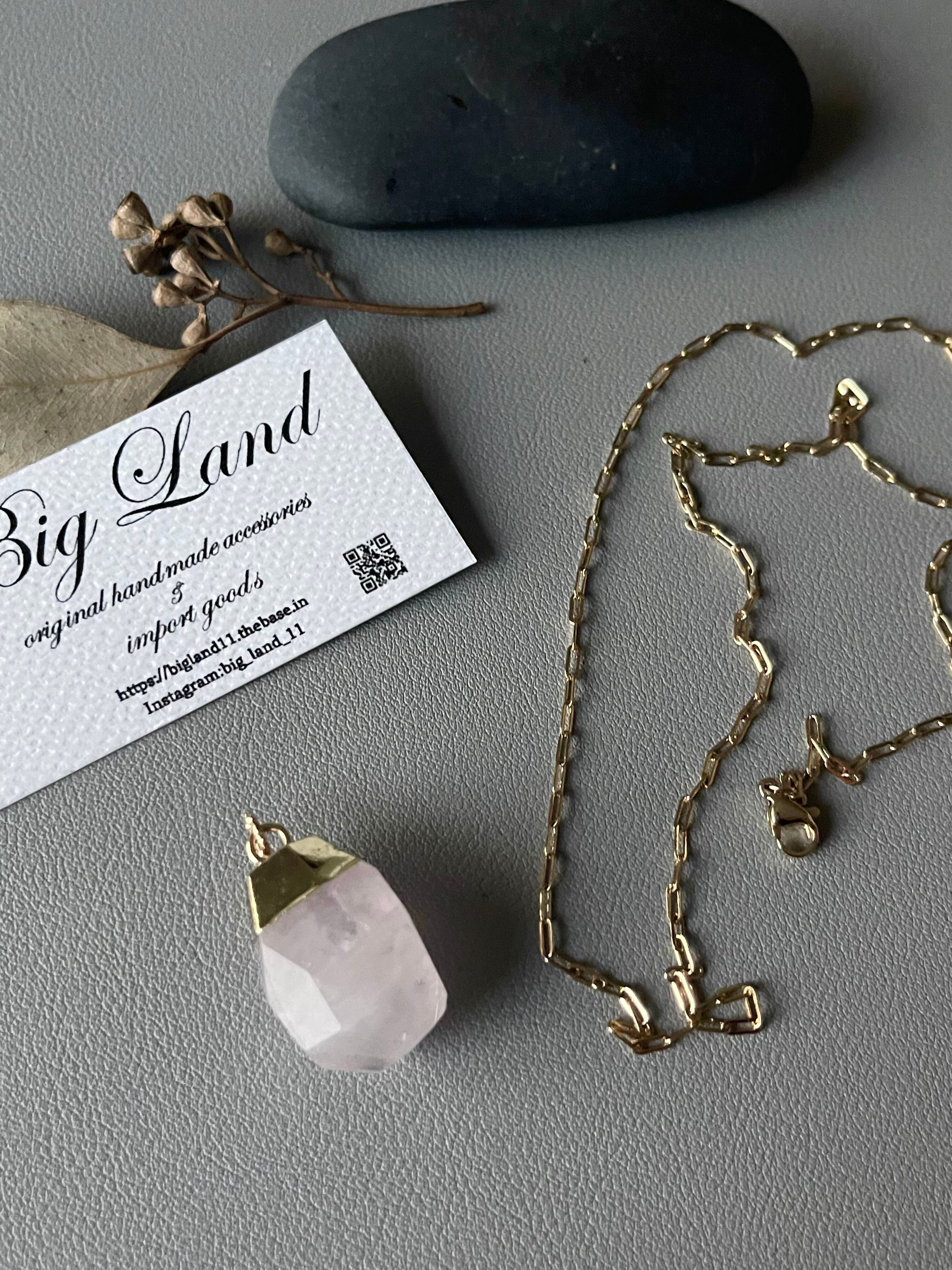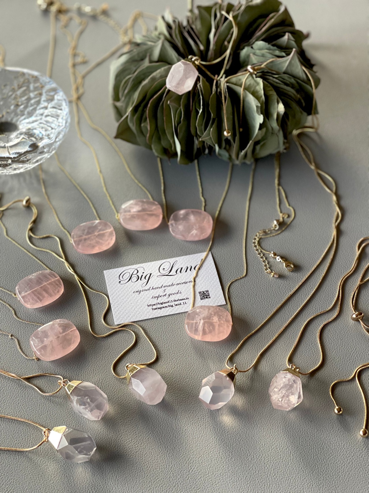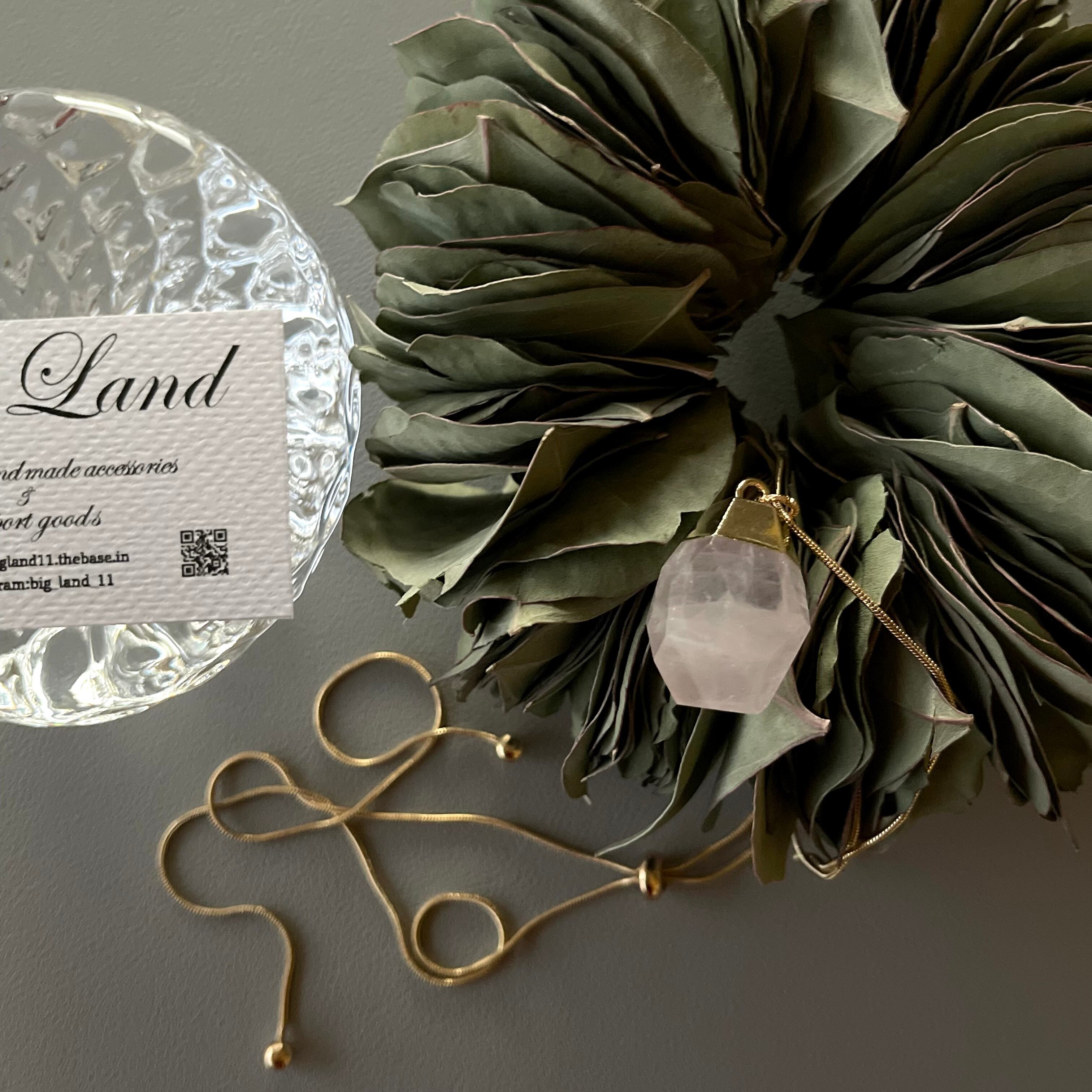 10月誕生石ローズクォーツに多面カットが施された存在感ある神秘的なロングネックレス✨