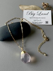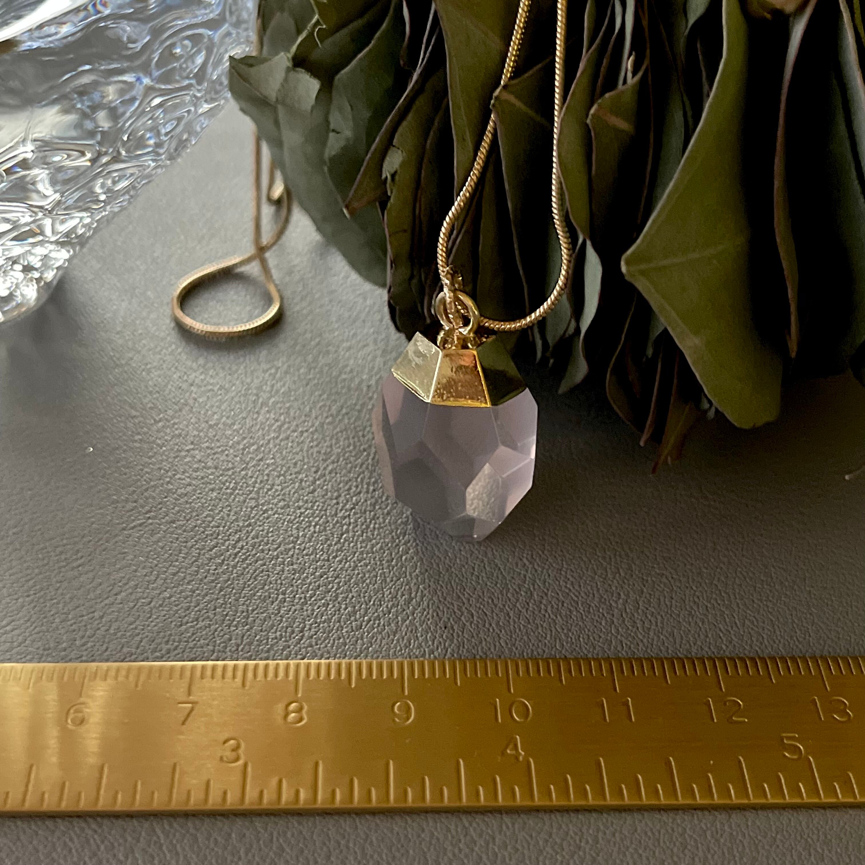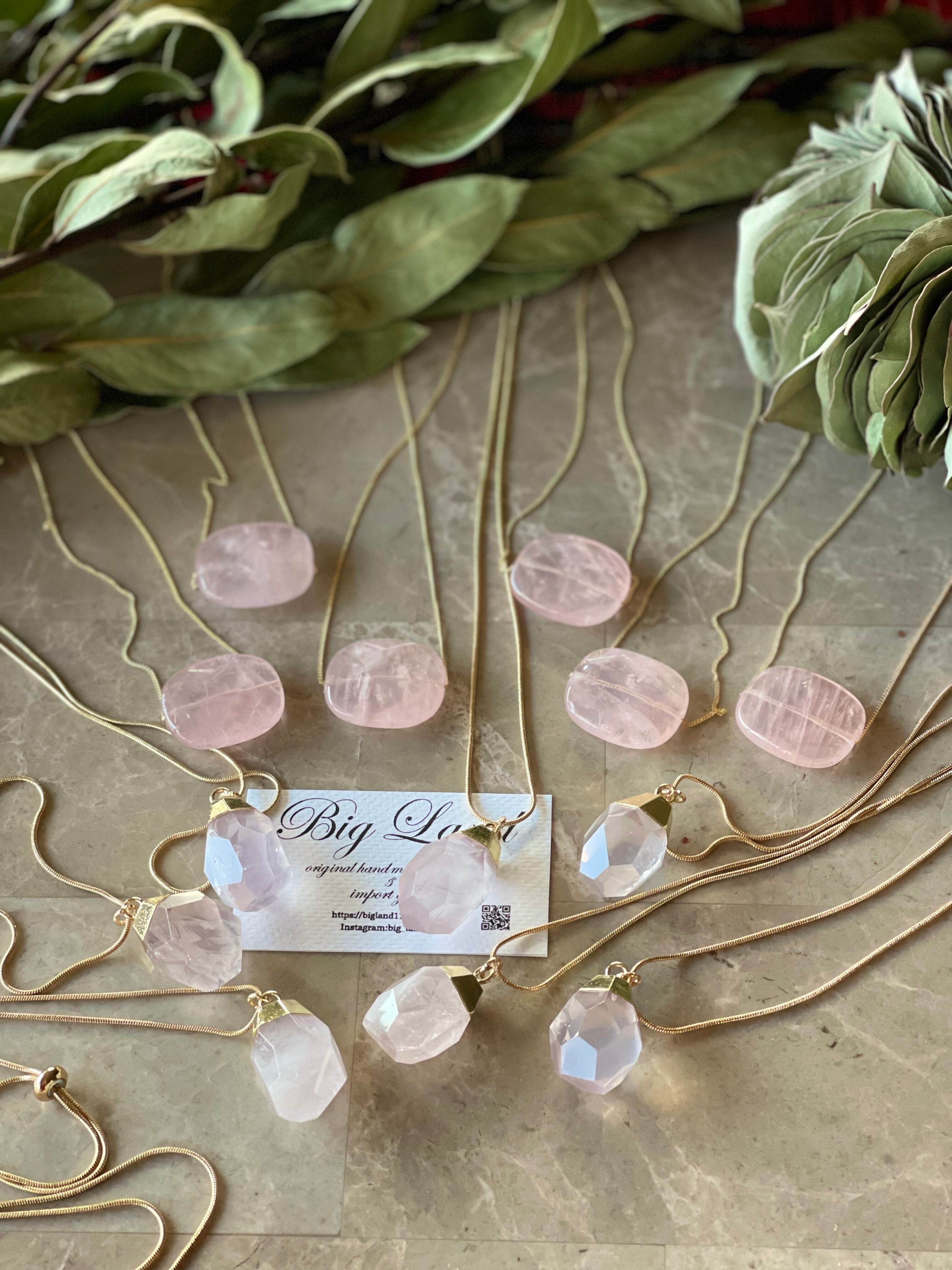 10月誕生石ローズクォーツに多面カットが施された存在感ある神秘的なロングネックレス✨