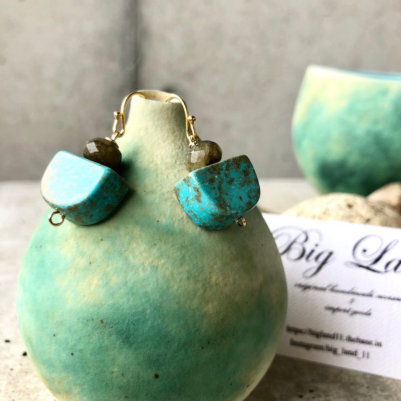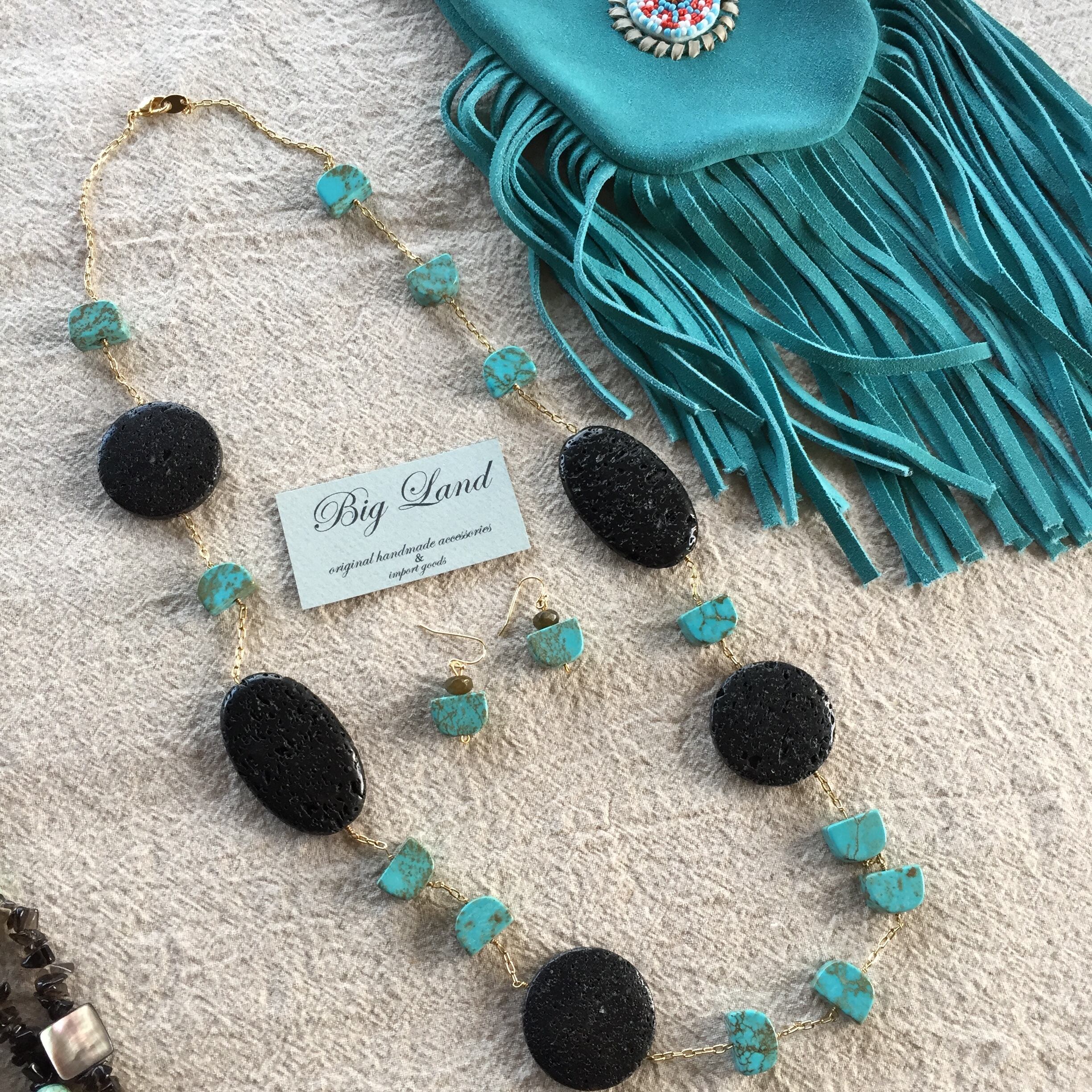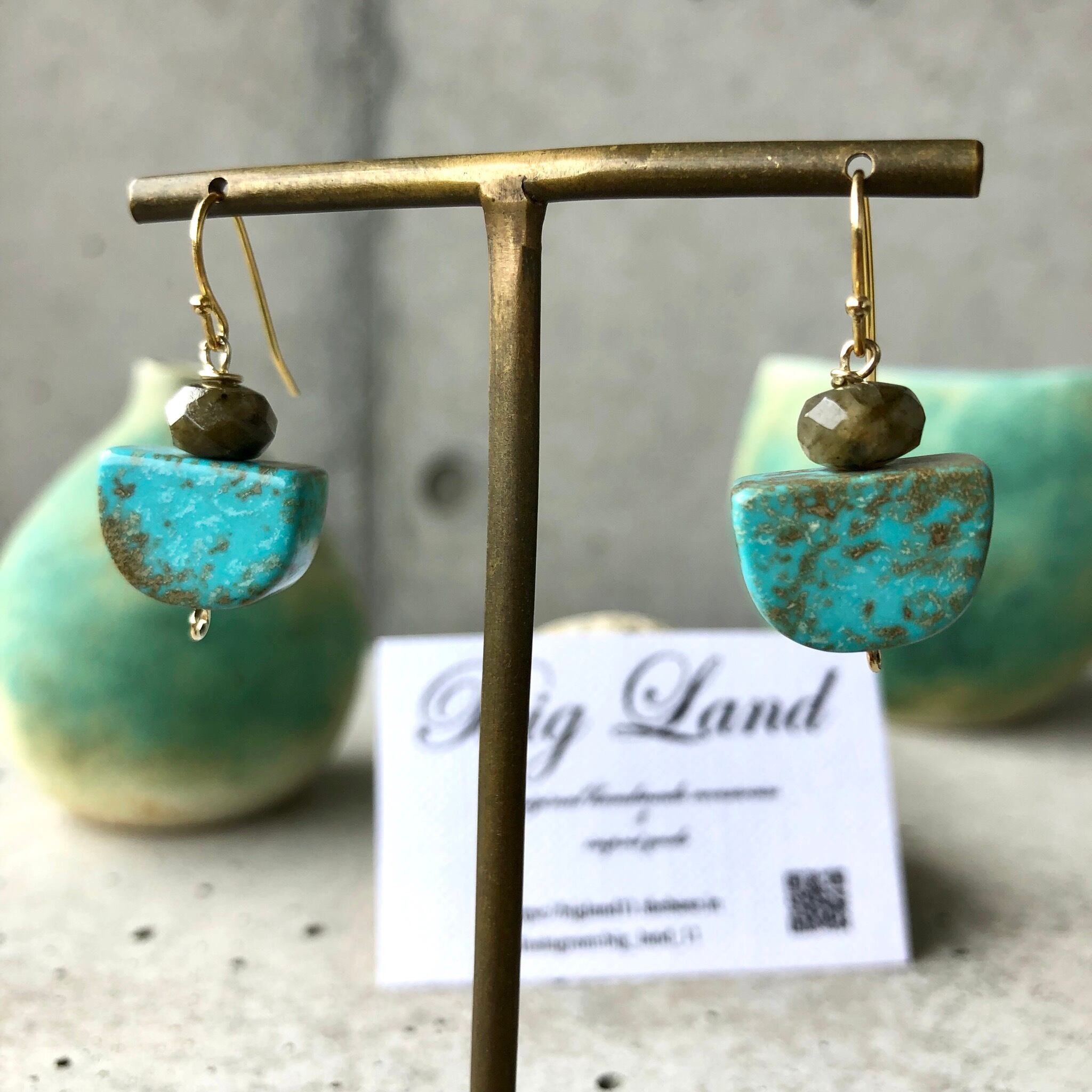 珍しい形のターコイズに多面カットのラブラドライトの人とあまり被らない珍しいデザインに仕上げました✨
