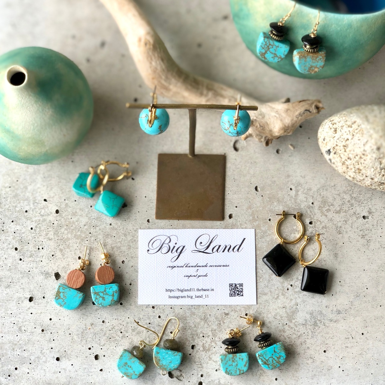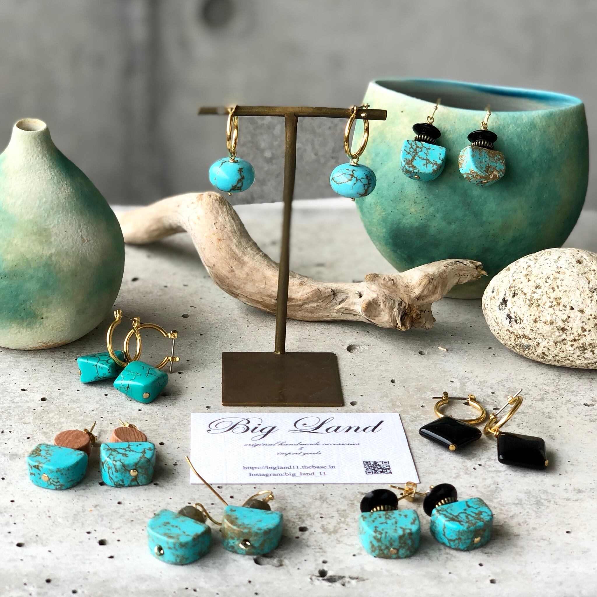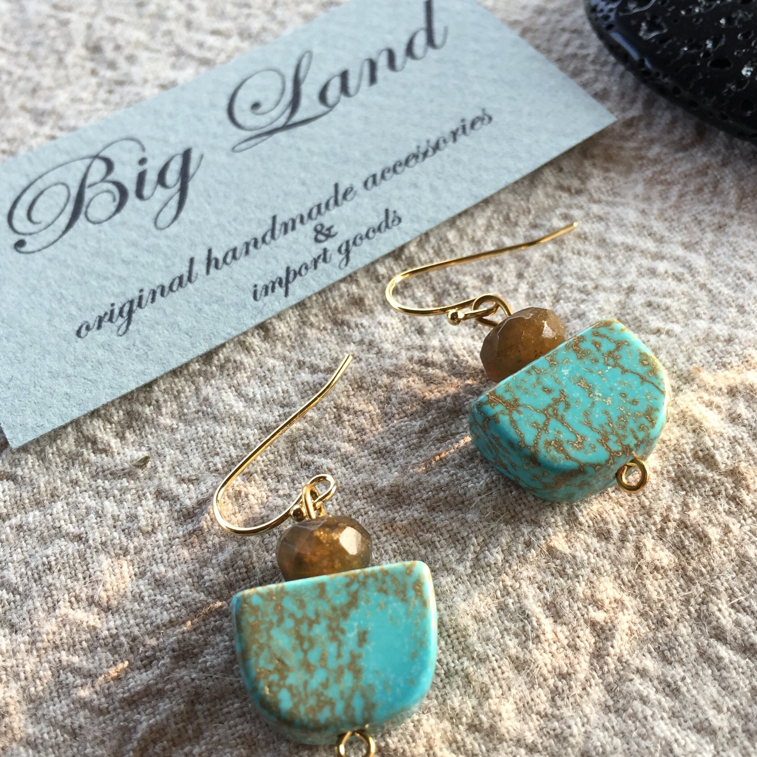 珍しい形のターコイズに多面カットのラブラドライトの人とあまり被らない珍しいデザインに仕上げました✨
