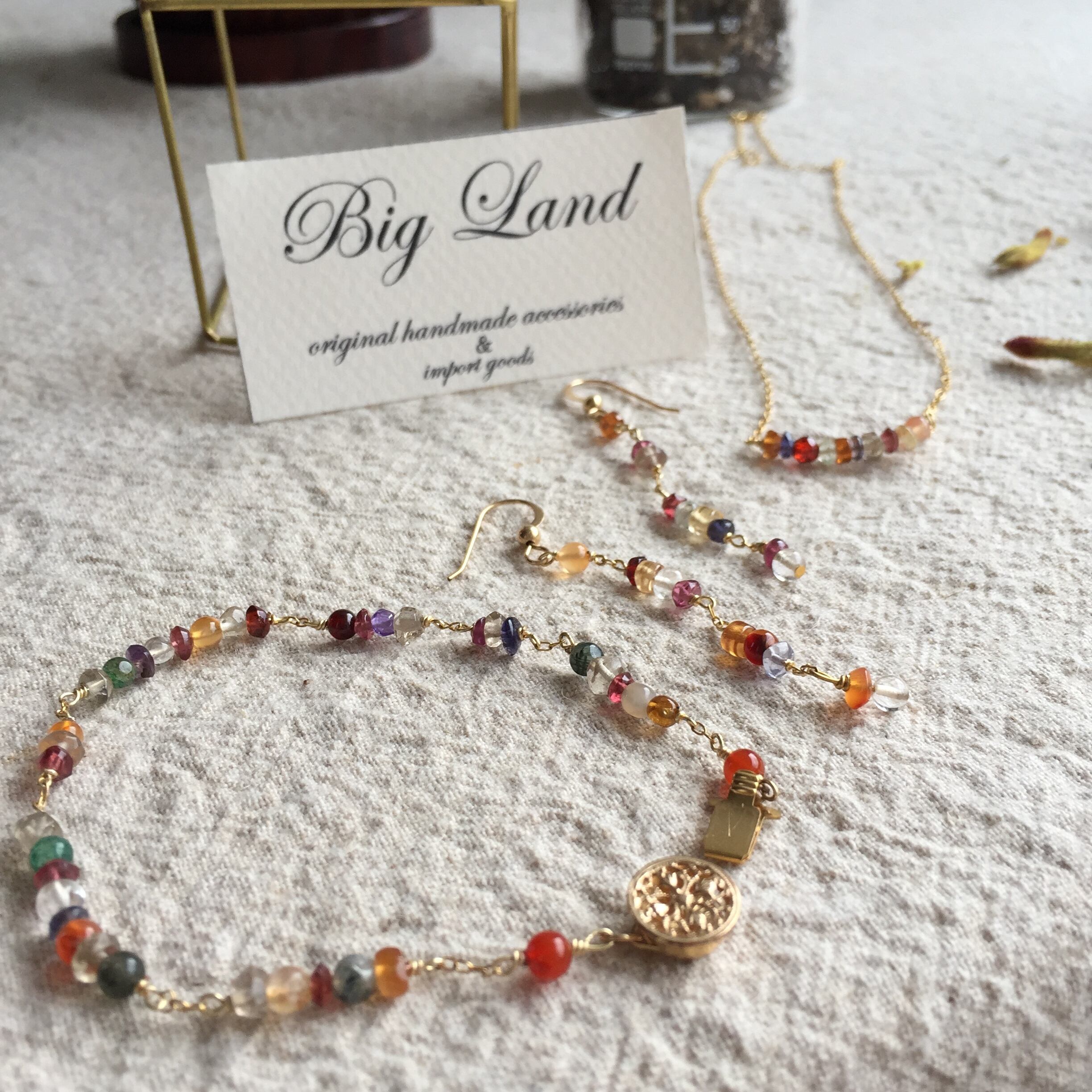 カラフルな天然石を14kgfの金具を使い上質な雰囲気に仕上げました✨