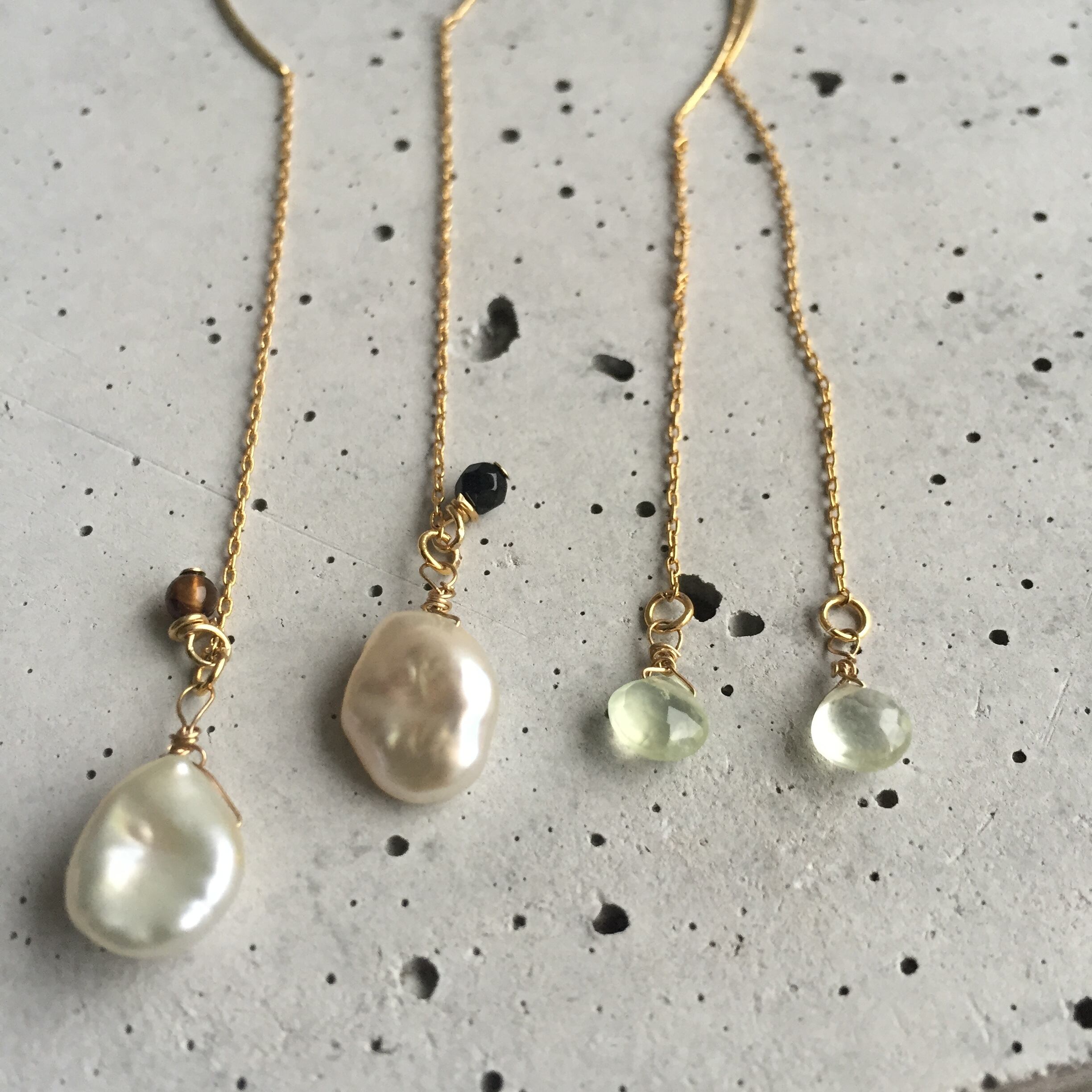 人気のあるけしパールに色違の小粒天然石を添える事によりこなれ感を出しました✨