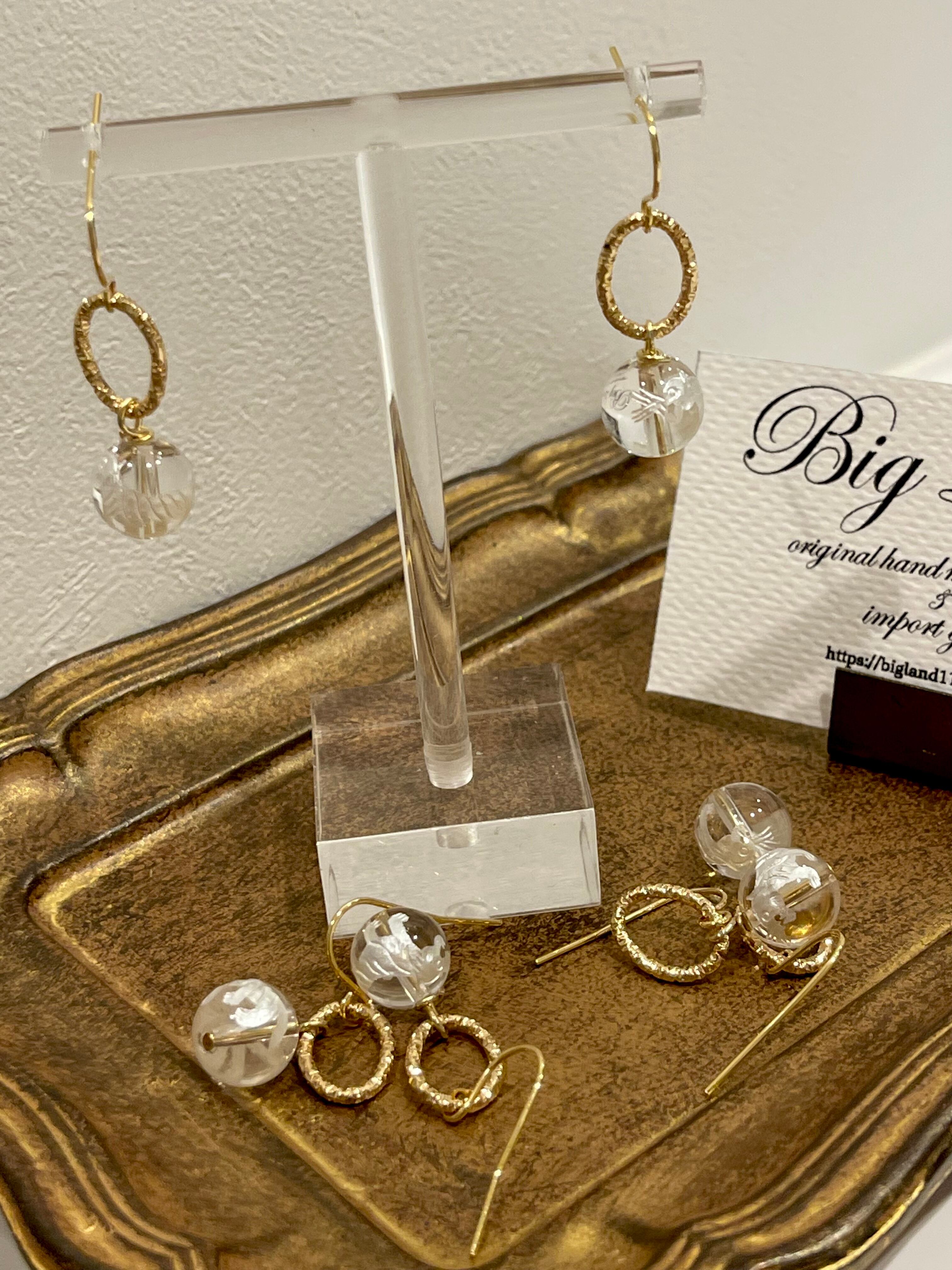 水晶ピアス 1cm ゴールド