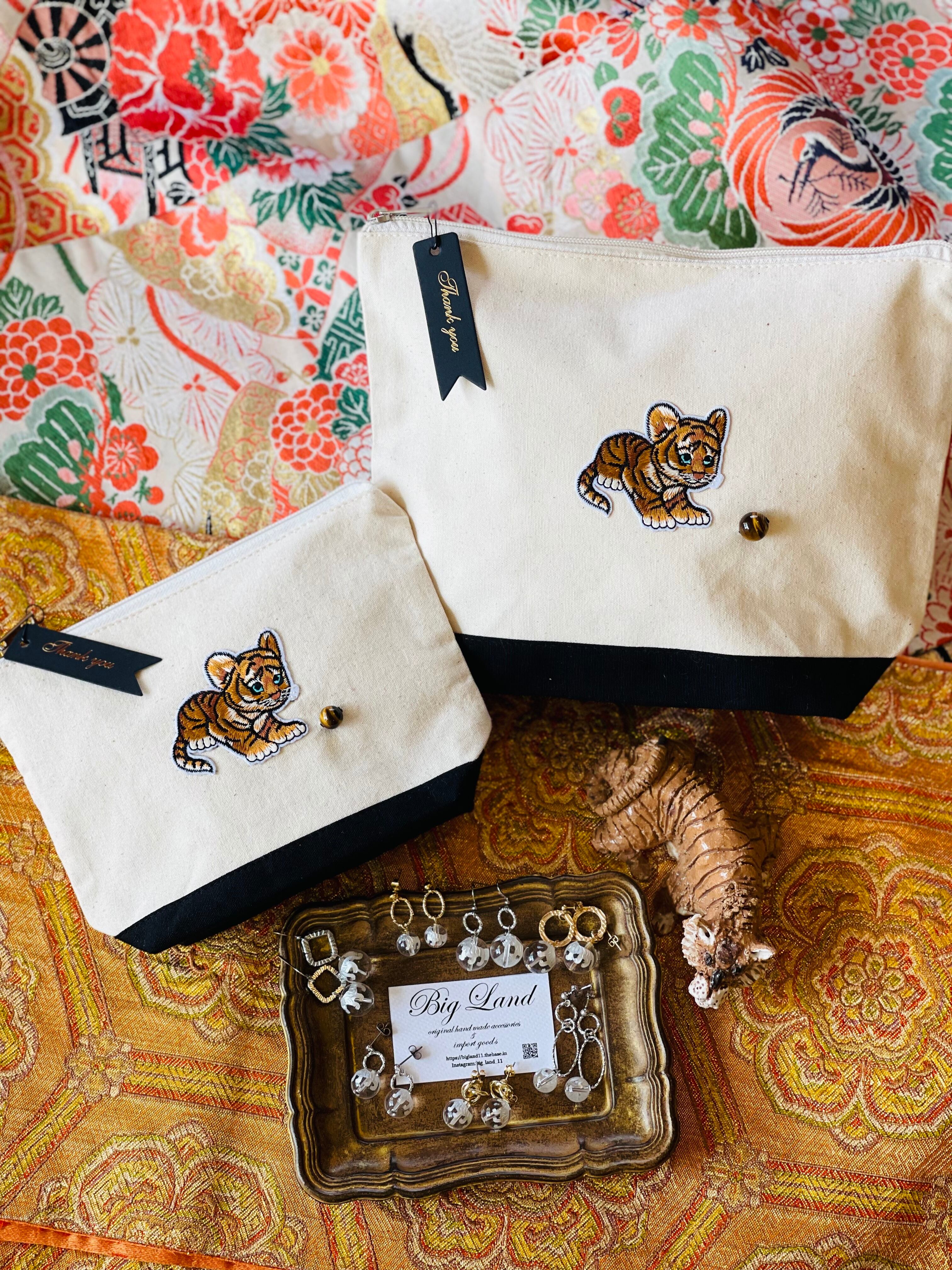 寅シリーズの天然石タイガーアイポーチもございます