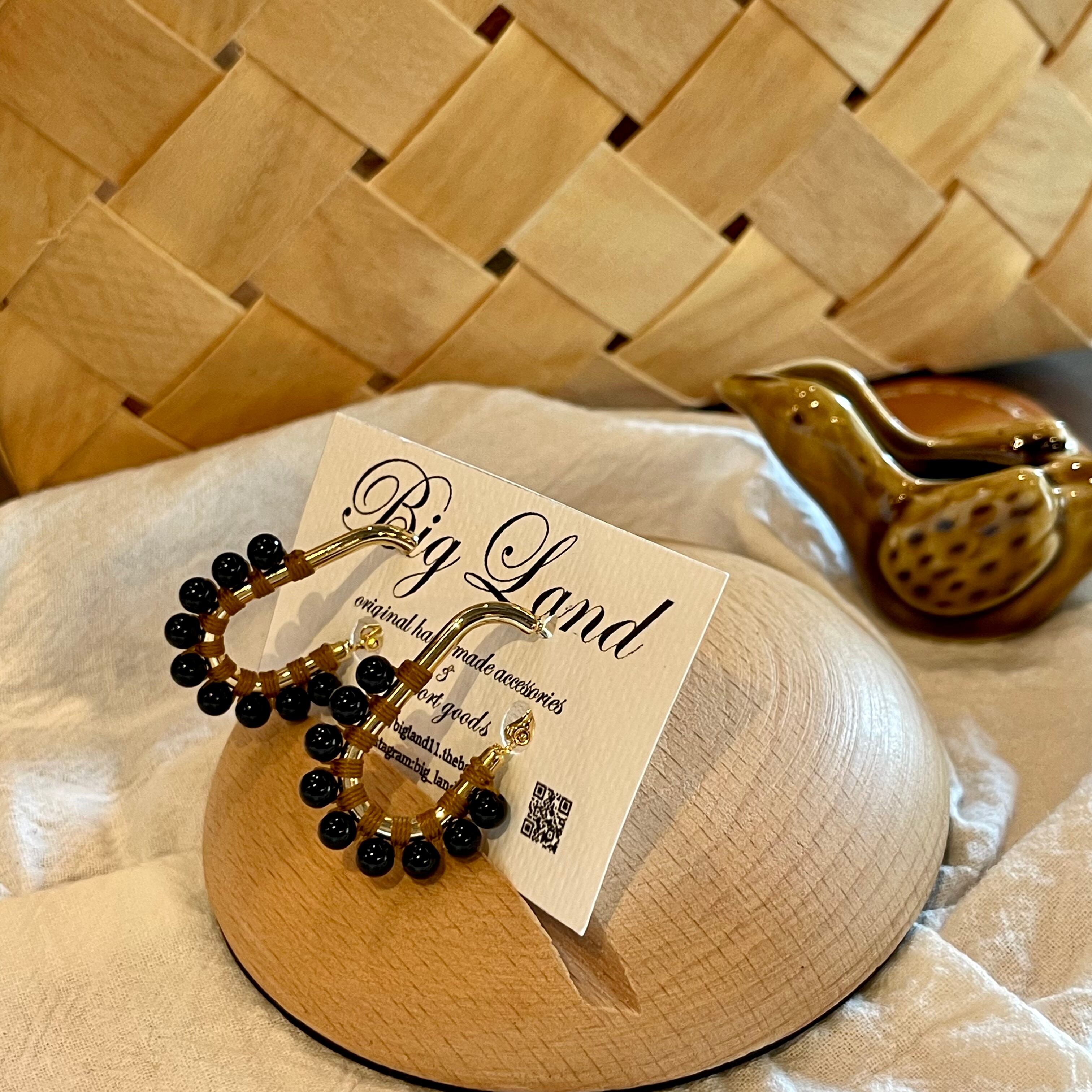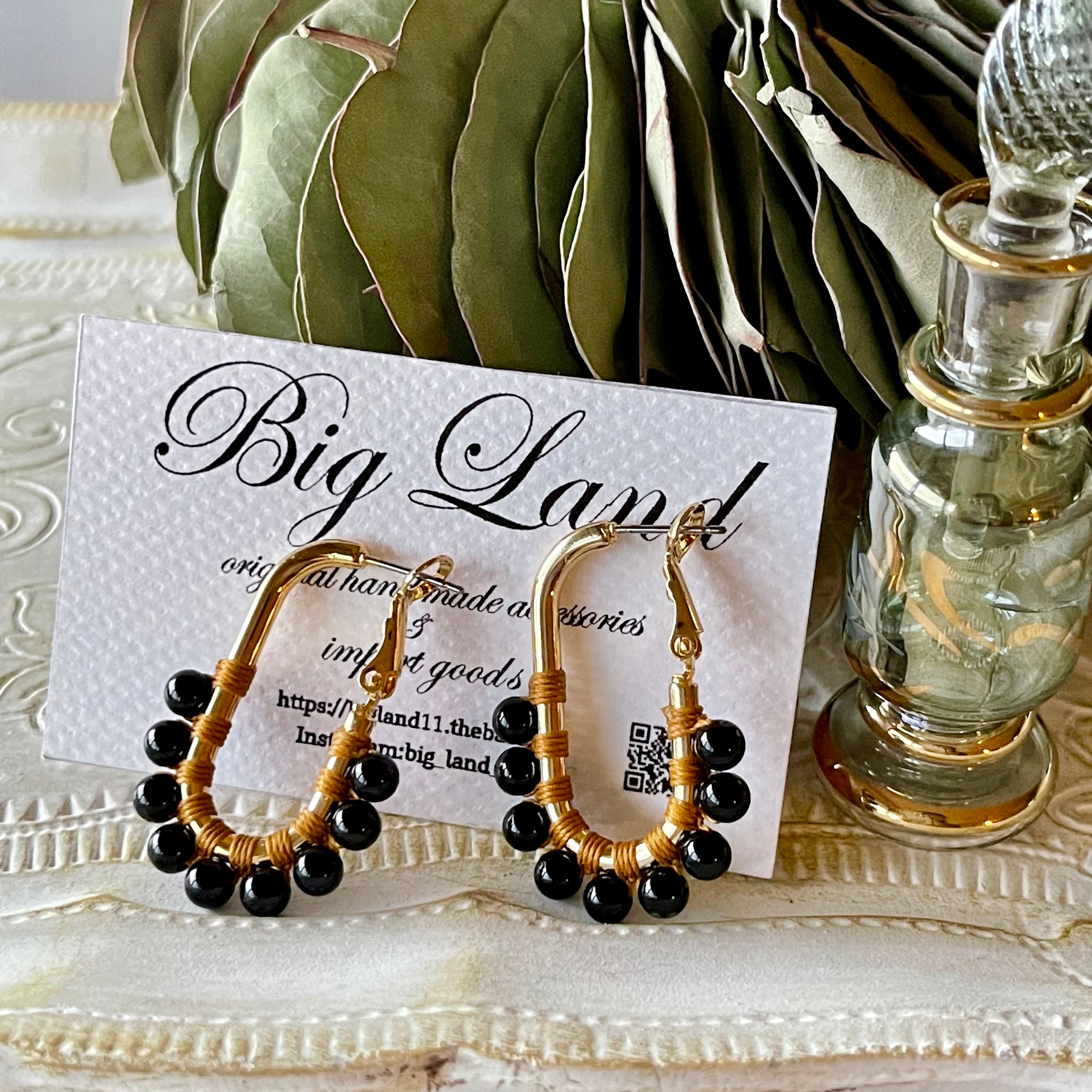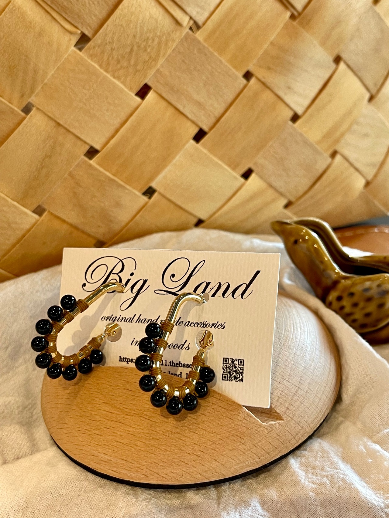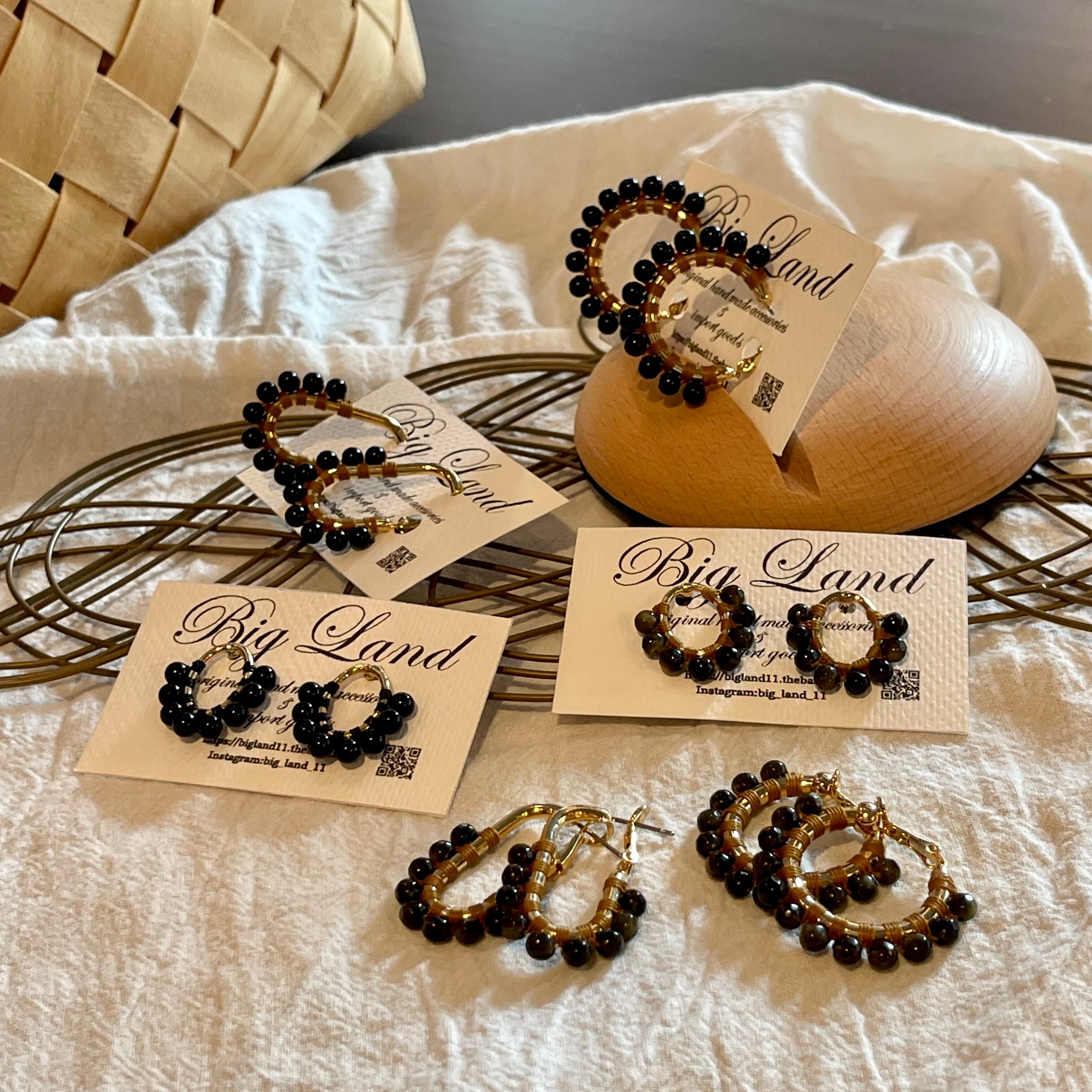 開閉式のぽってりした重厚感あるフープが高品質で、一粒一粒手間をかけて糸でひと編みひと編みし高級感ある縦長のフープは小顔効果があり私自身もこちらのタイプが大好きでヘビロテしてます