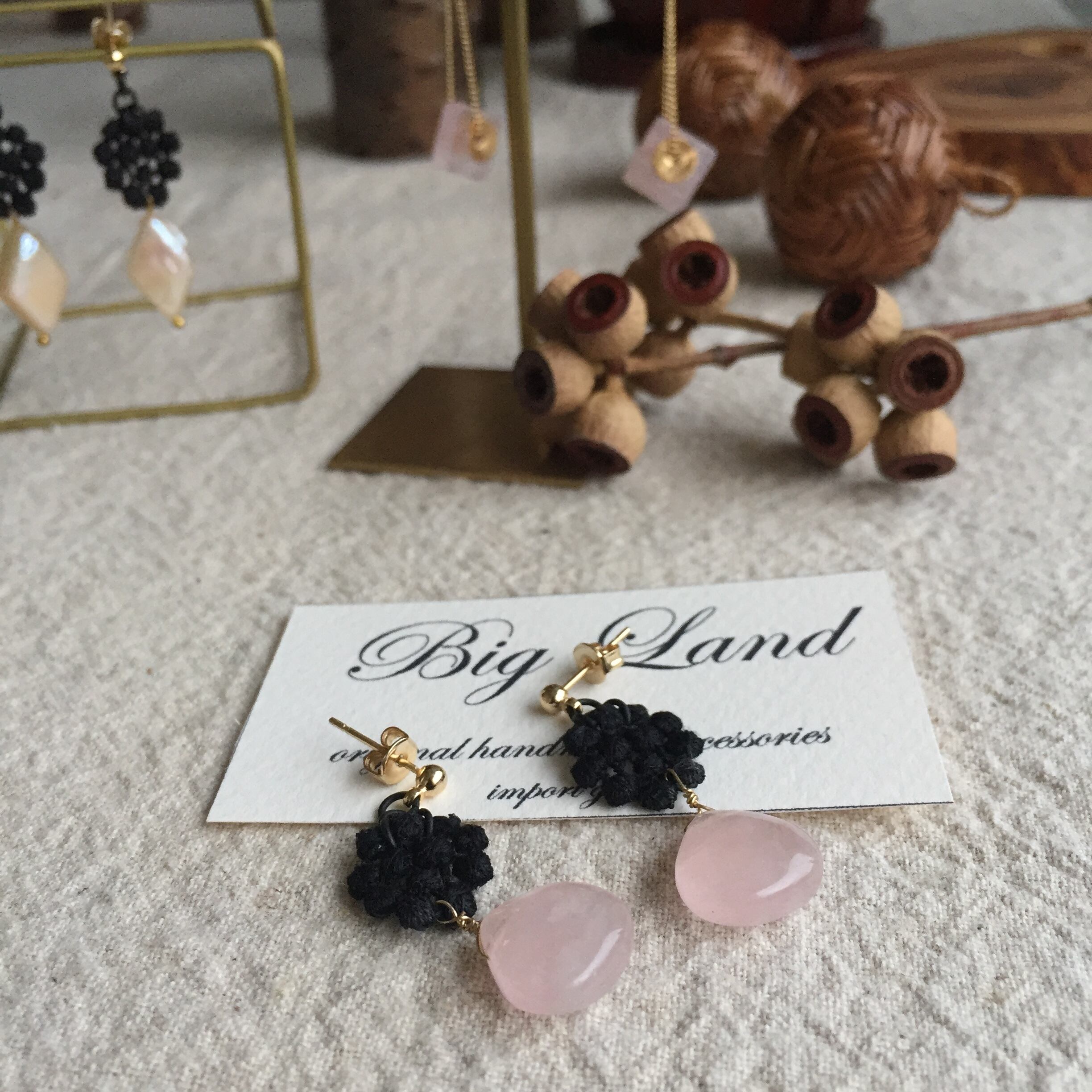 春らしいピンクの天然石とレースの組み合わせで