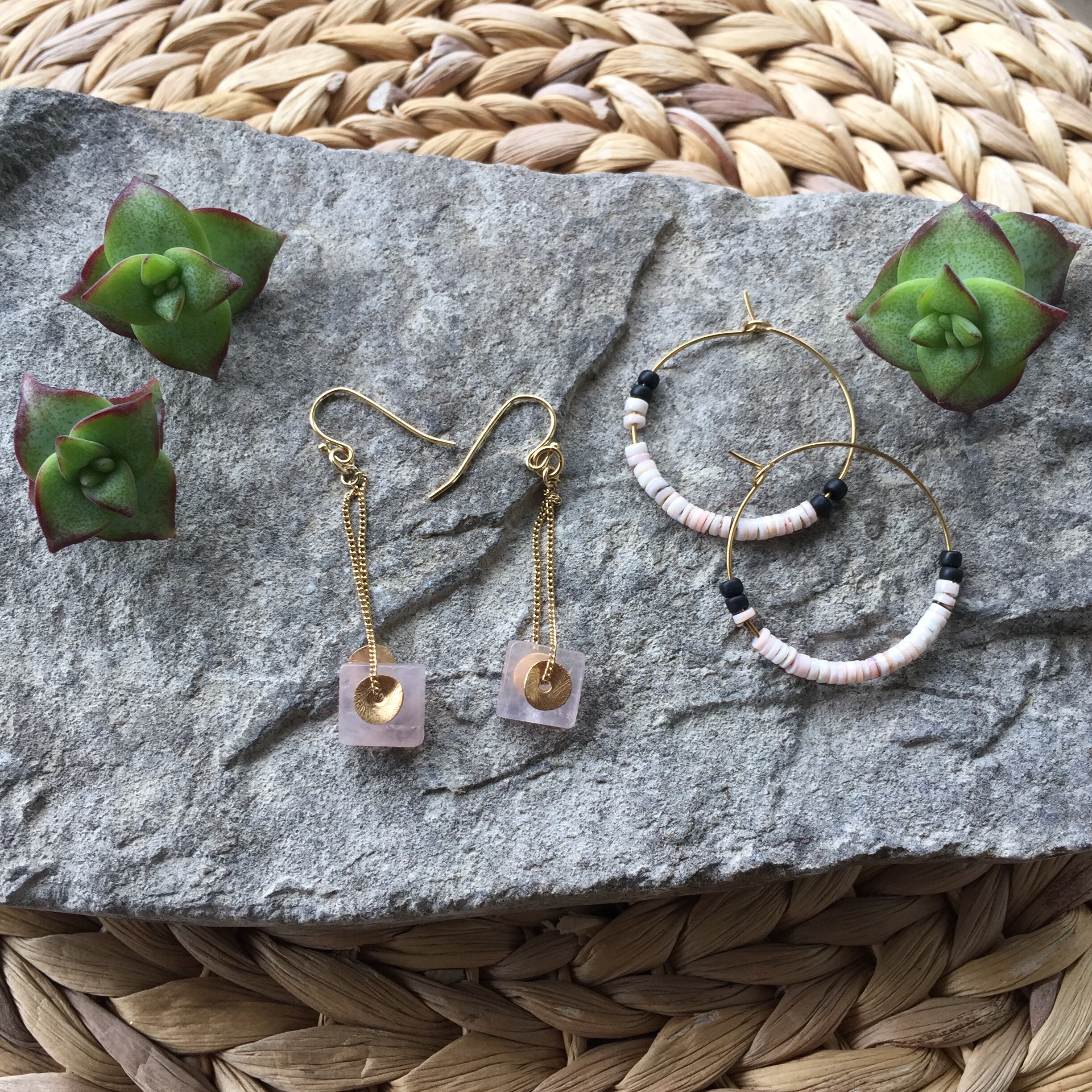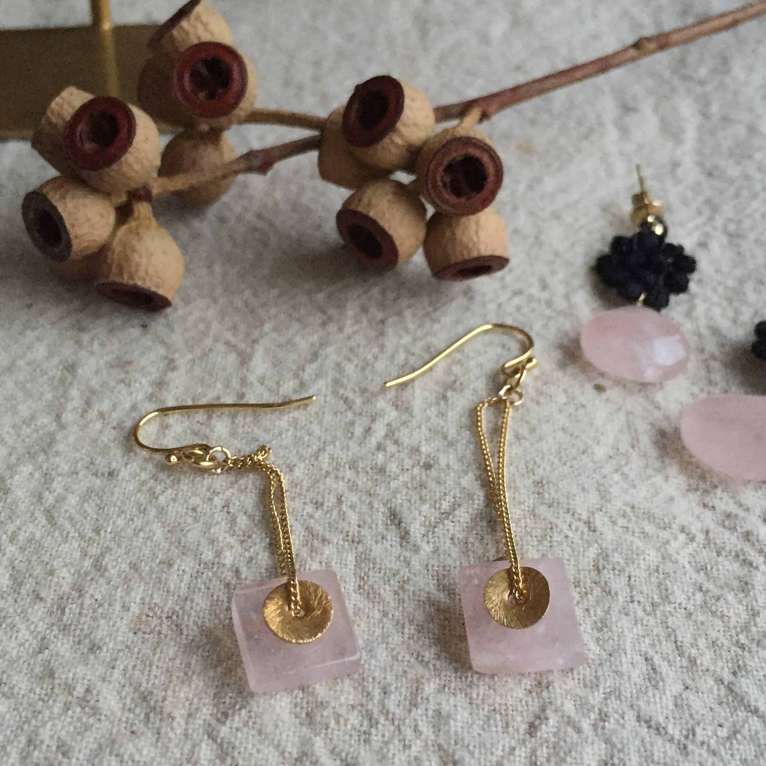 お顔の周りで優しいローズクォーツのピンクが女性らしい雰囲気とセンスの良さを放ちます✨