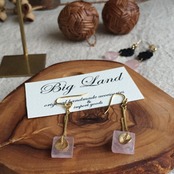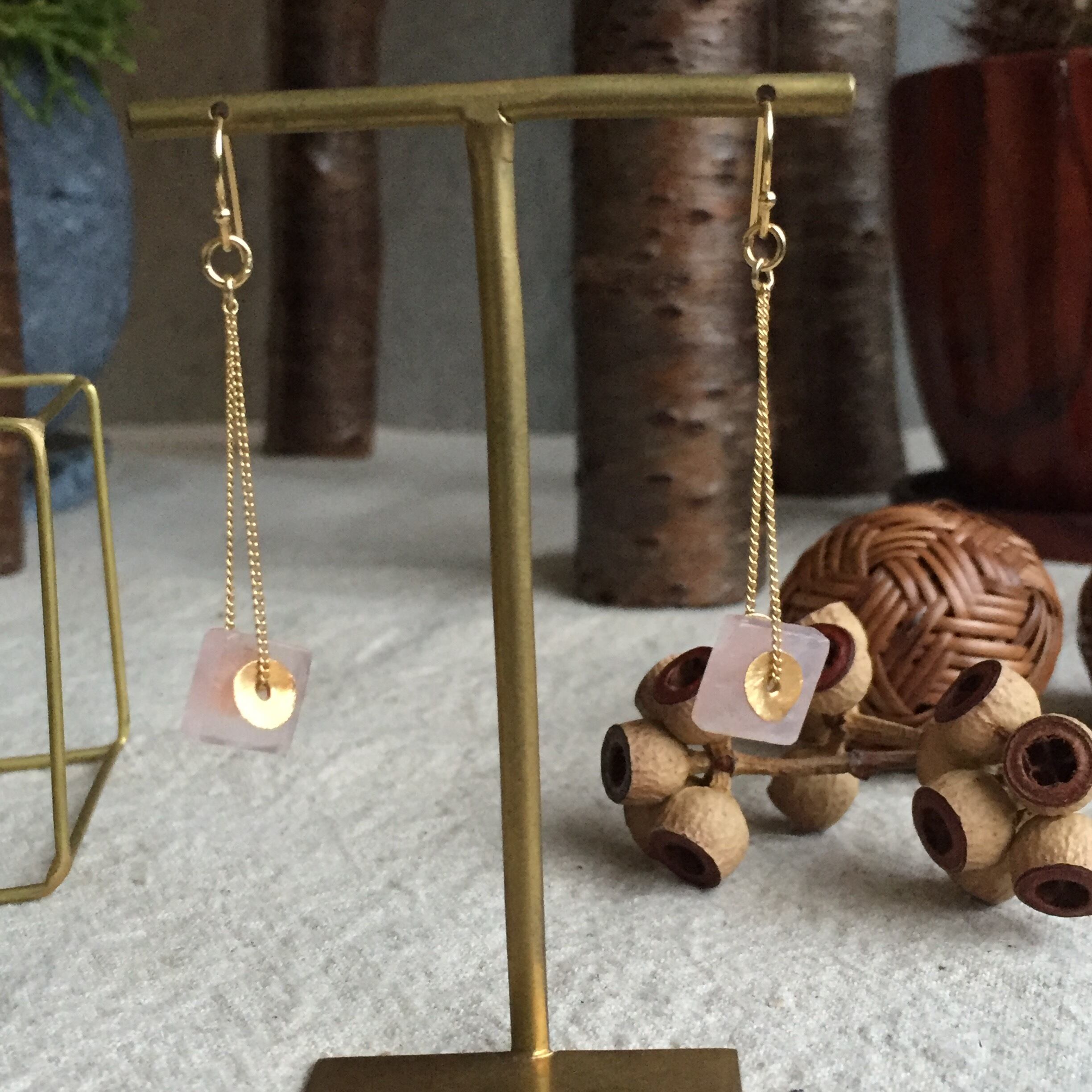 春らしいピンクのスクエアの天然石とマットなゴールドとの組み合わせで珍しいデザインに仕上げました!!