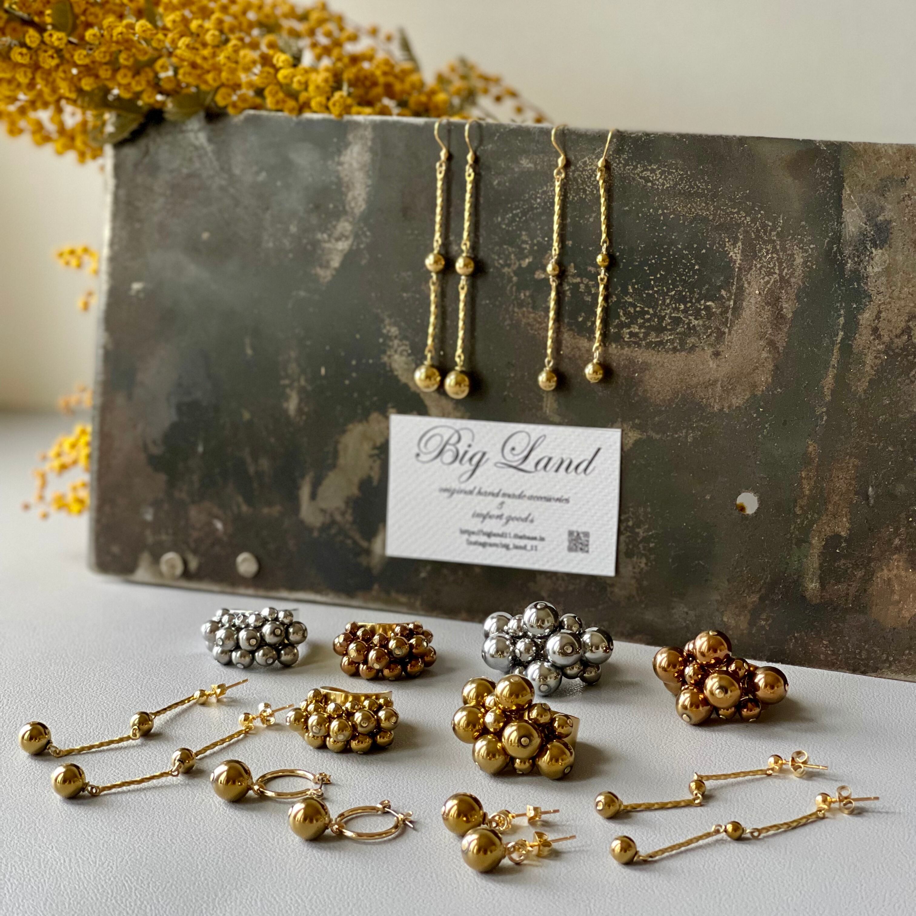天然石のヘマタイトにアンティーク風なゴールドをコーティングした洗練されたデザインはブラックコーデにとても映えシンプルデザインで困った時の救世主的なピアス