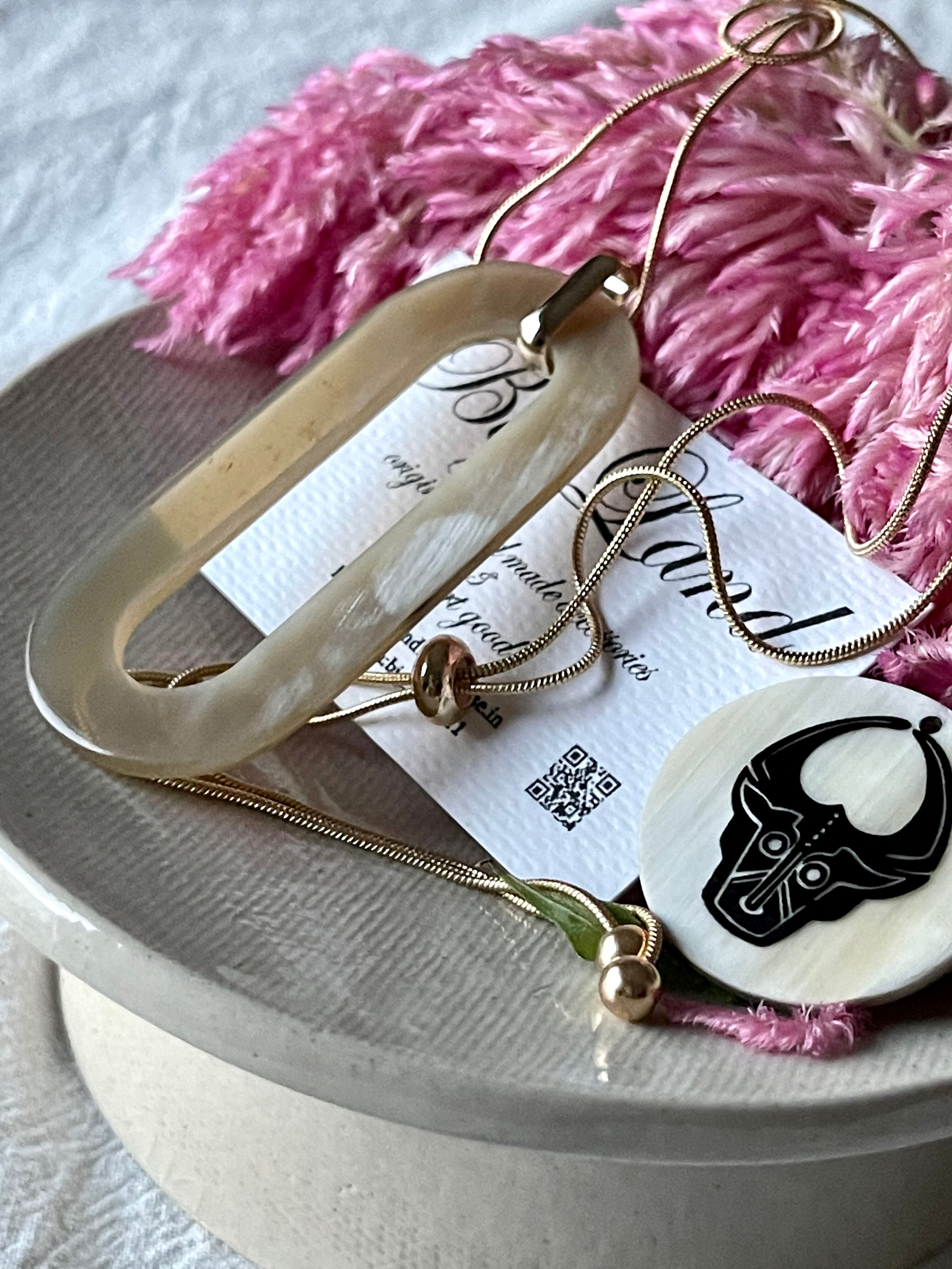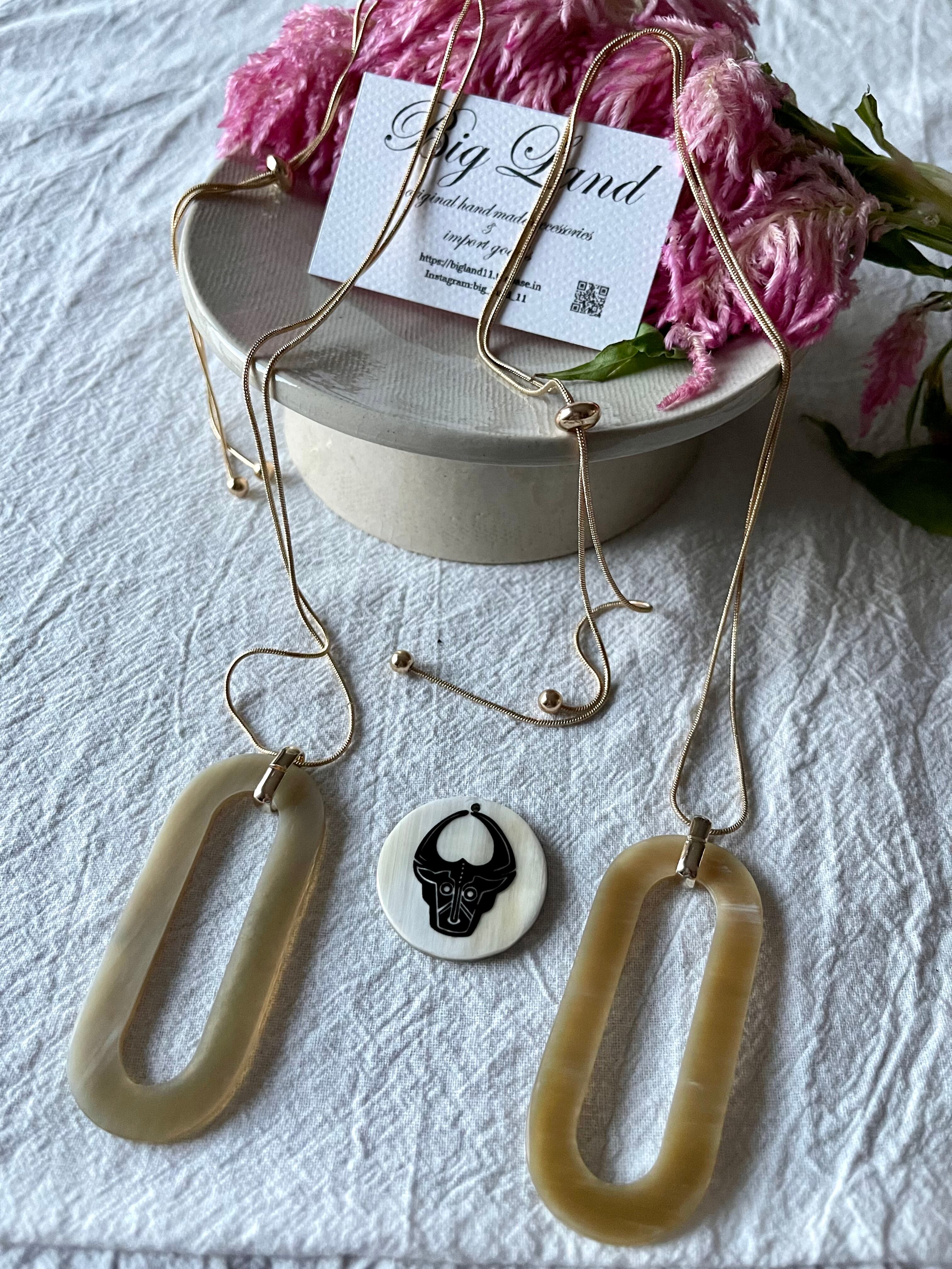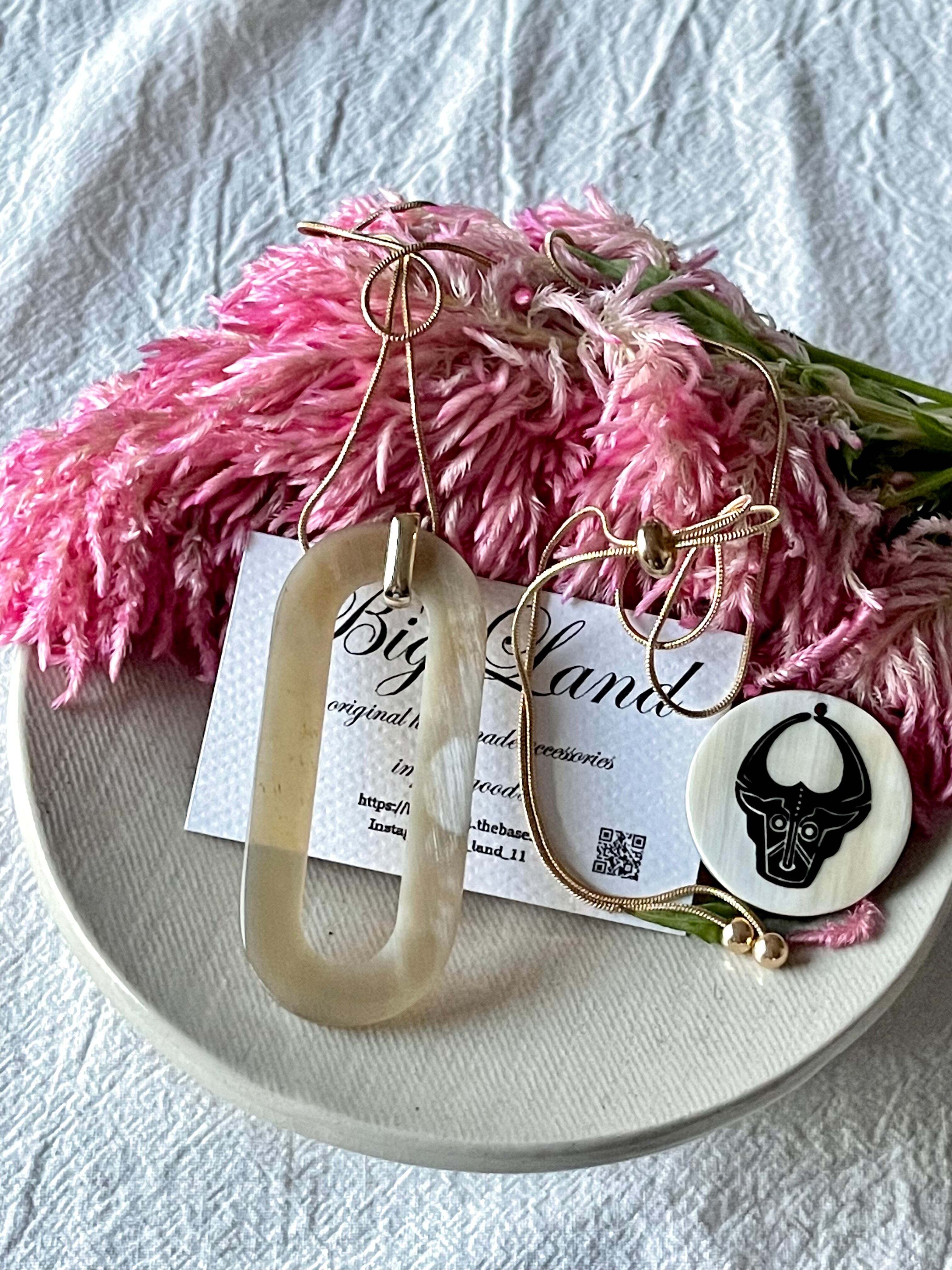 ナチュラルな水牛角ネックレスはアイボリーコーデやアースカラーのリネンワンピースに超マッチでピアスとセットコーデもオススメ‼️