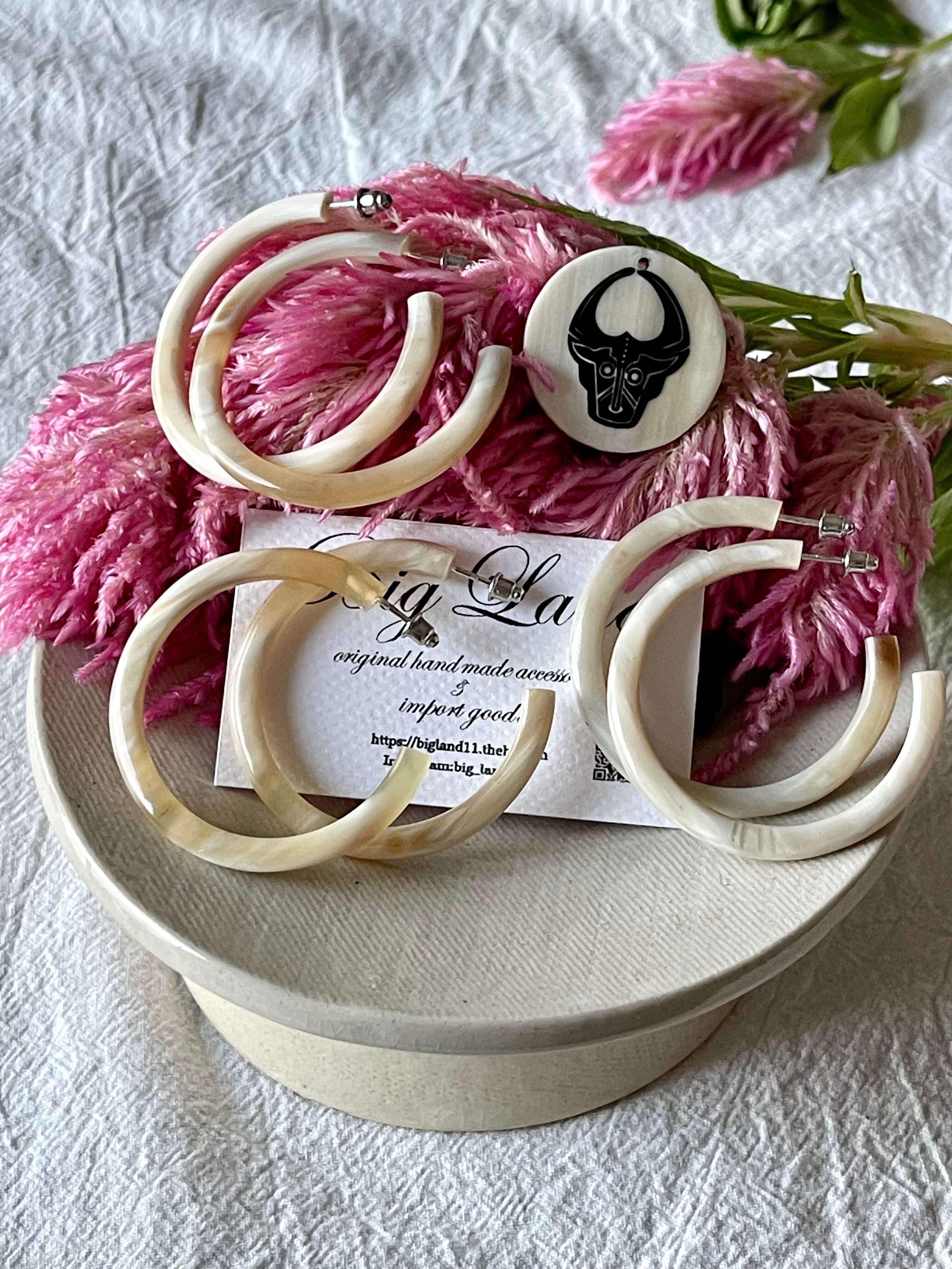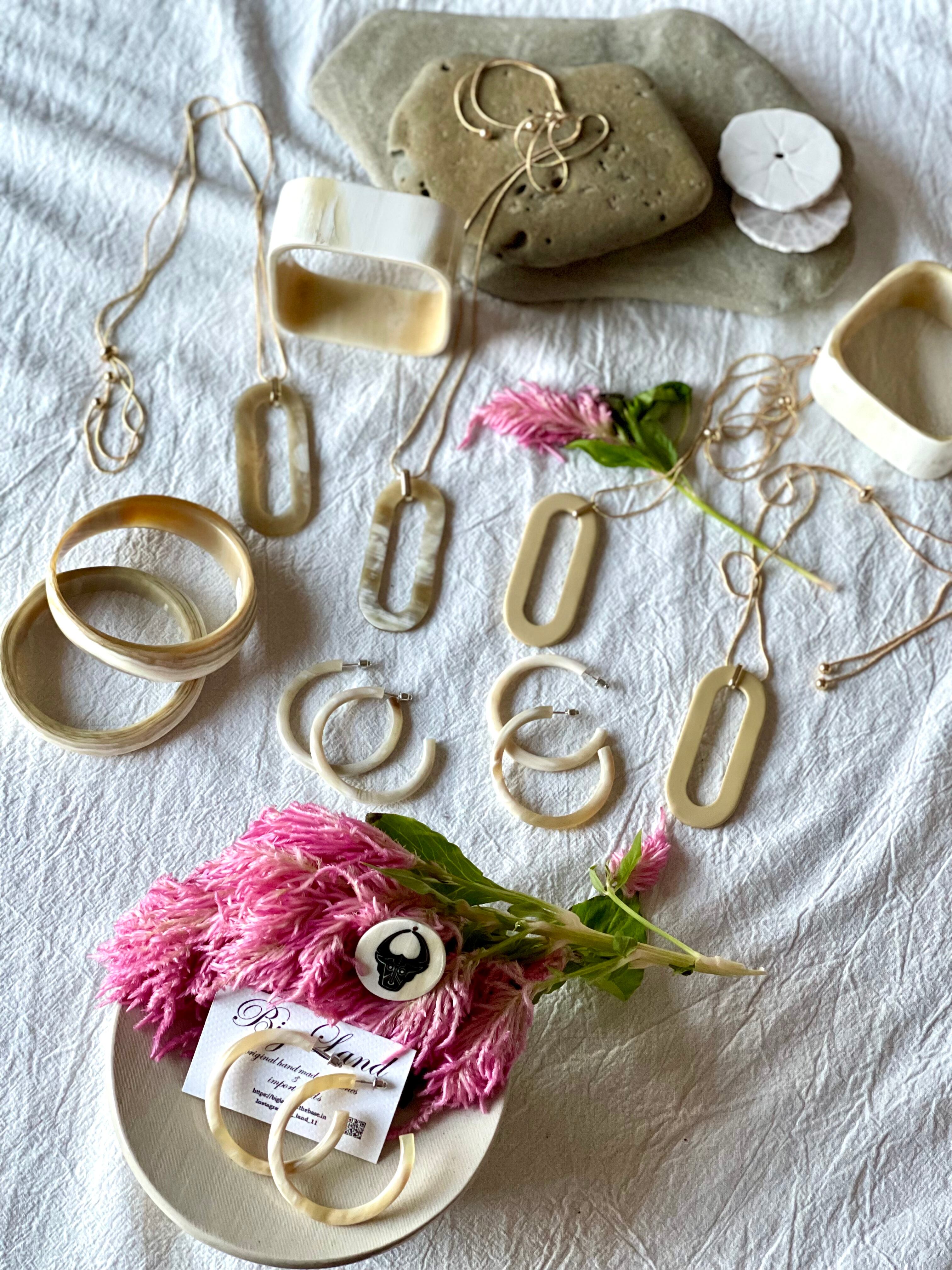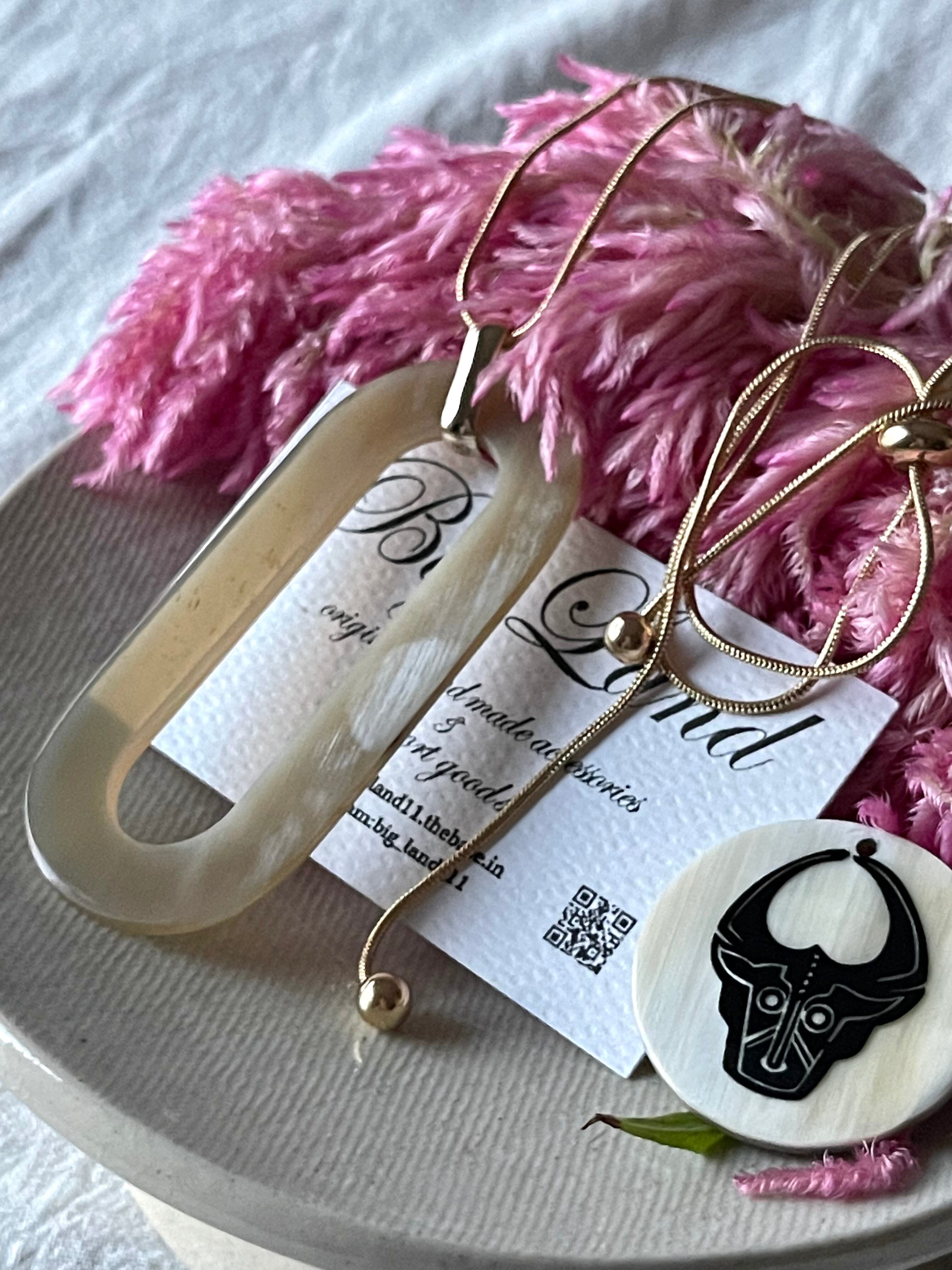 ナチュラルな水牛角ネックレスはアイボリーコーデやアースカラーのリネンワンピースに超マッチでピアスとセットコーデもオススメ‼️