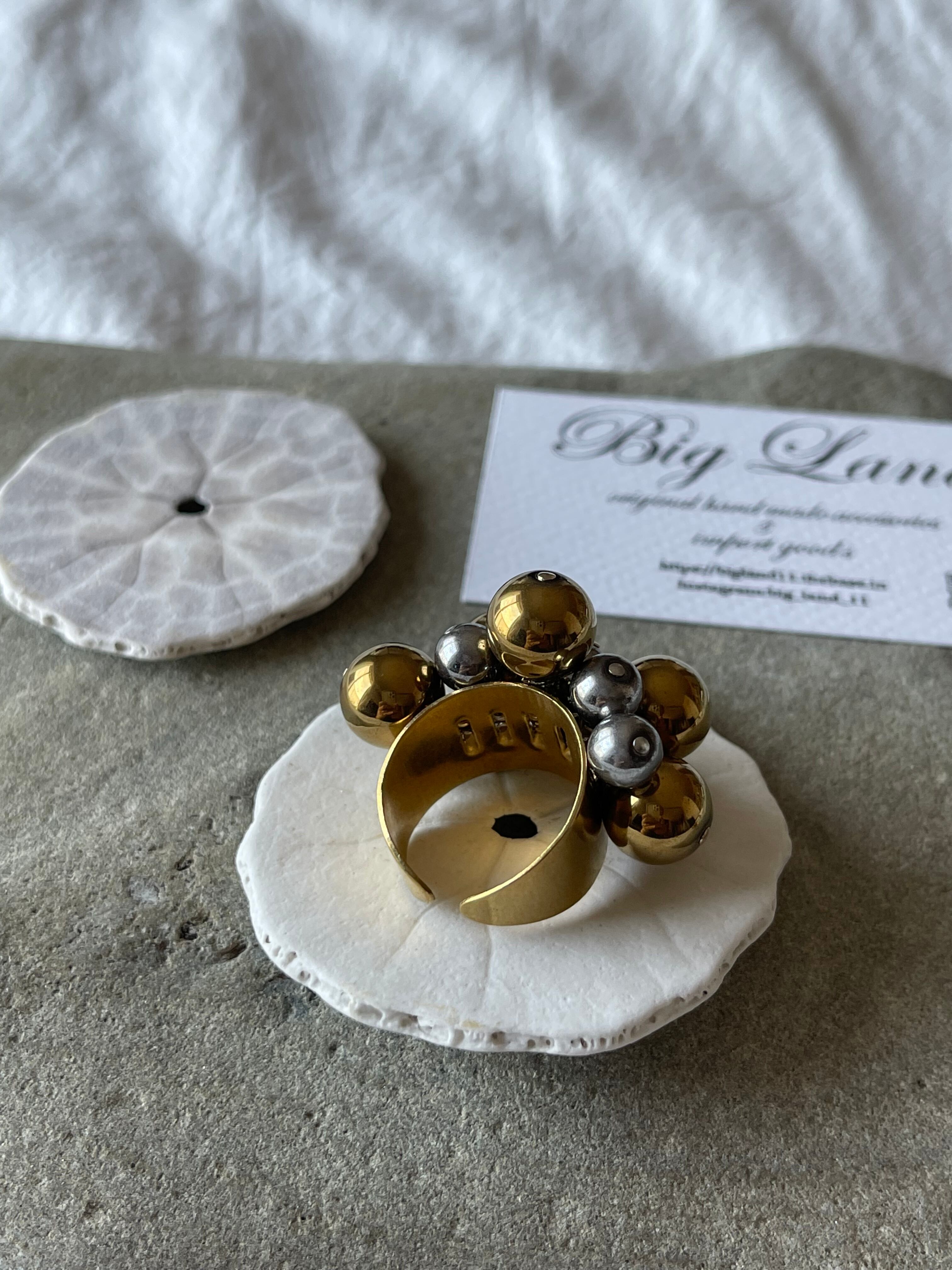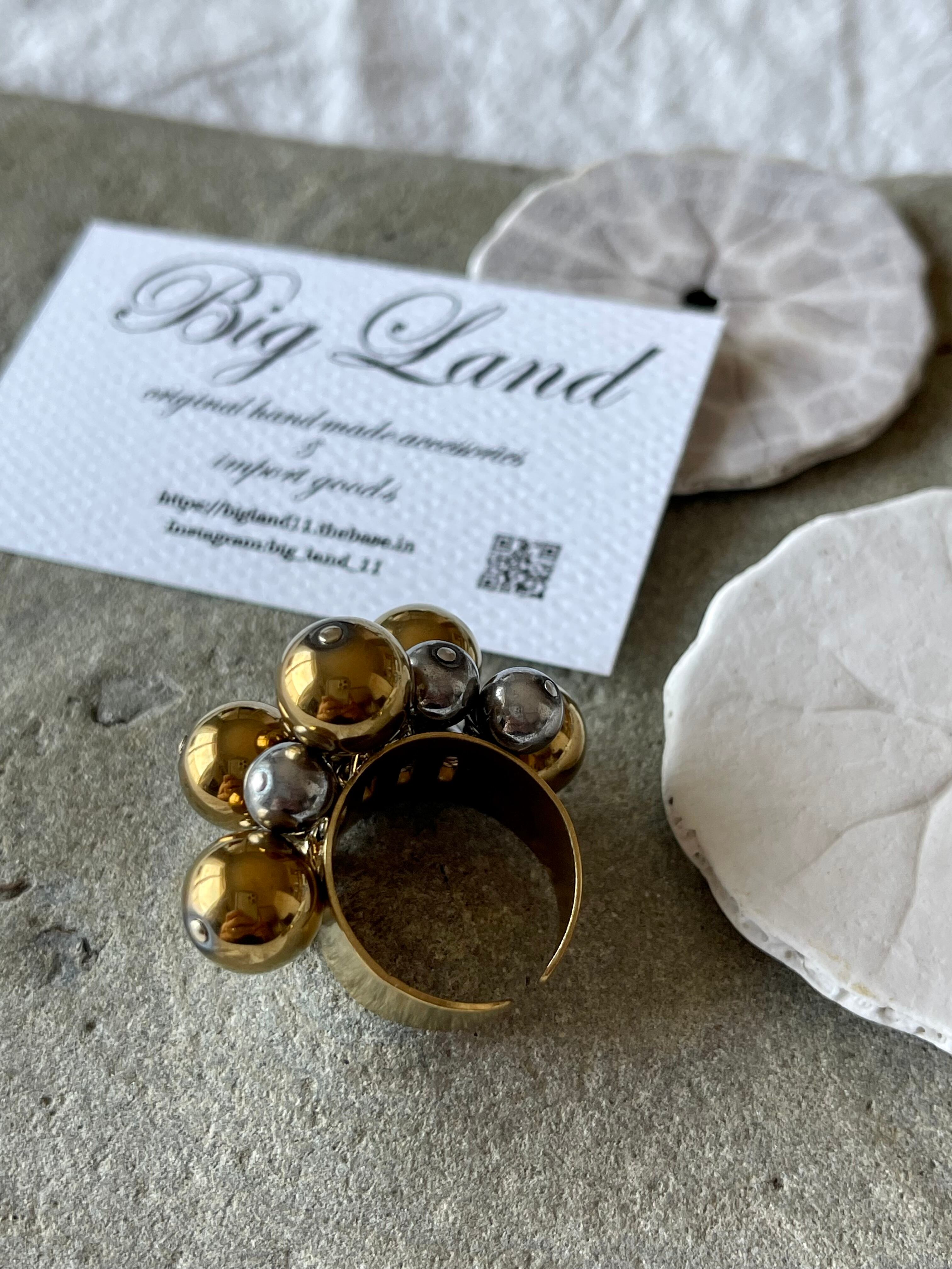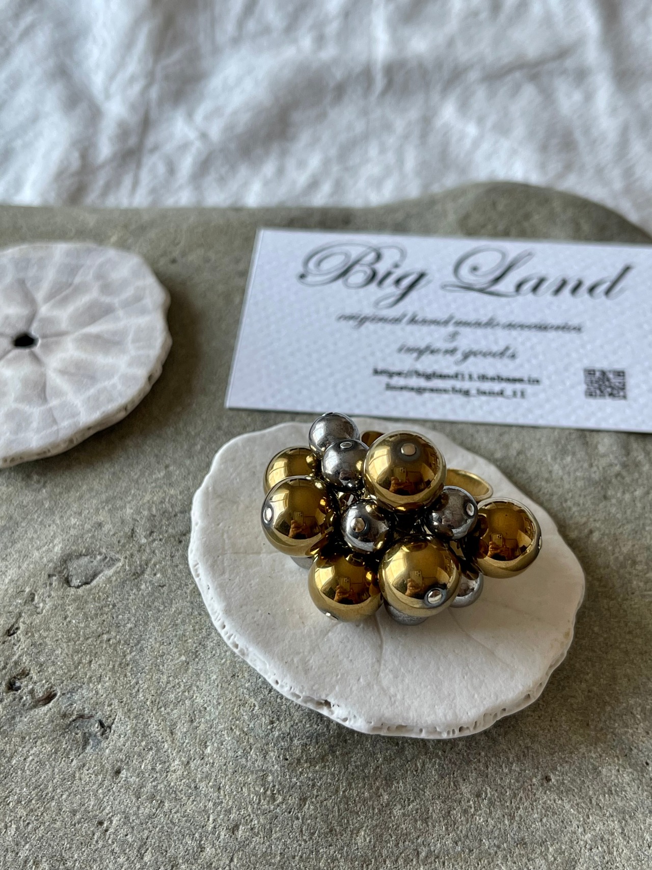 沢山の天然石がゴロゴロ付いて、デザイナーズの雰囲気で中指や人差し指に入れると大人な女性のオシャレが際立ち今迄ご購入された方から大満足して頂いてる斬新なボリュームとデザインです✨