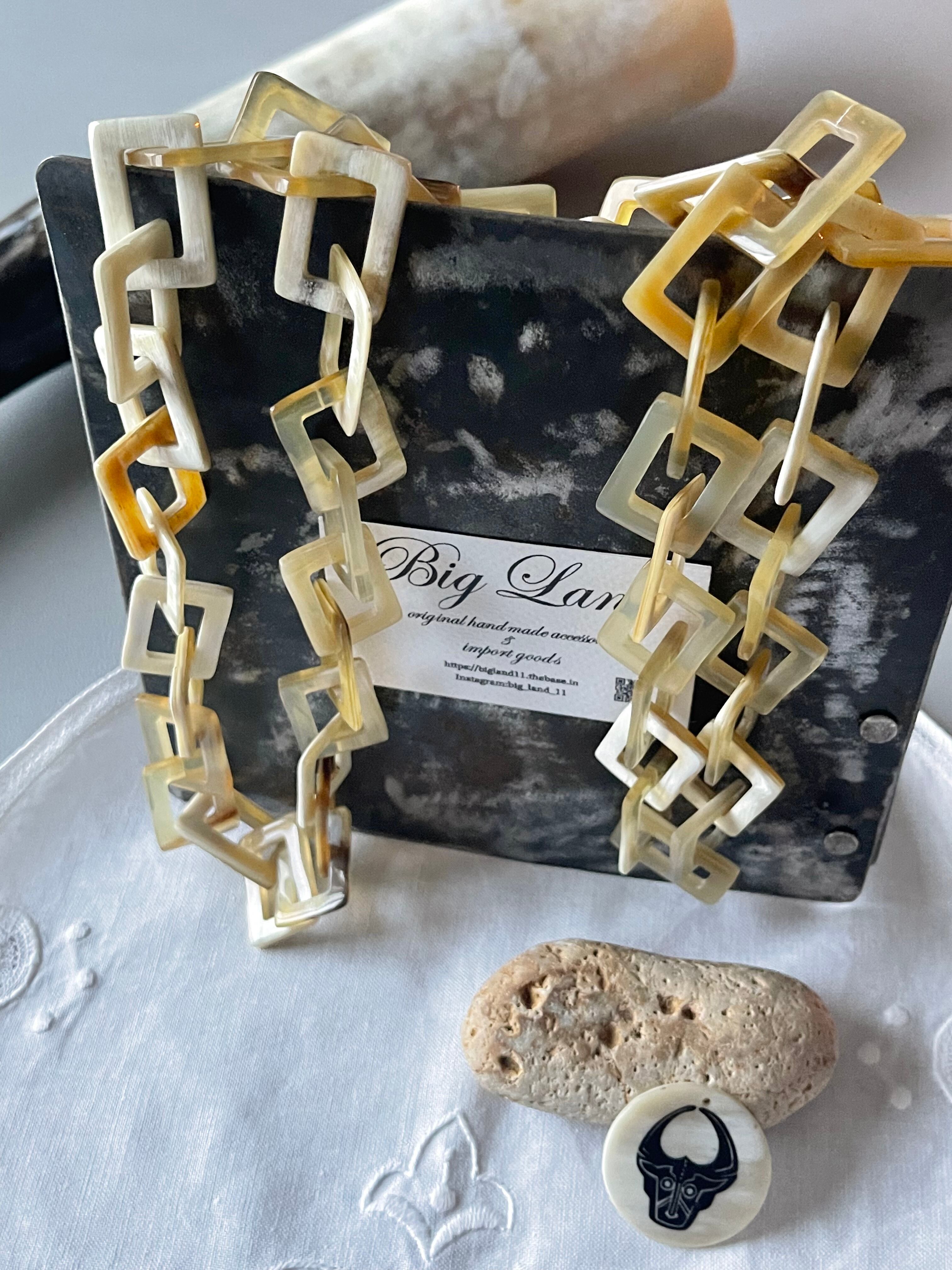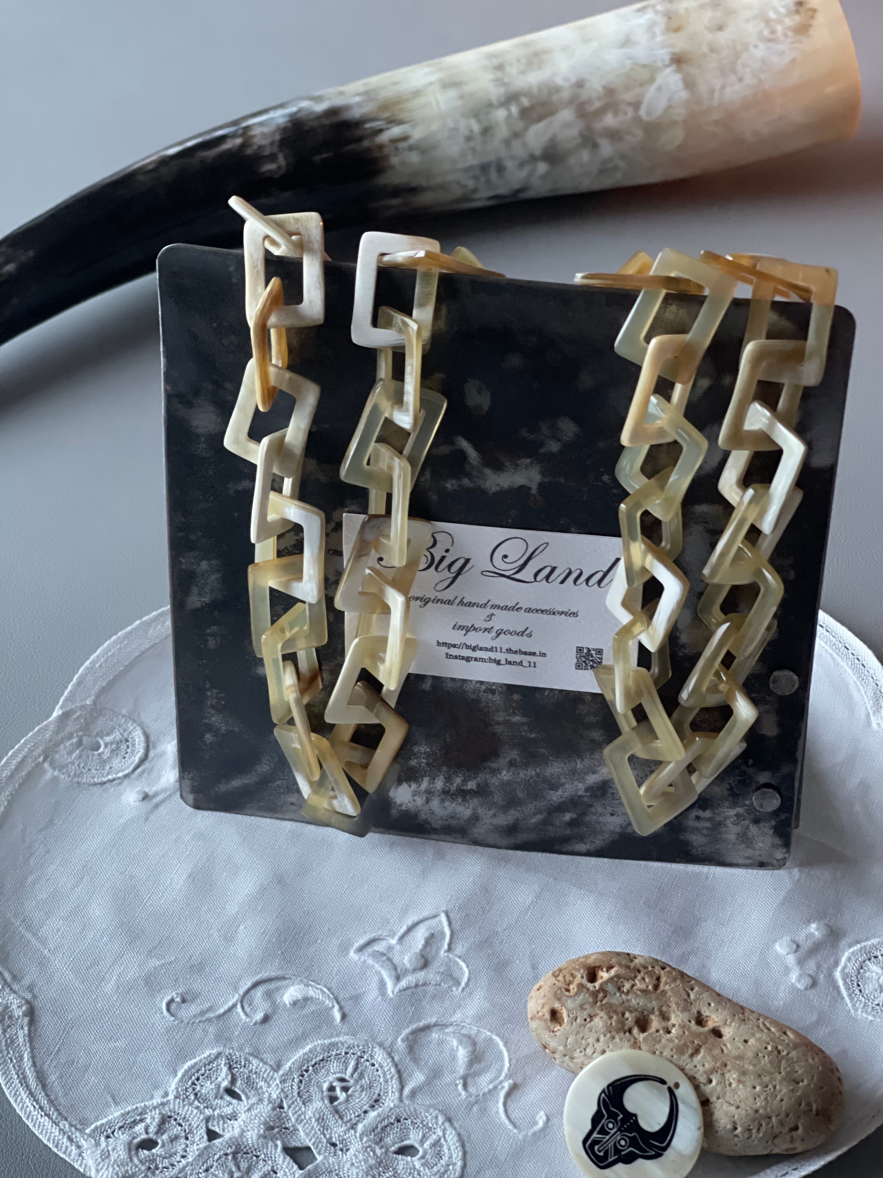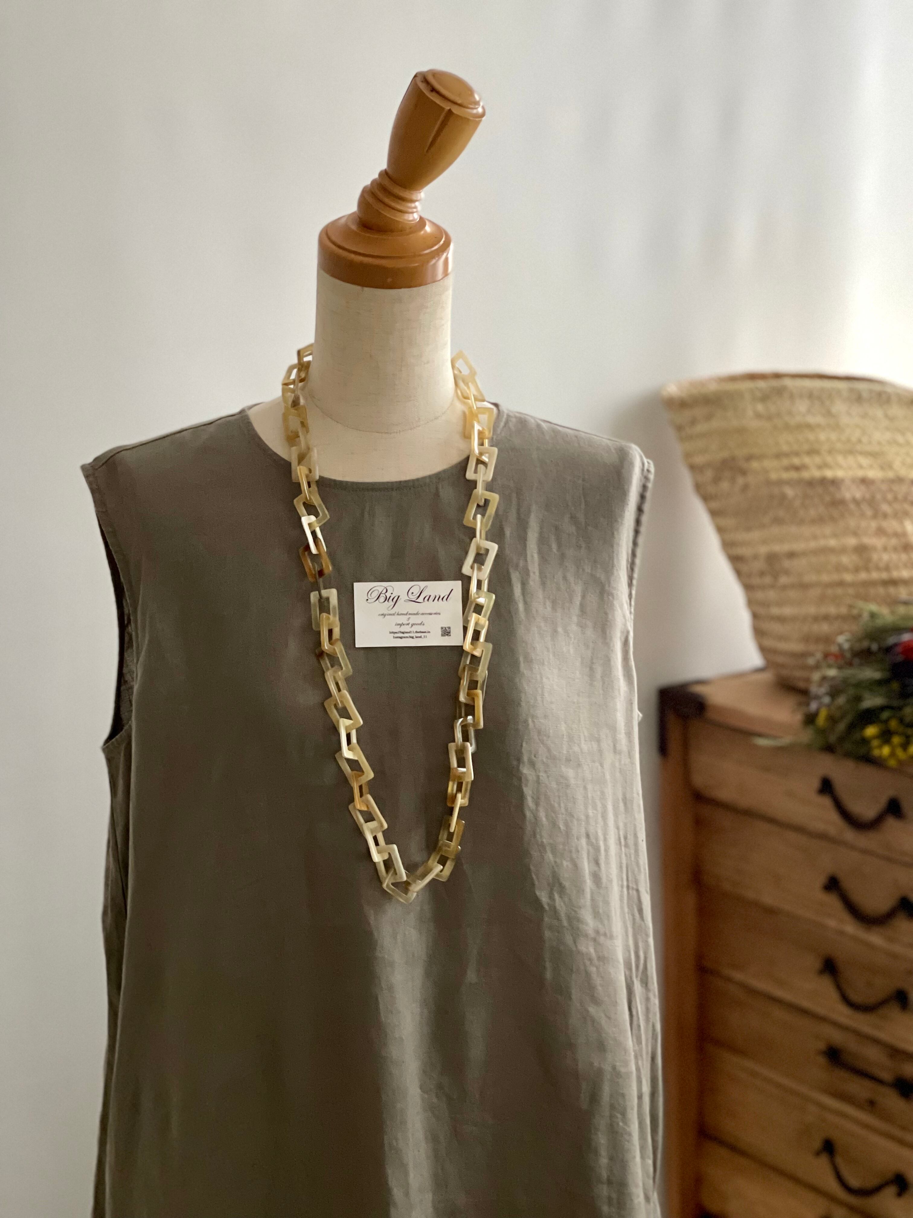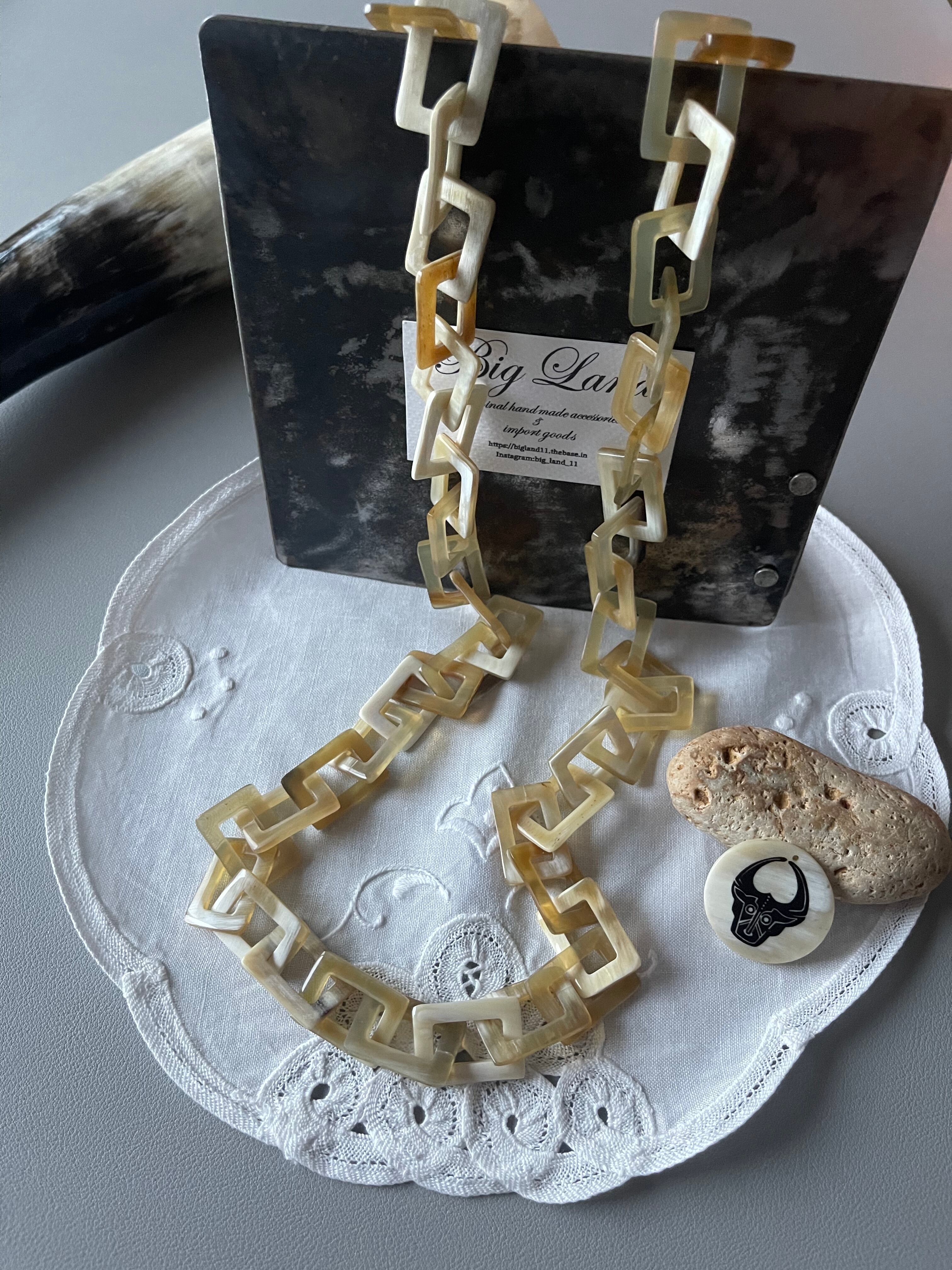 こちらのネックレスは、艶感がありスクエアがスタイリッシュでカッコイイ雰囲気になり...水牛ならではの軽い装着感とこなれたワンランク上の雰囲気で夏の汗ばむ季節でも天然素材の水牛角の為お肌に優しく、秋冬はニットにこちらを装着するだけで、存在感がありオシャレに差がつきます✨