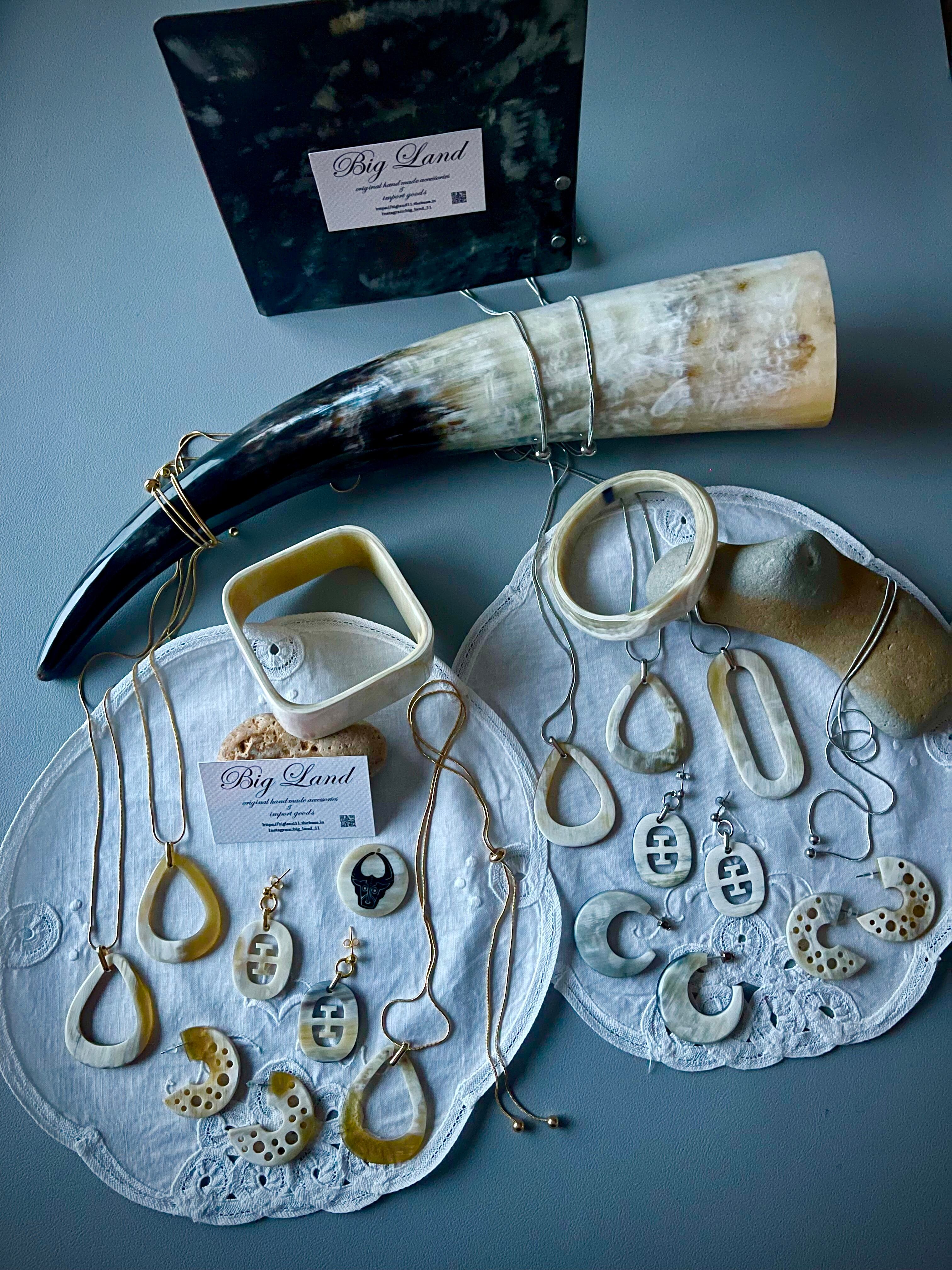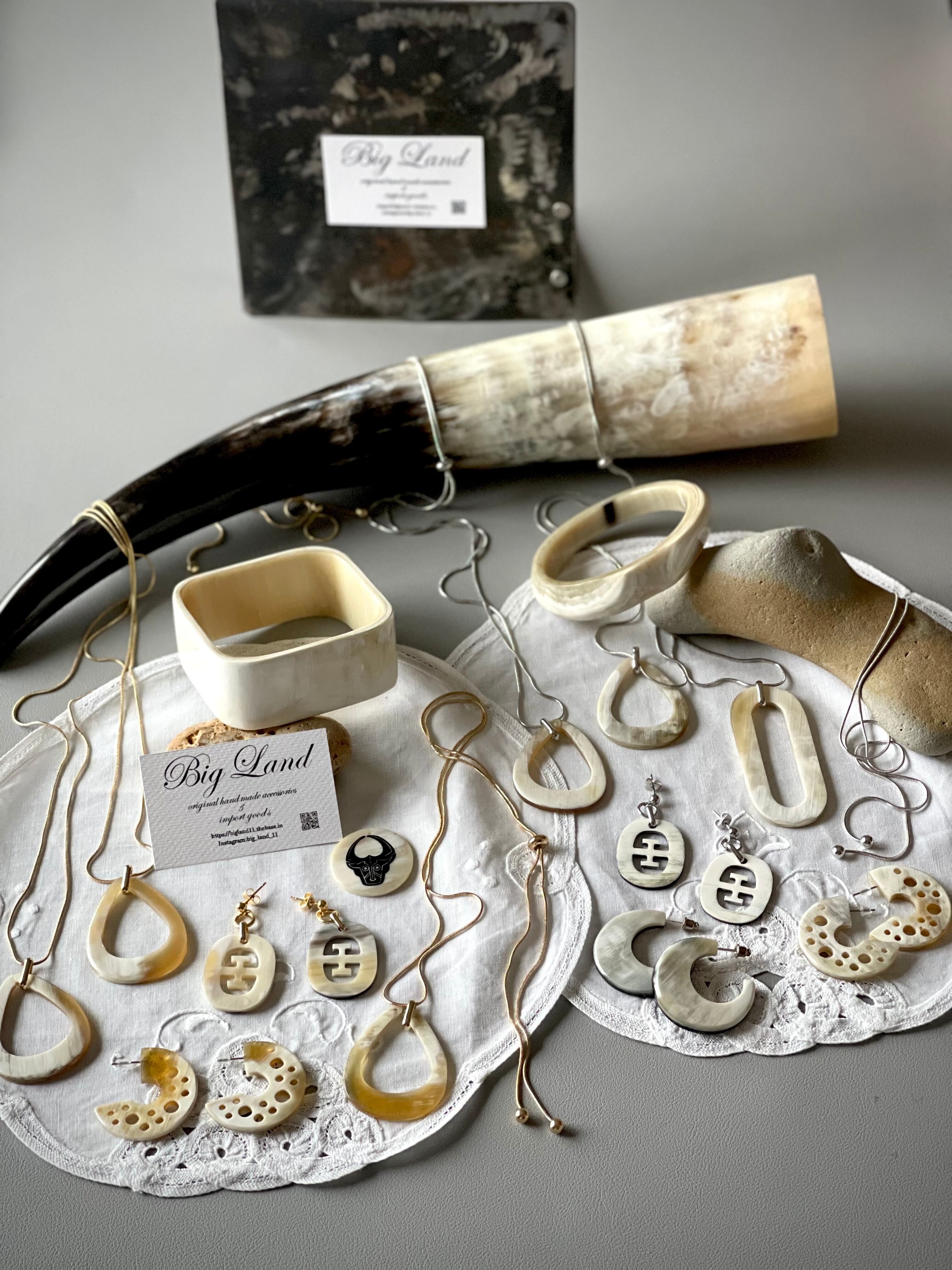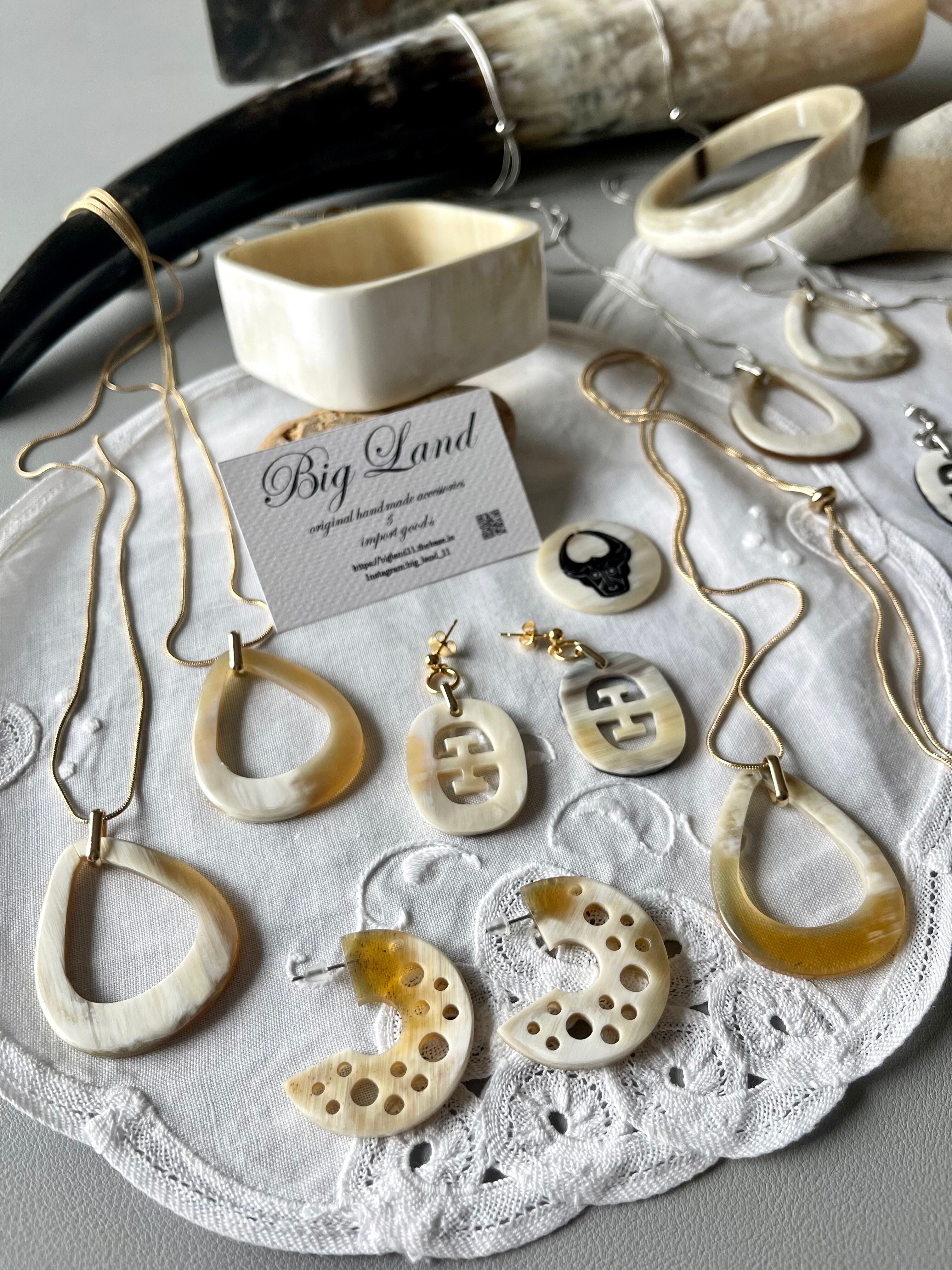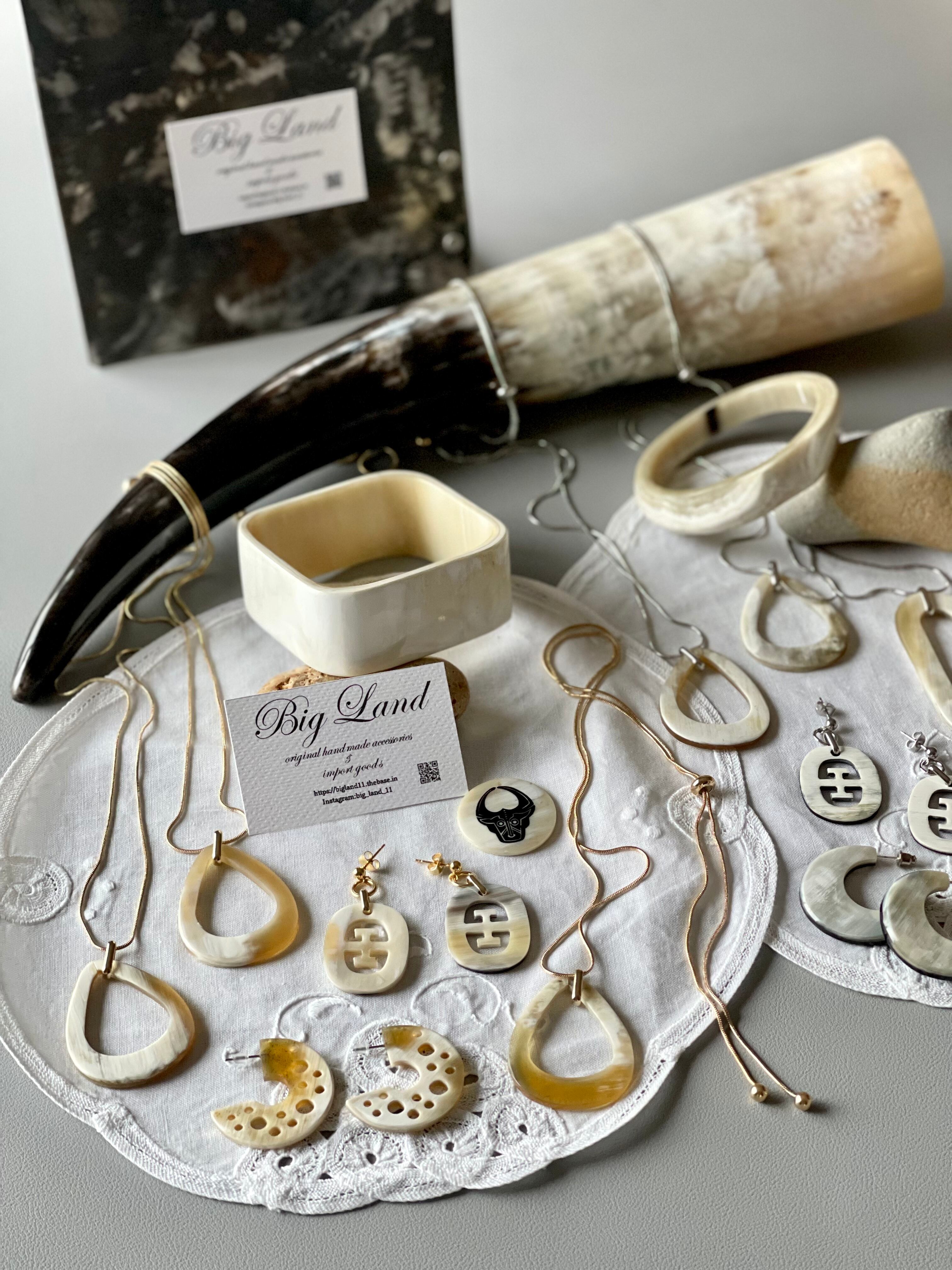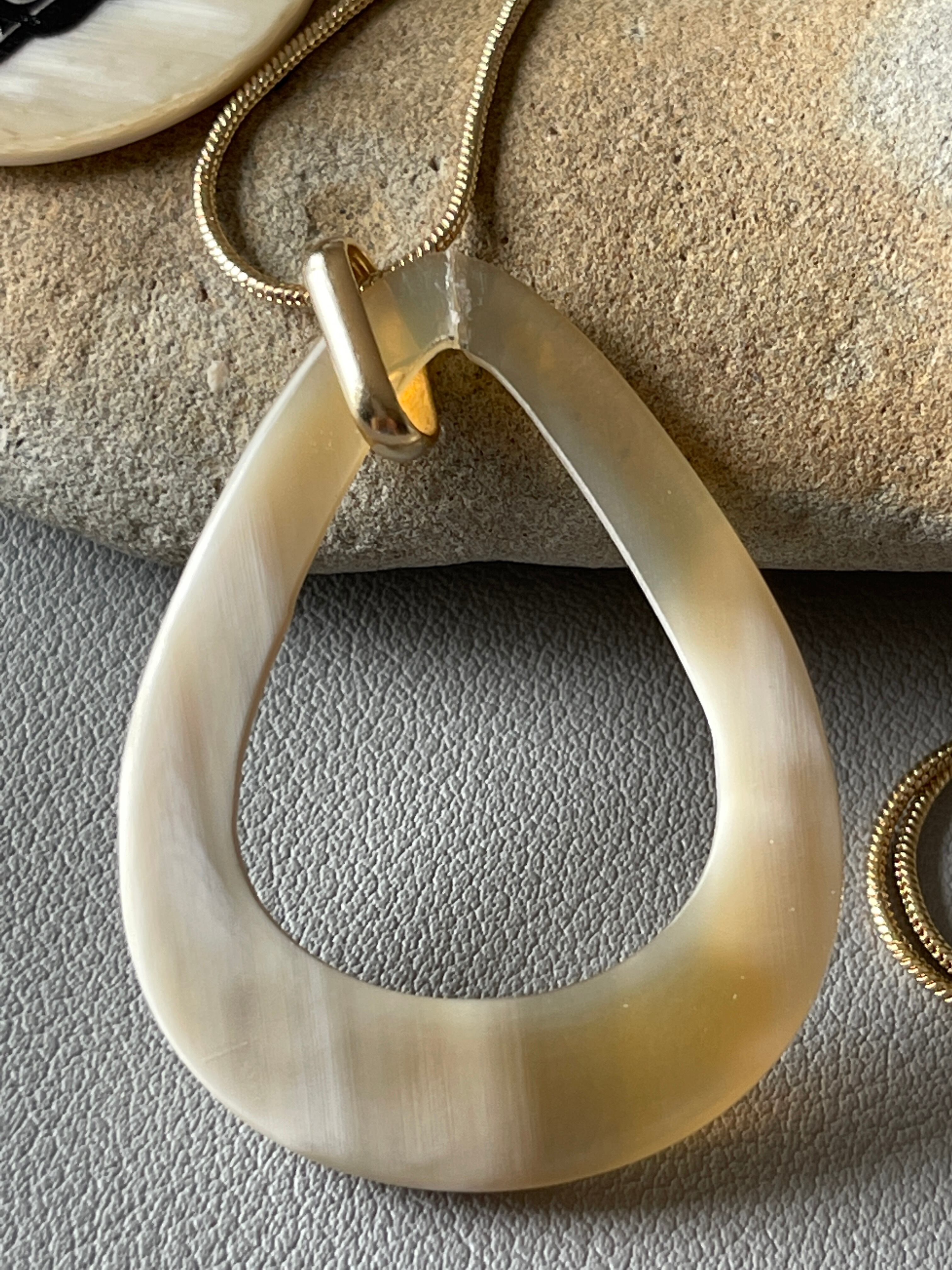 ナチュラルな水牛角ネックレスはアイボリーコーデやアースカラーのリネンワンピースに超マッチでピアスとセットコーデもオススメ‼️