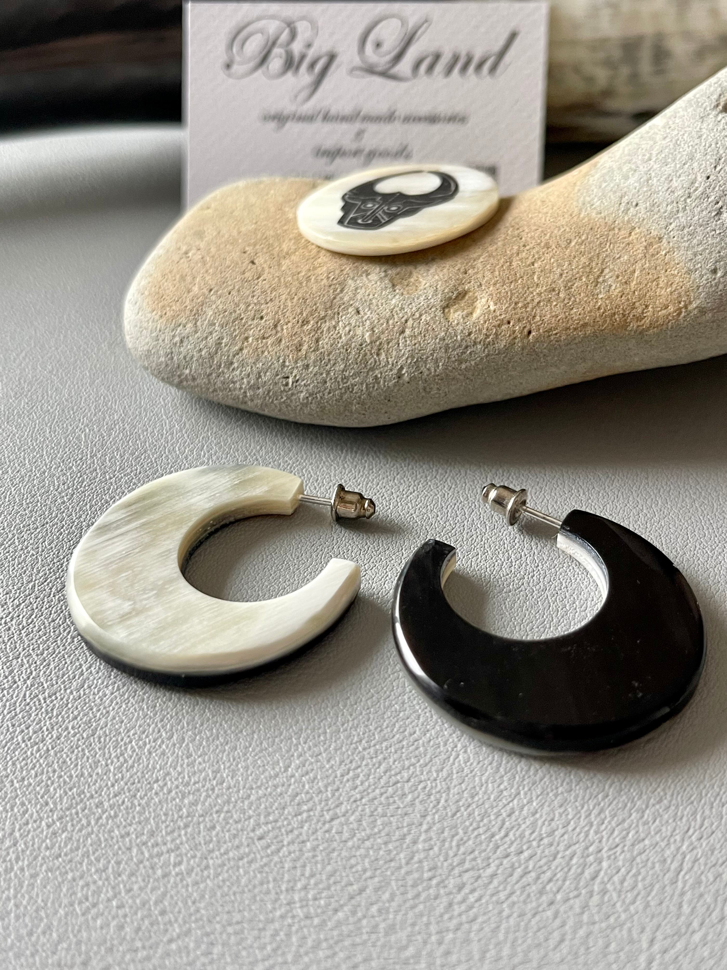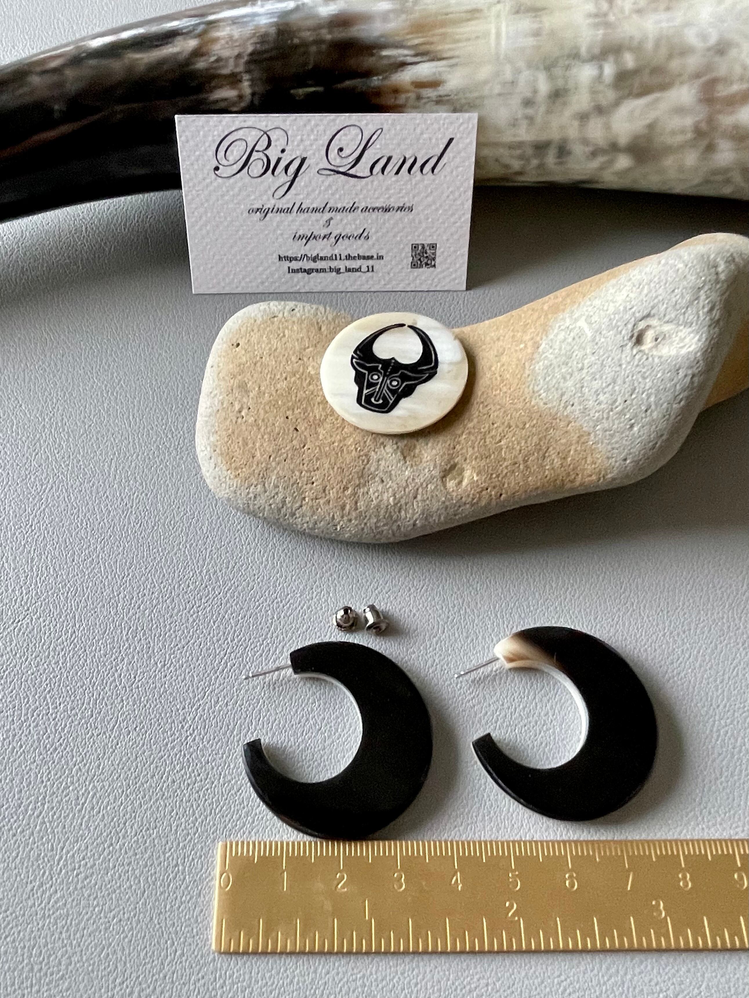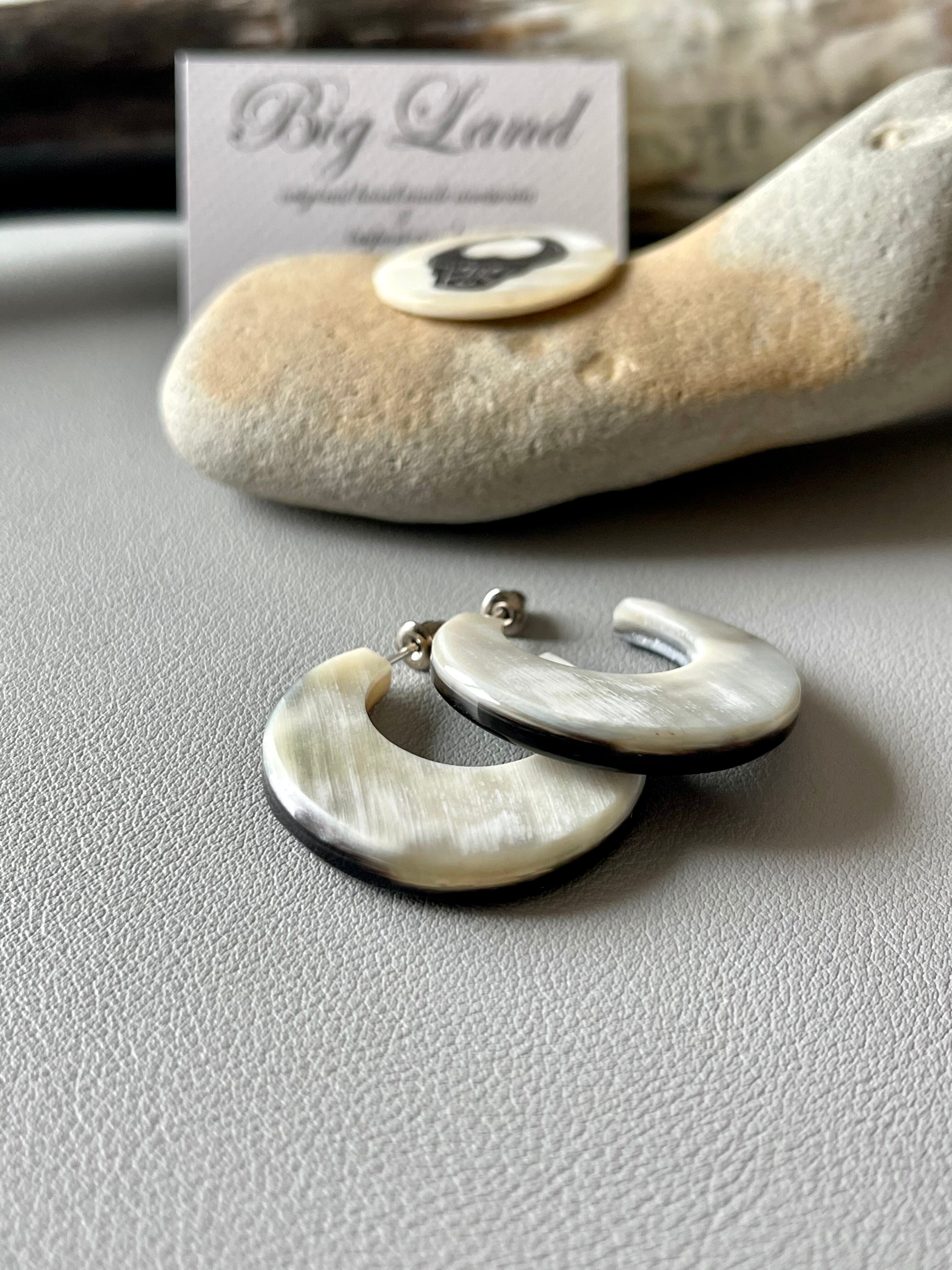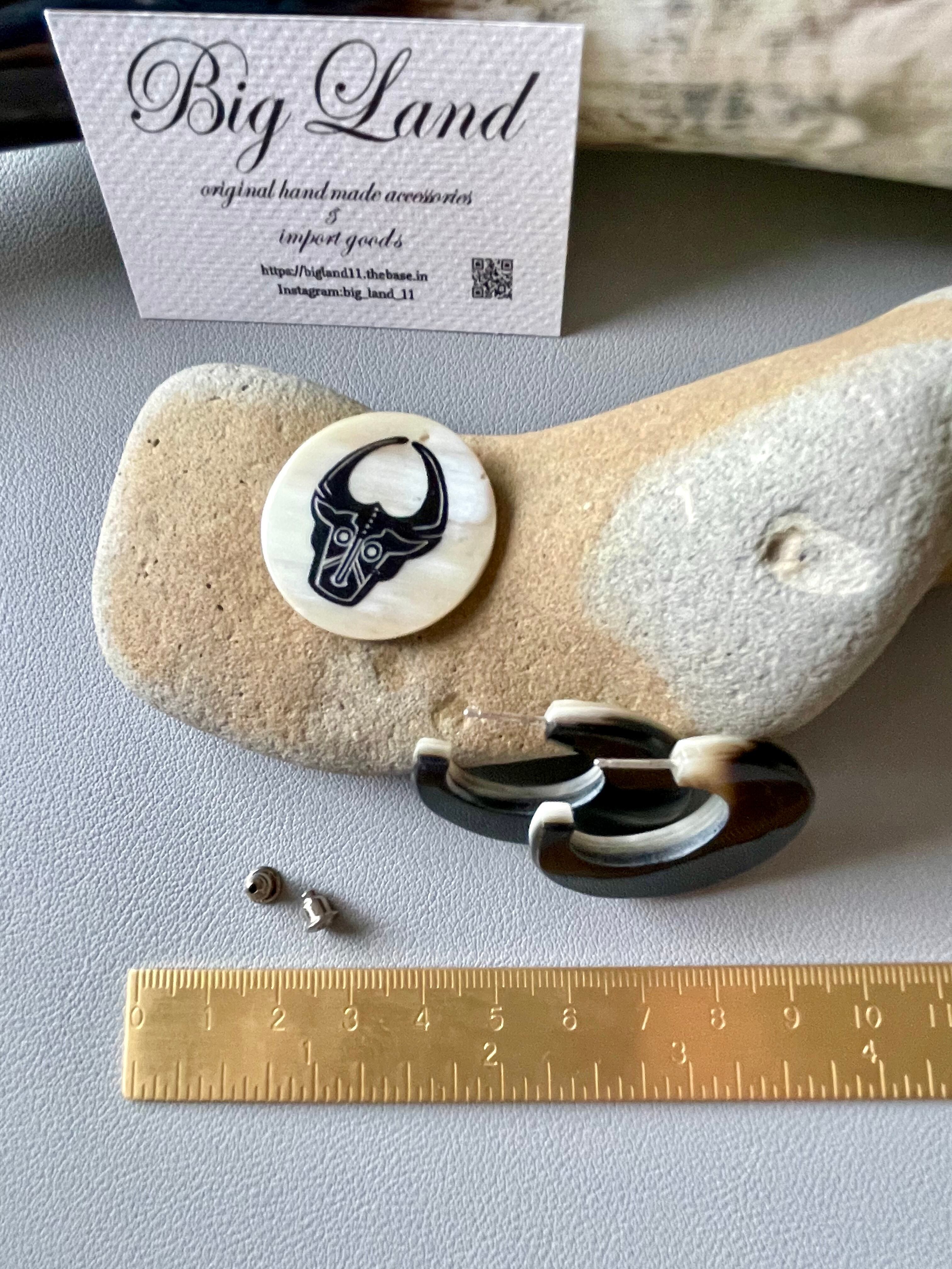 大人っぽく上品な水牛角のバイカラーの色合いでトレンドの水牛角で作られた個性が光る霜降りな柄のピアス✨
