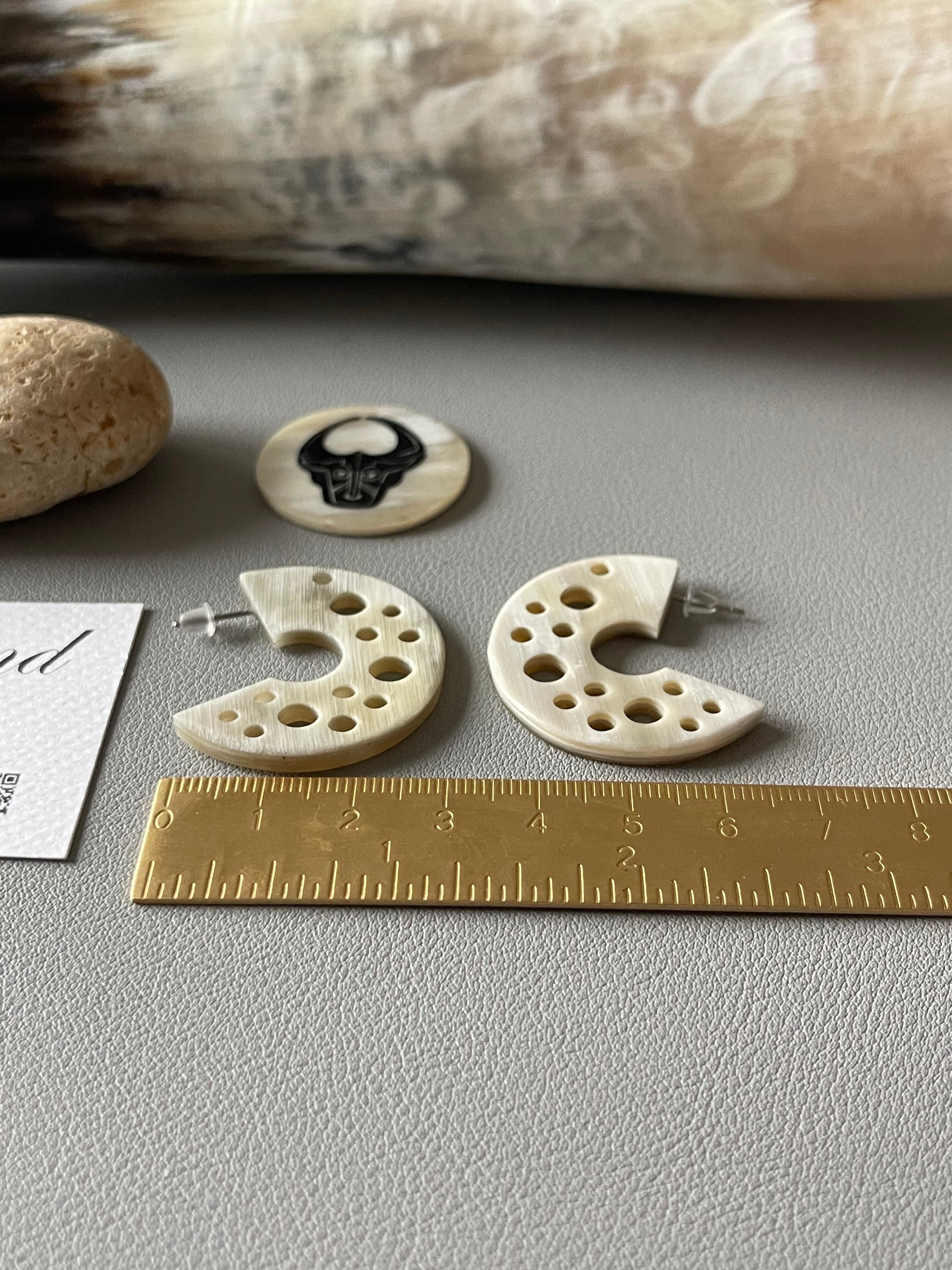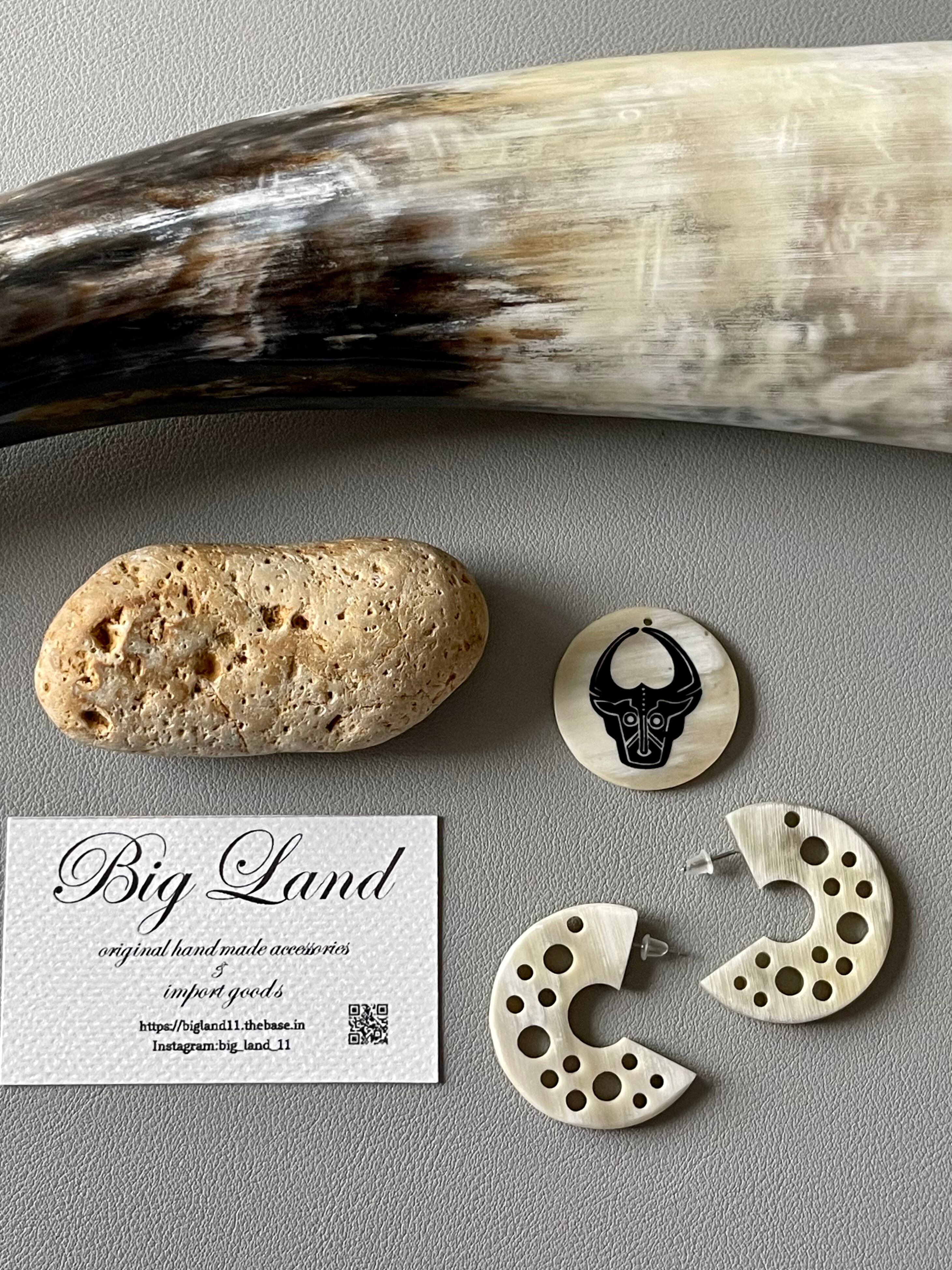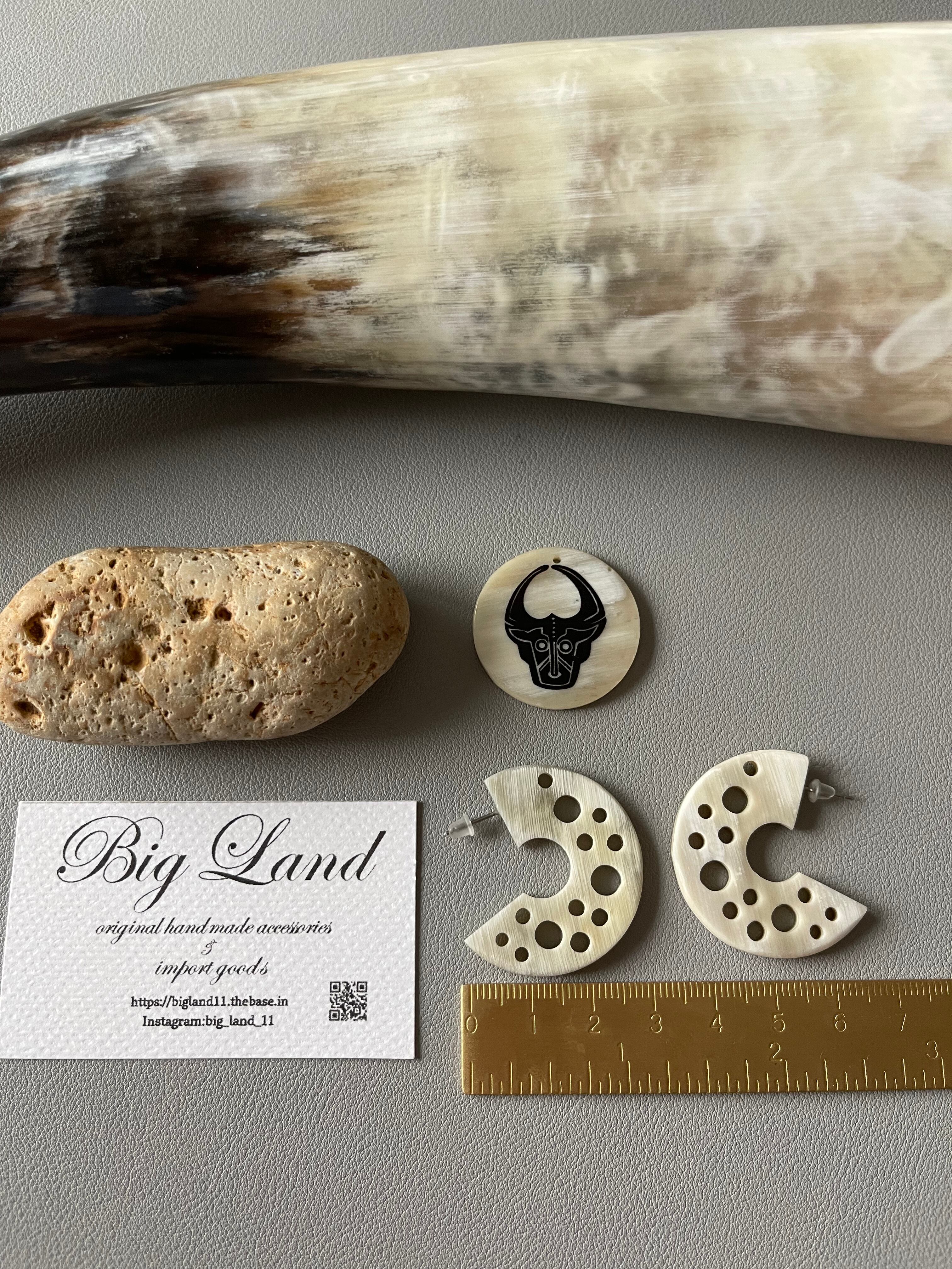 一点ものならではの美しい色合いがワンランク上のオシャレを楽しんで頂け、水牛にパンチング加工を施す事により大変洗練されたデザインで軽いのが水牛アクセサリーの特徴です✨