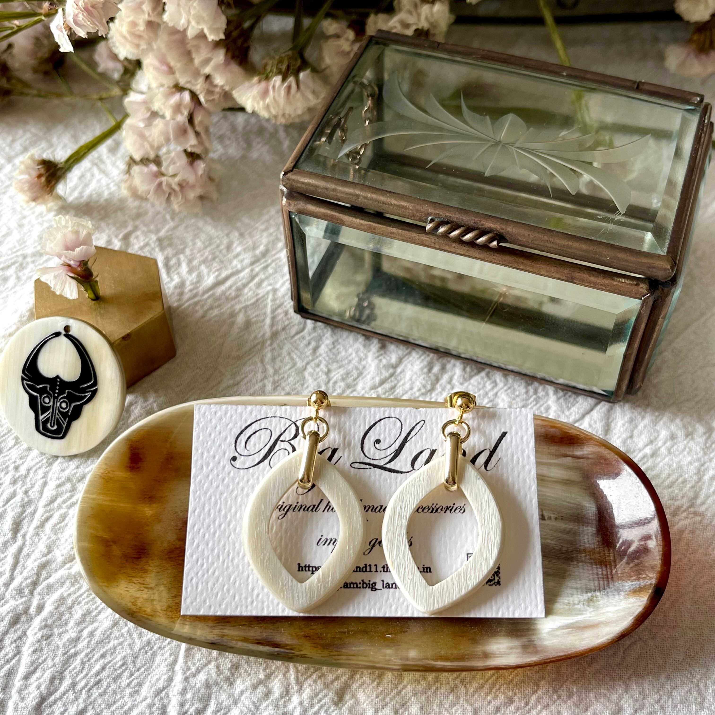 水牛角は大変軽いので耳たぶが薄い方にもご好評です✨