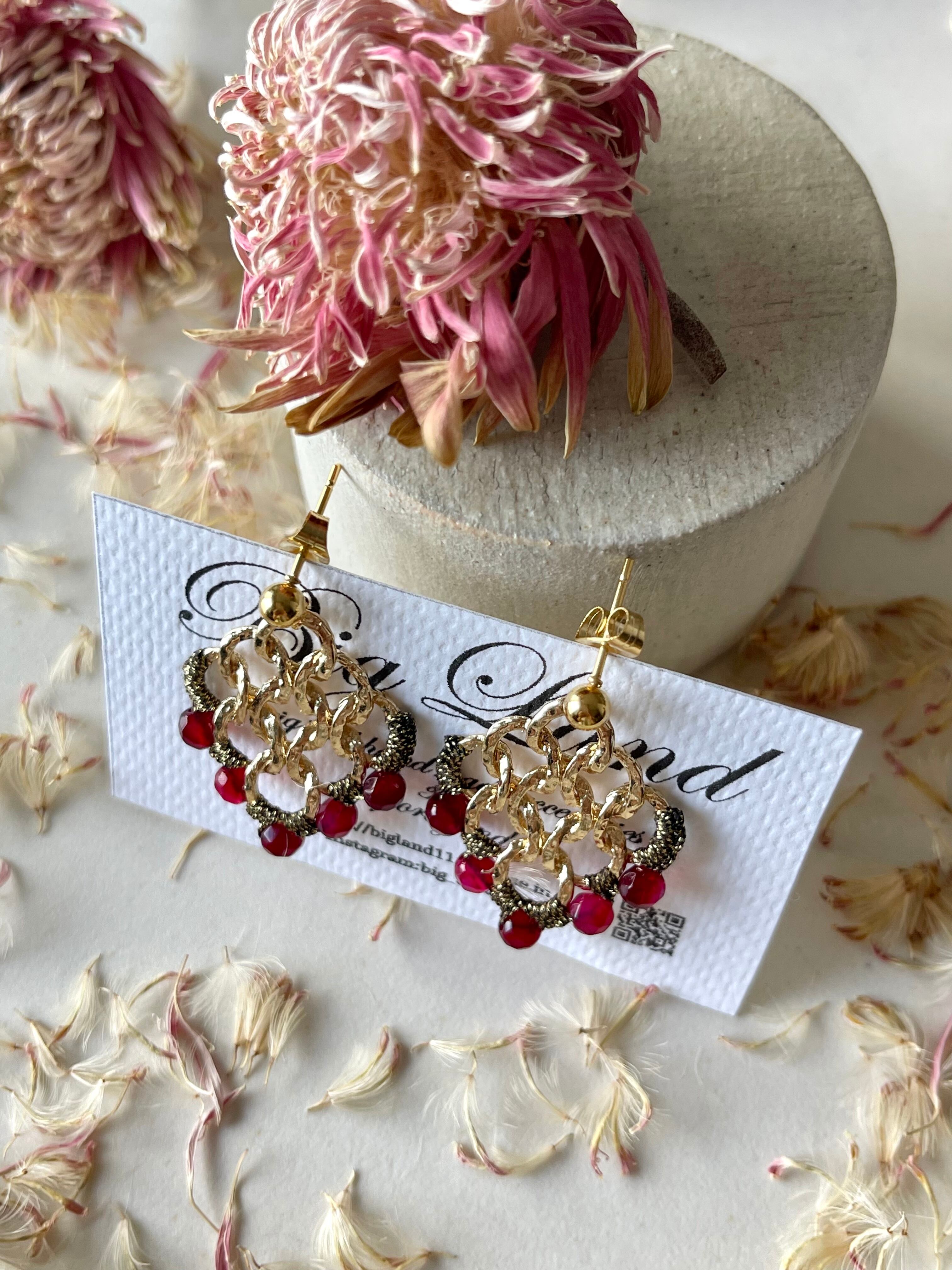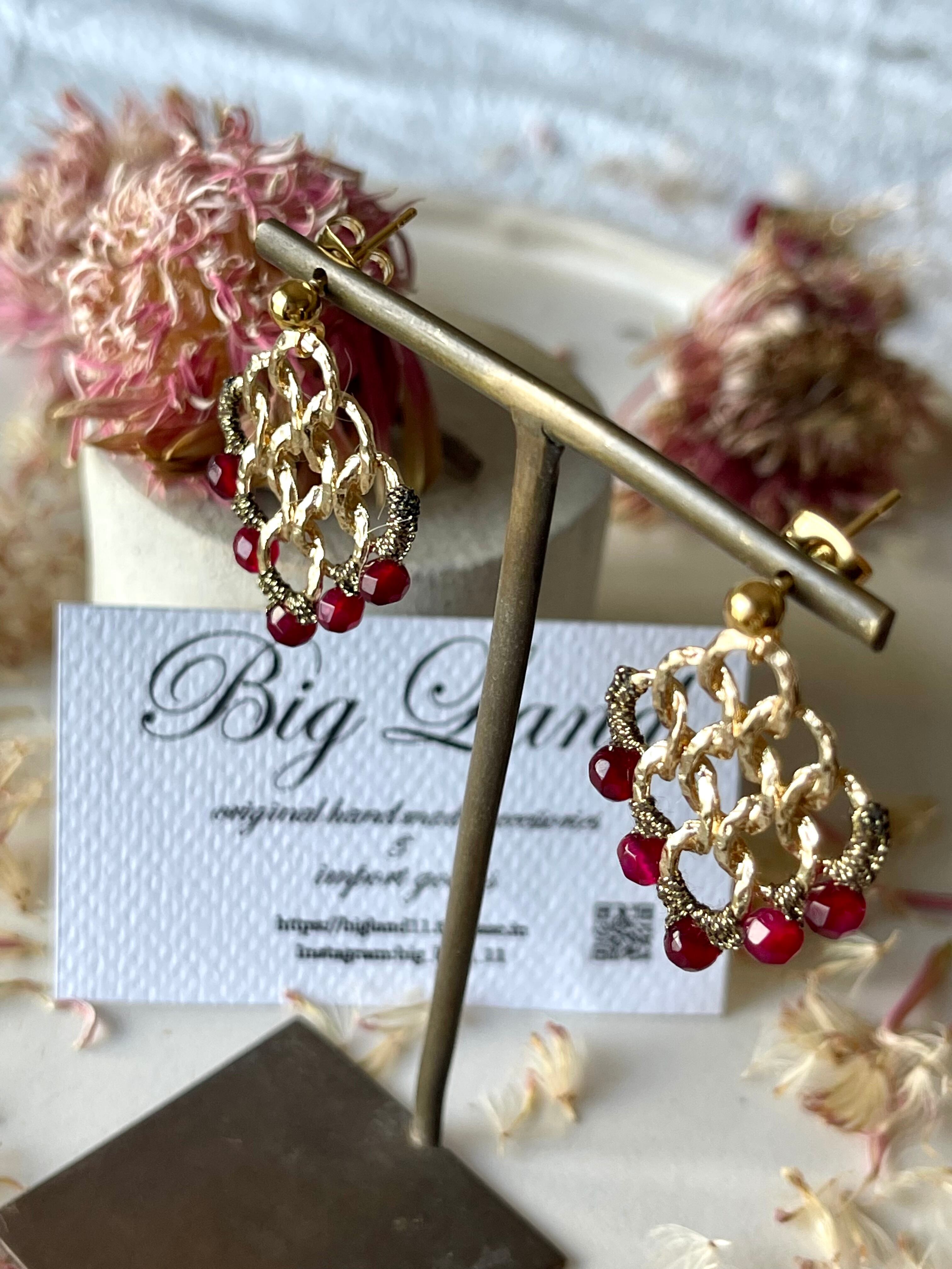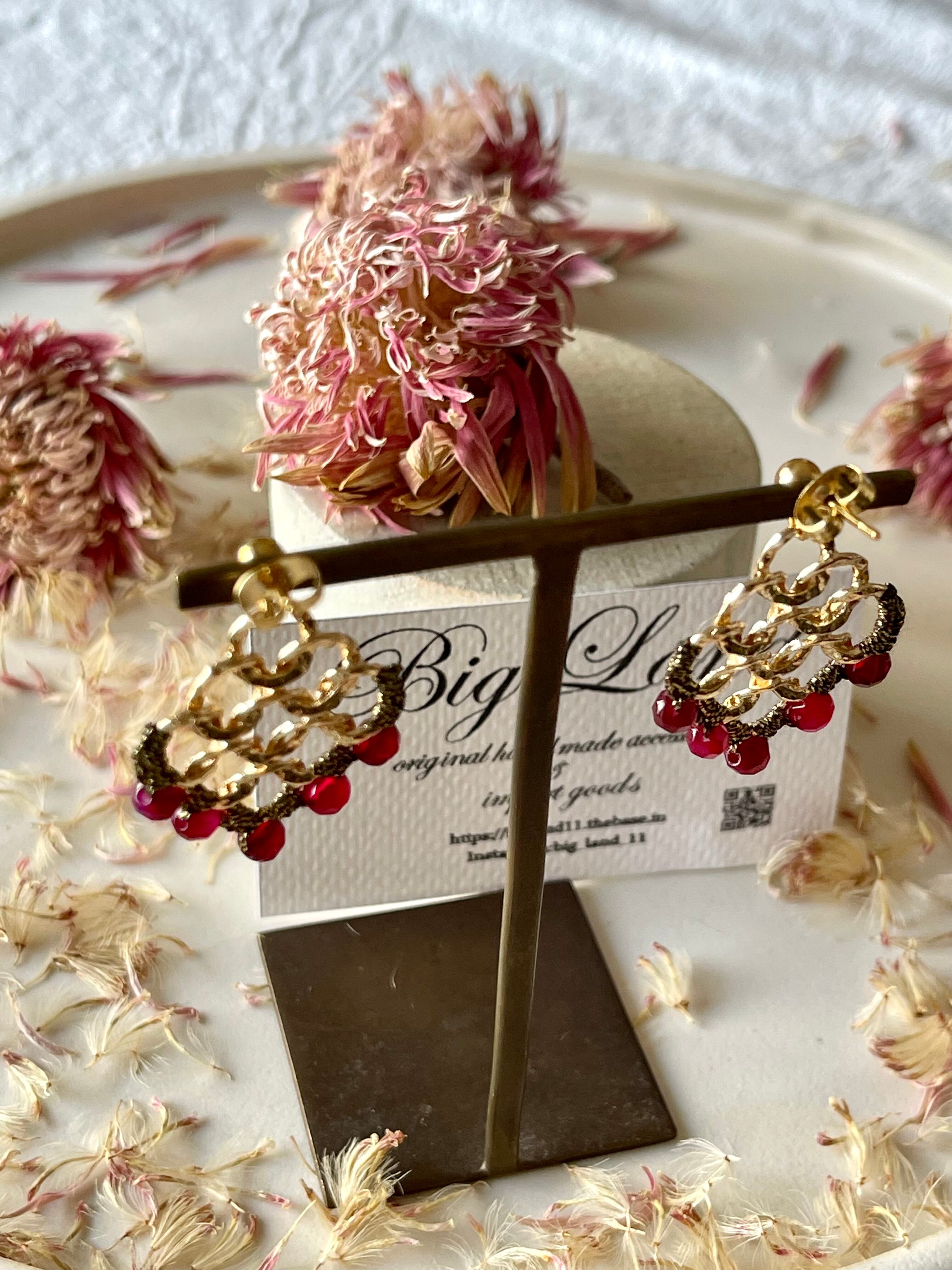 ラズベリーカルセドニーを編み込みオリエンタルな雰囲気に仕上げました^_^