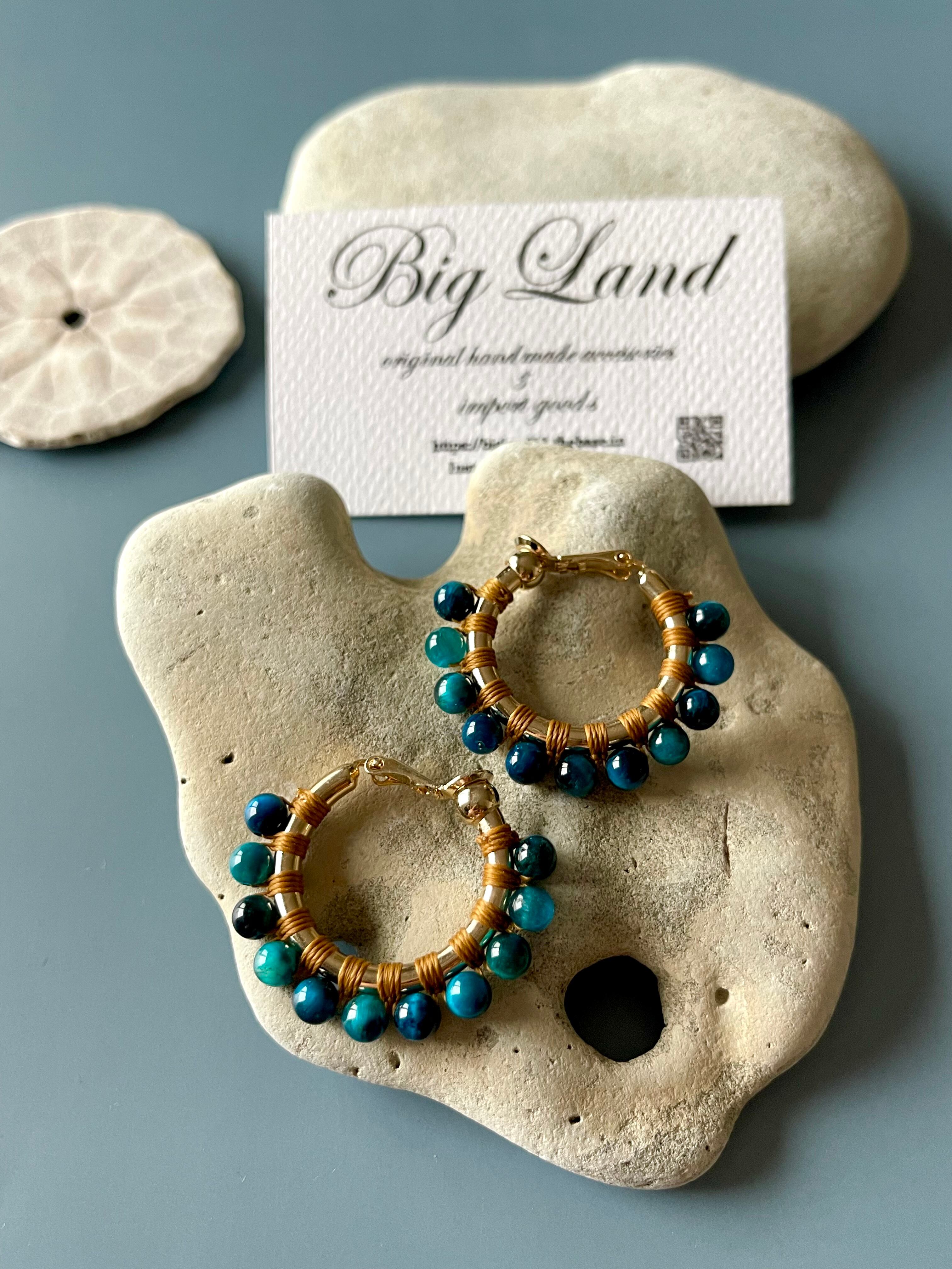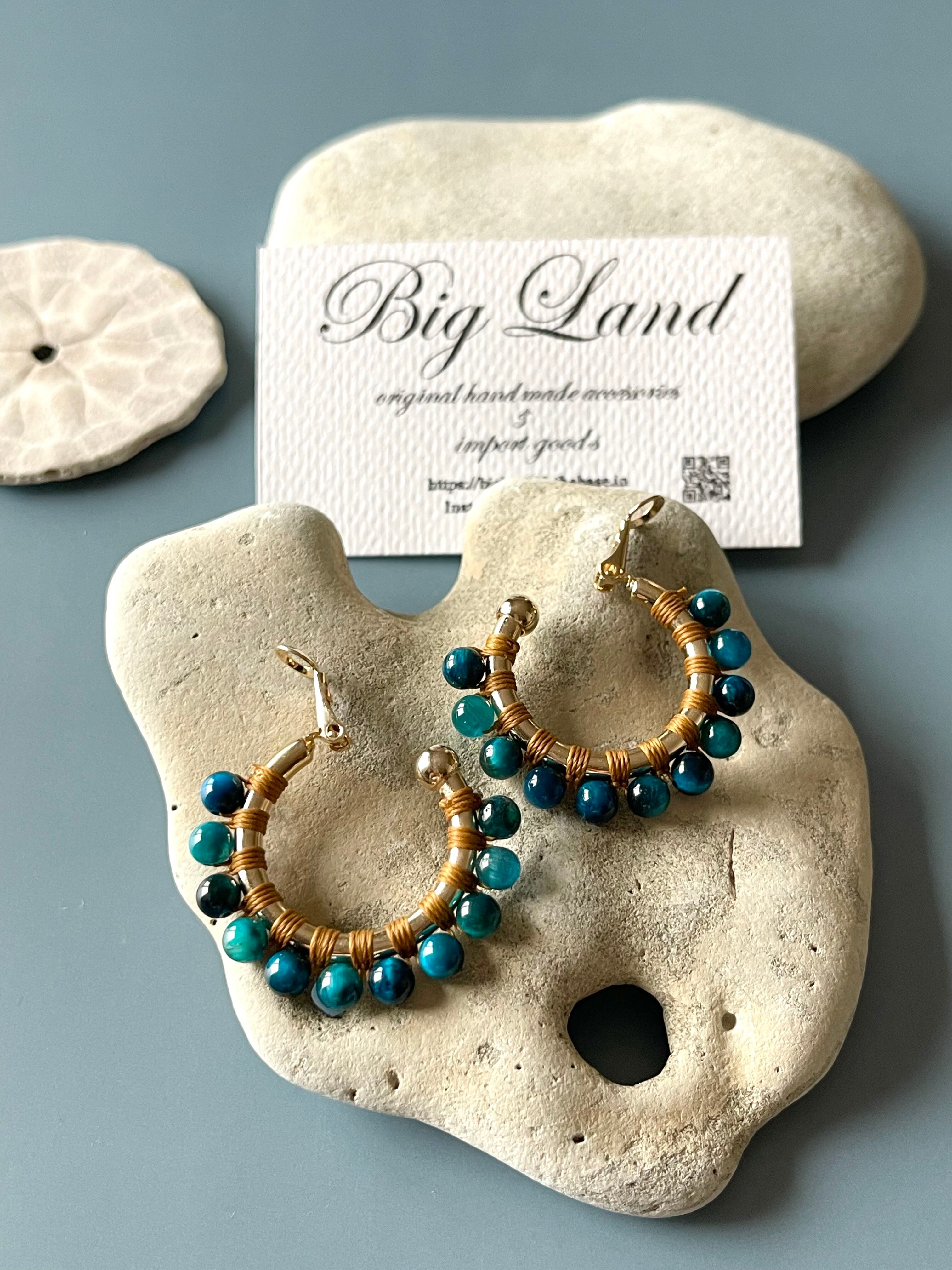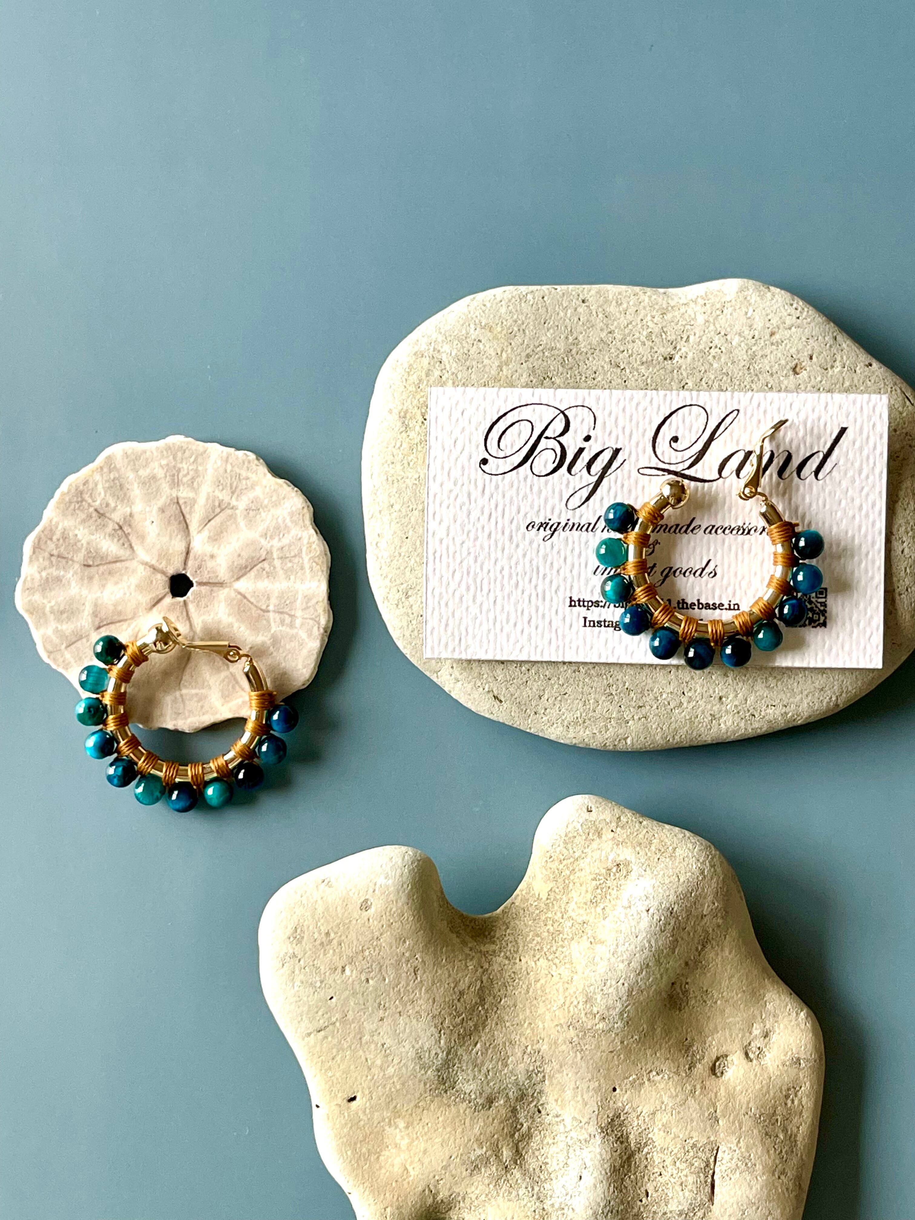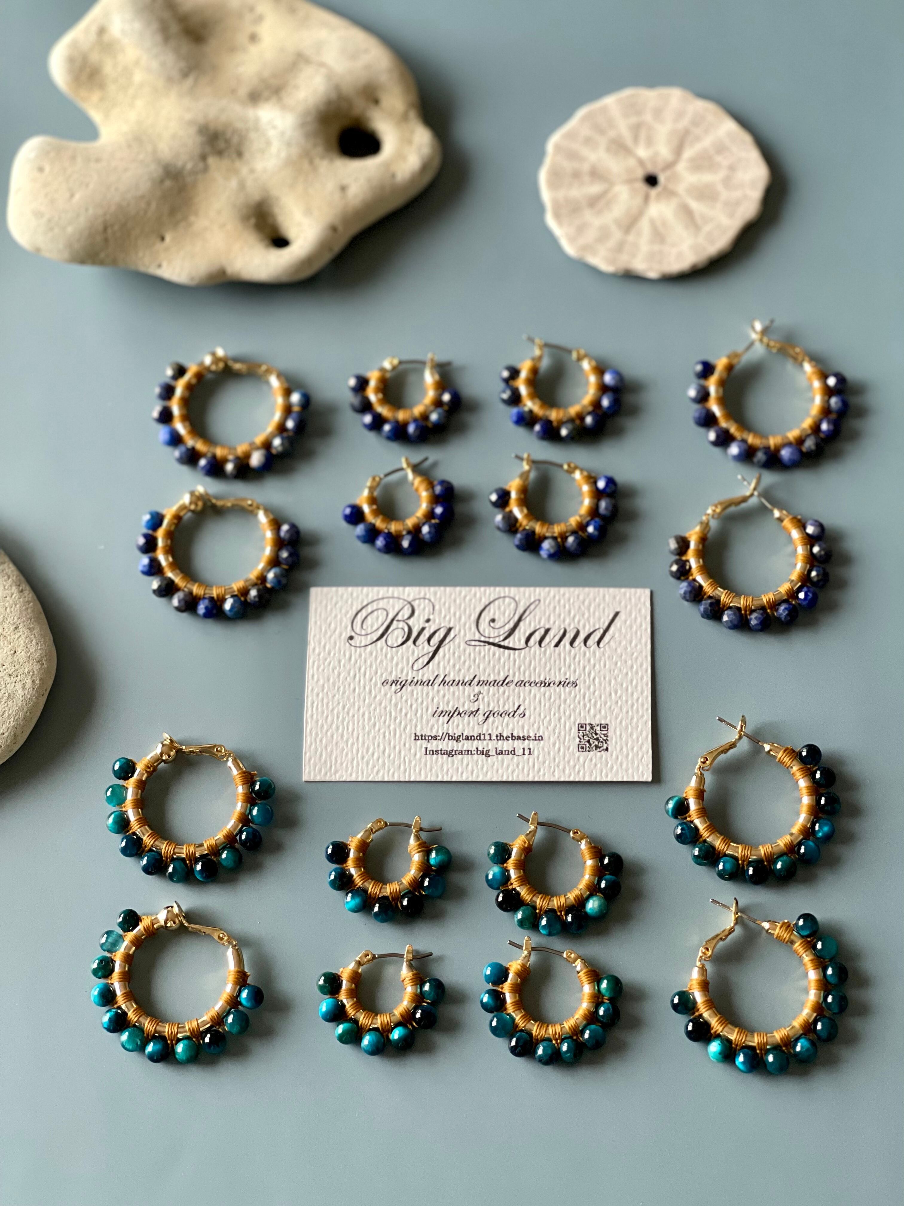 大変美しい輝きの天然石タイガーアイを一粒一粒糸で丁寧にしっかり編みあげ、高級感がありどんなお洋服にも合うと皆様色違いでご購入されてます