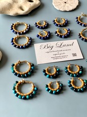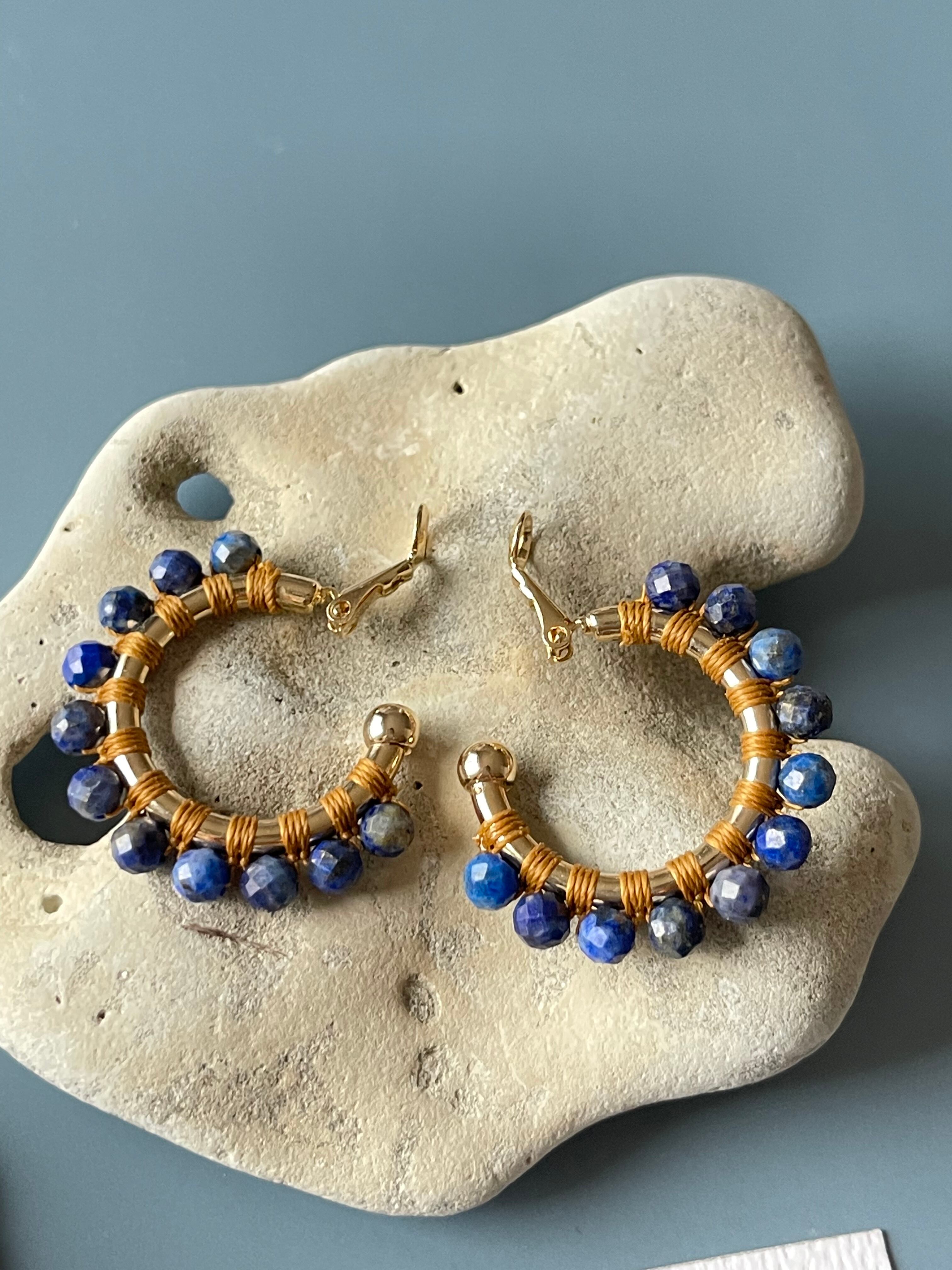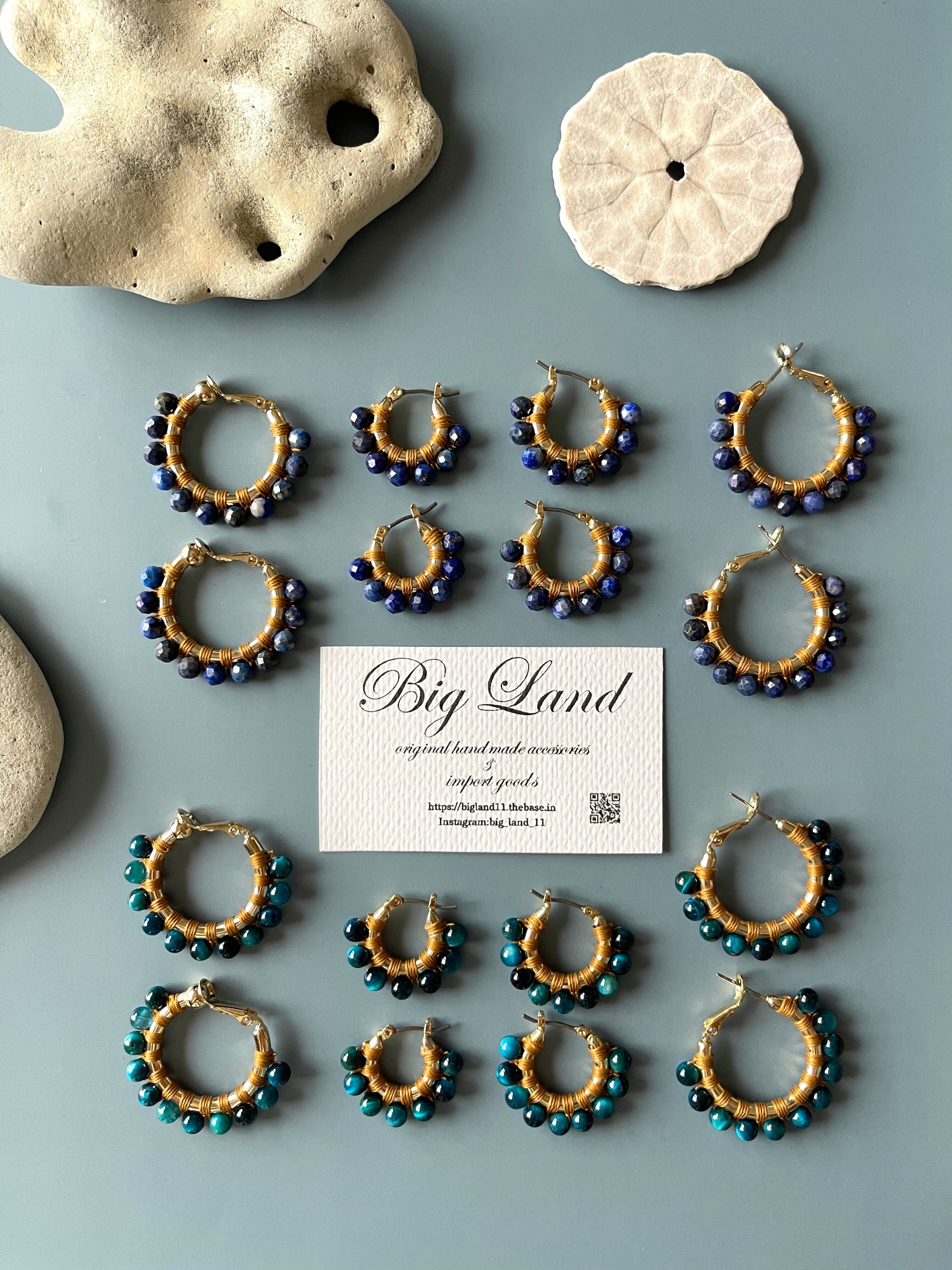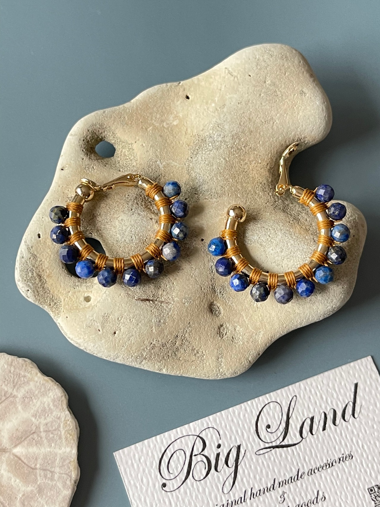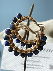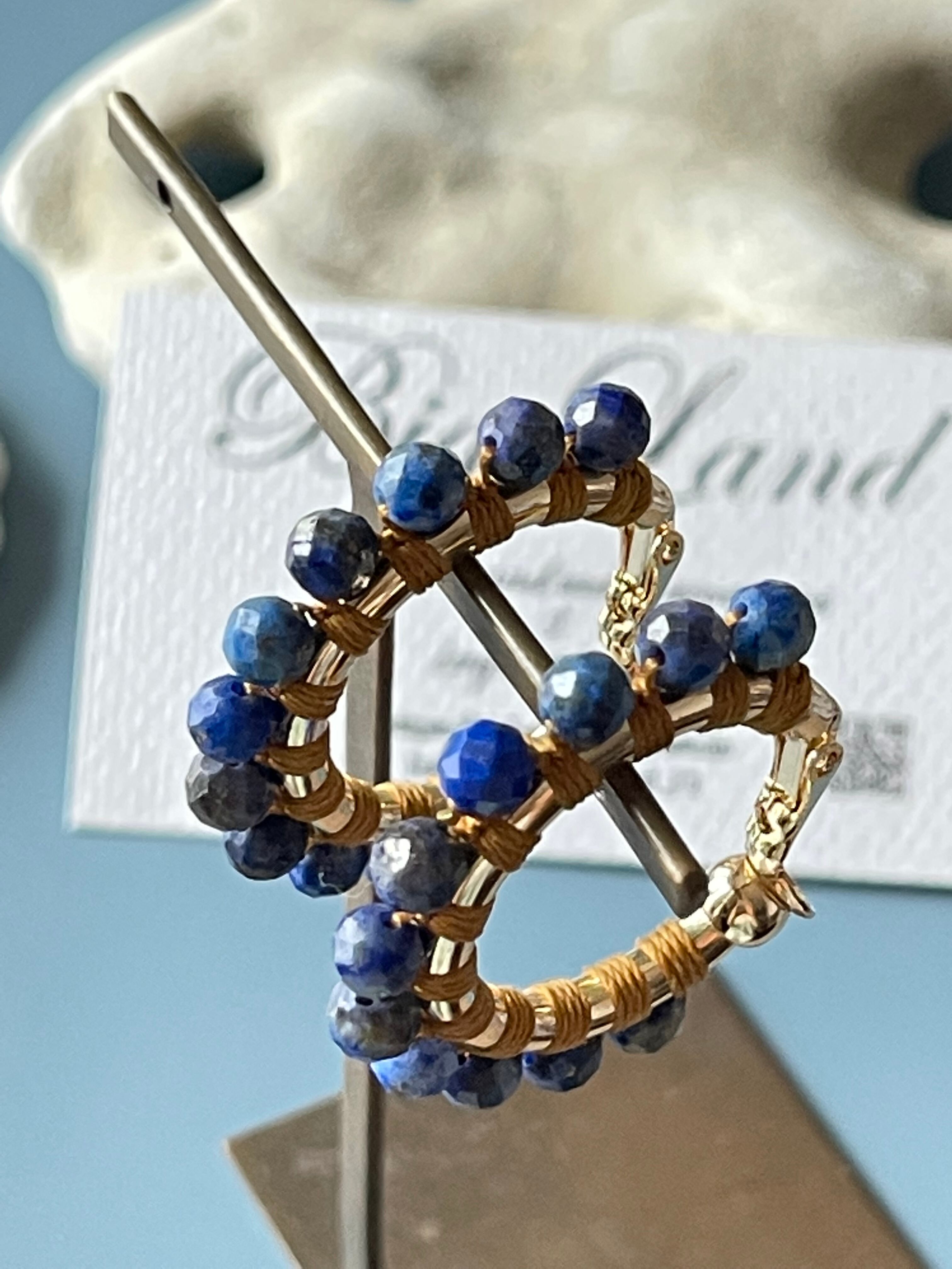 多面カット天然石ラピスラズリを一粒一粒糸で丁寧にしっかり編みあげ、高級感がありどんなお洋服にも合うと皆様色違いでご購入されてます