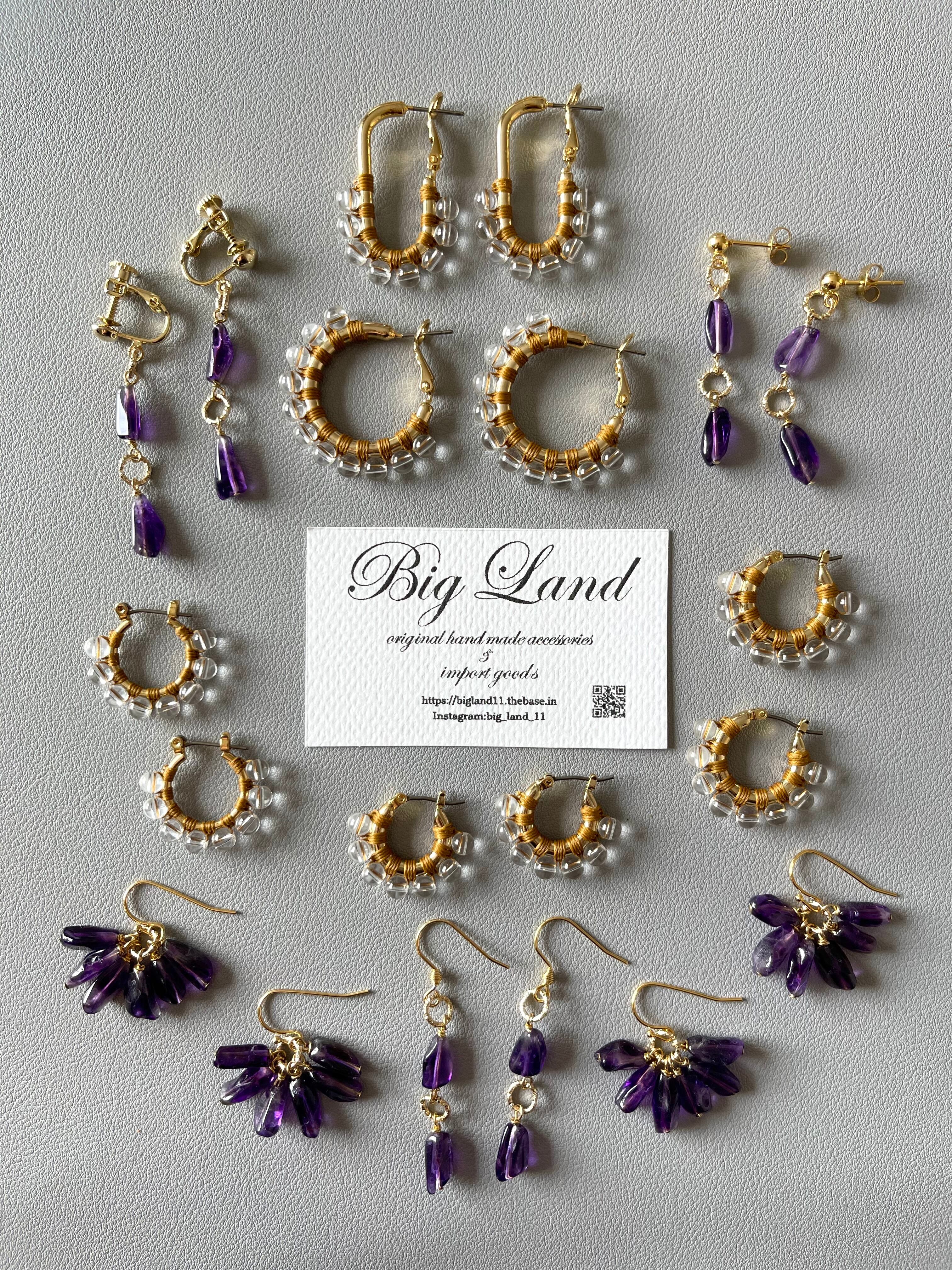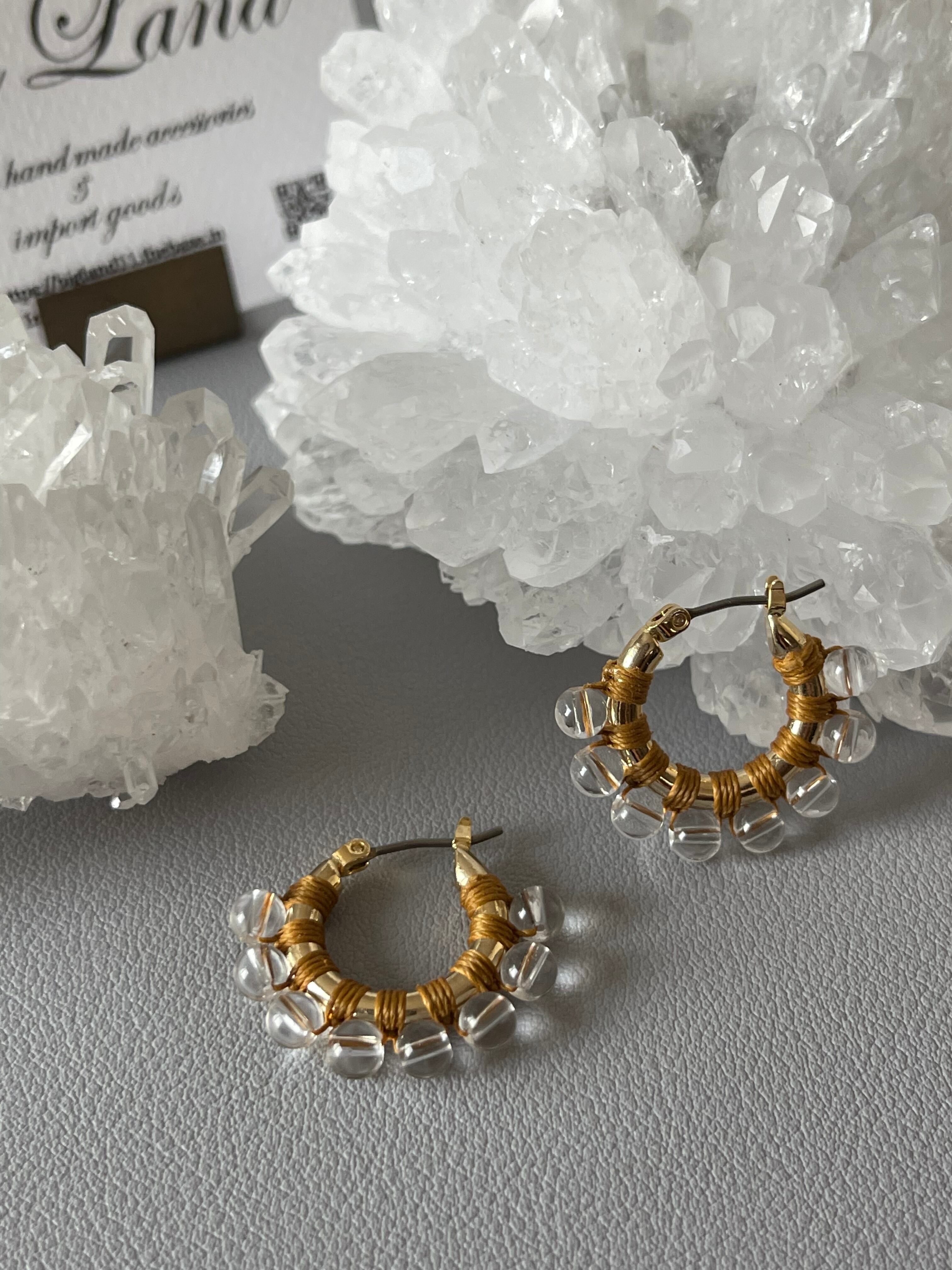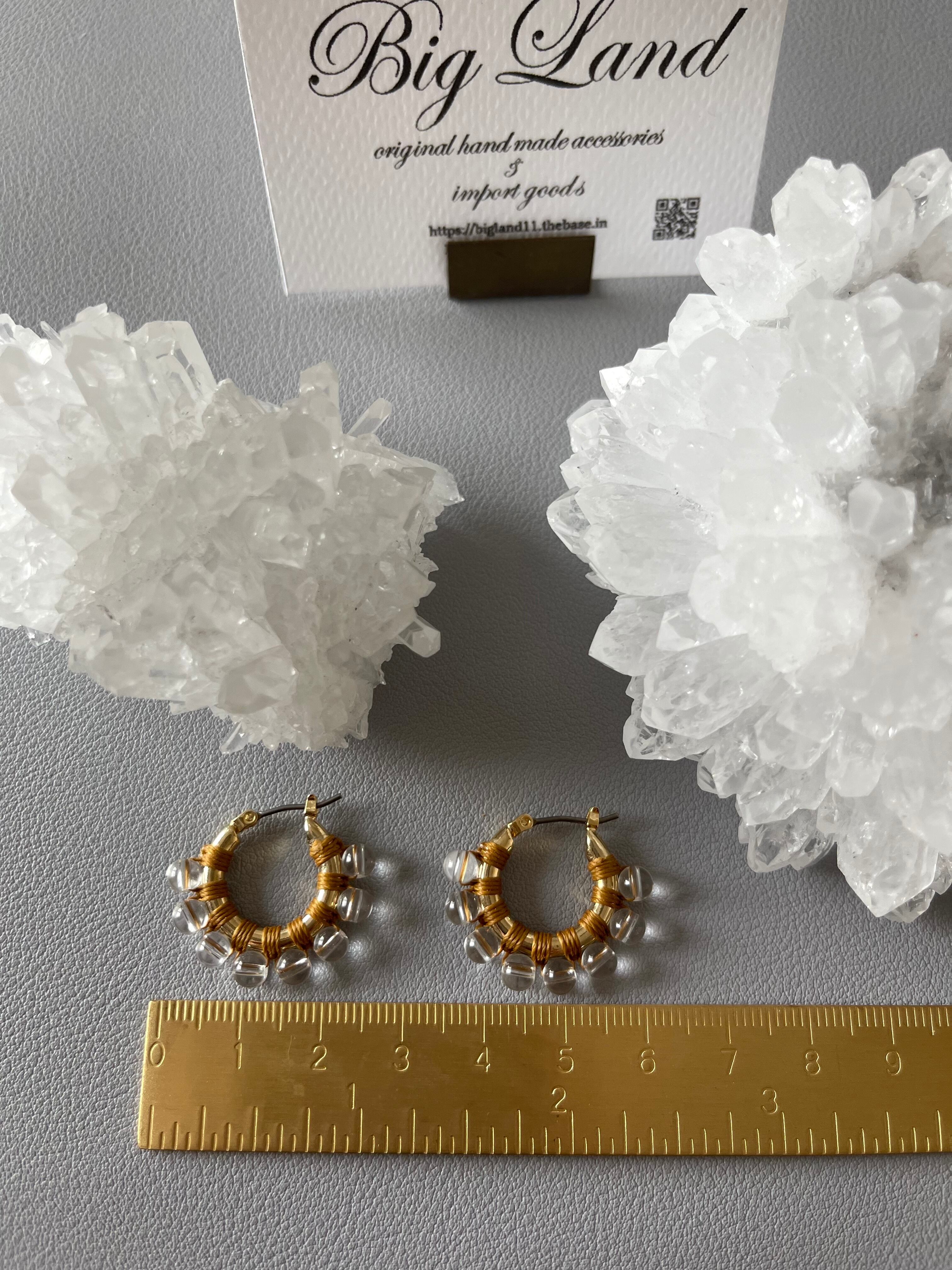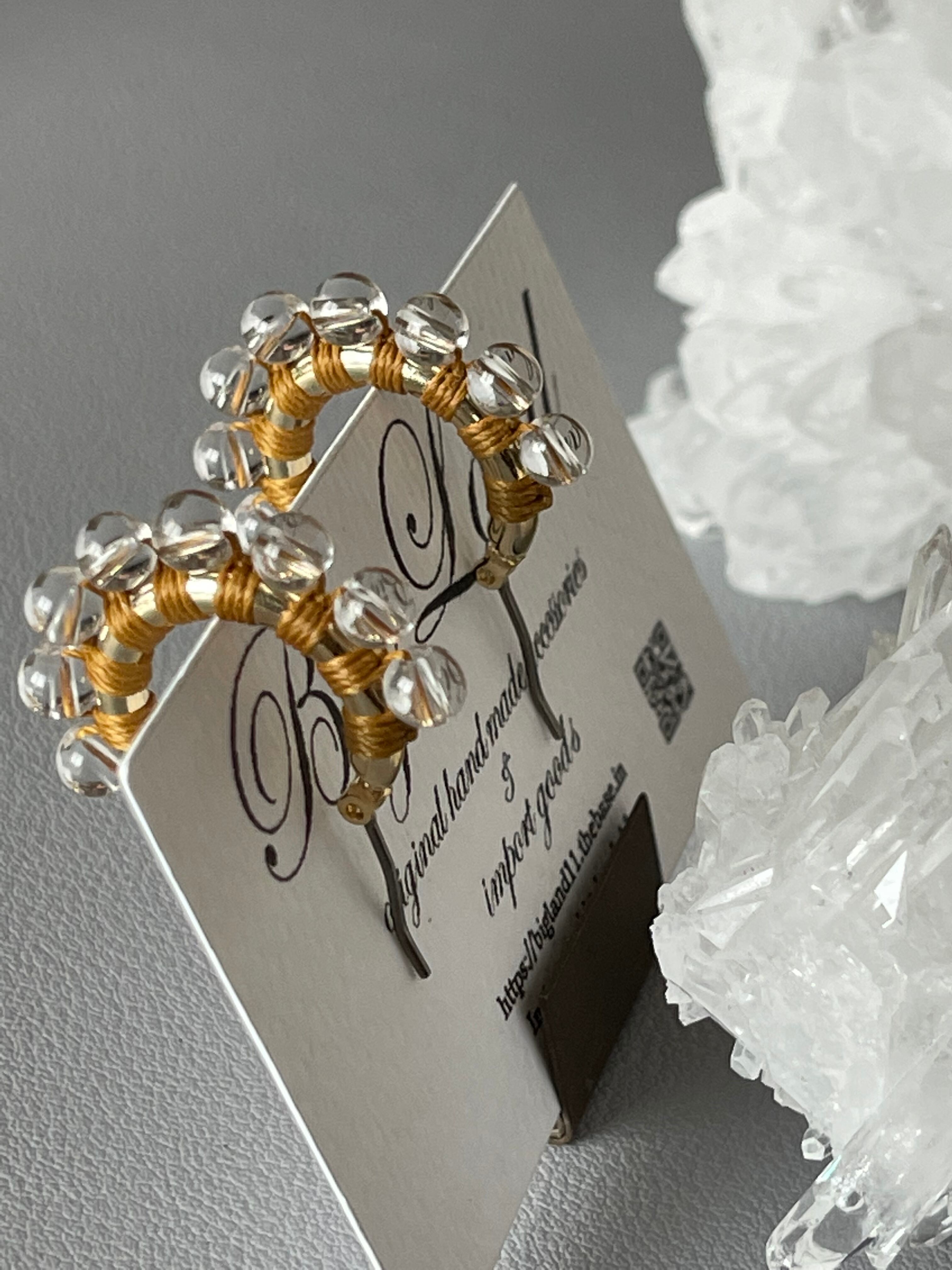 ぽってりした重厚感あるフープが高品質で、一粒一粒手間をかけて糸でひと編みひと編みしてます