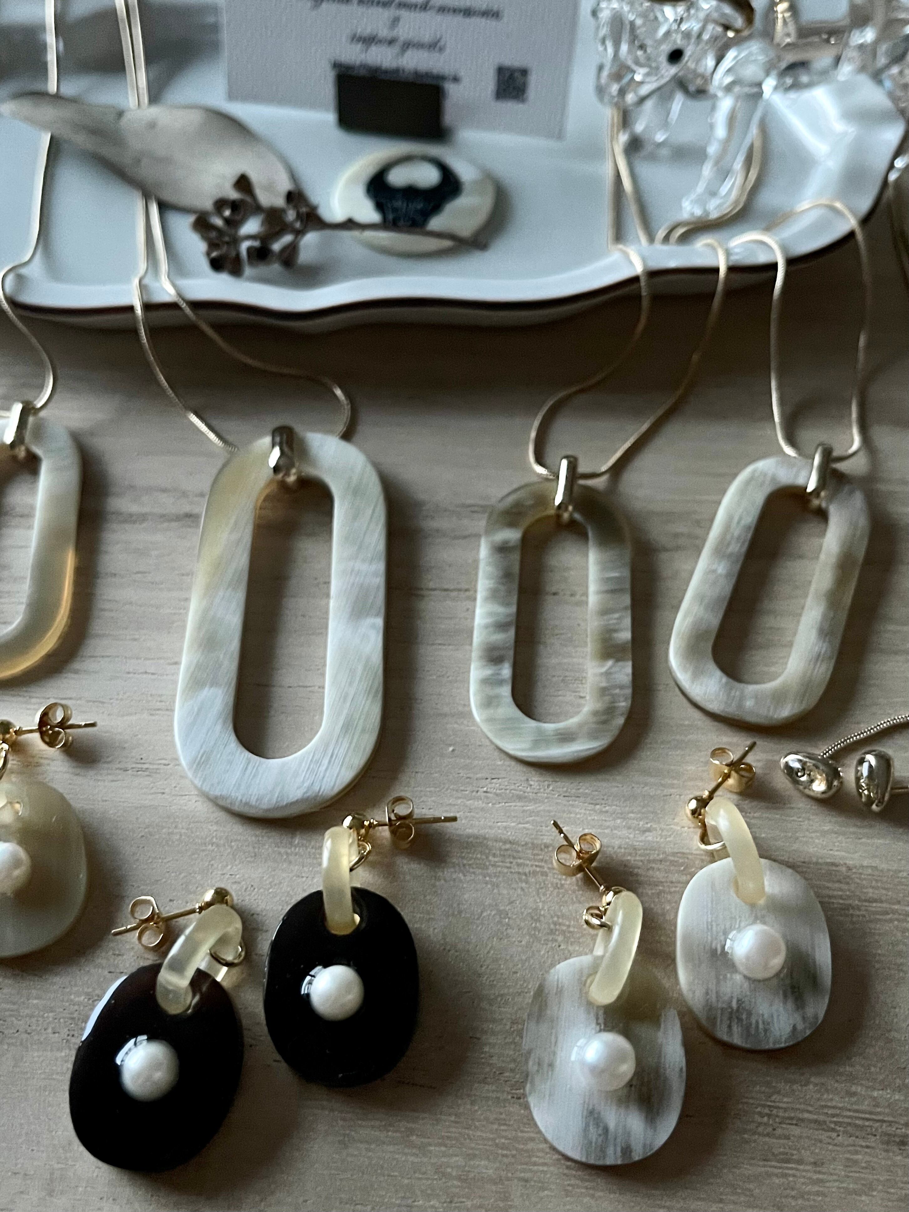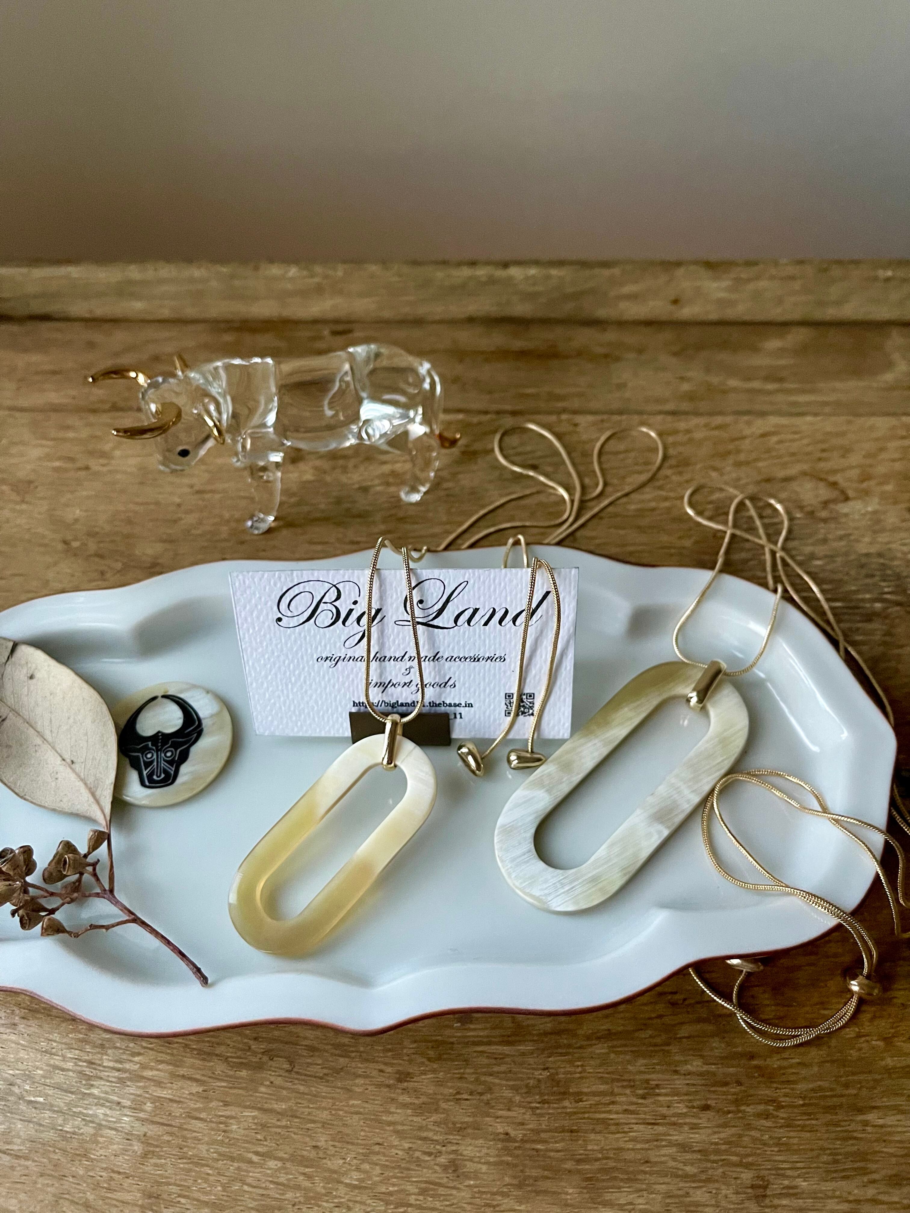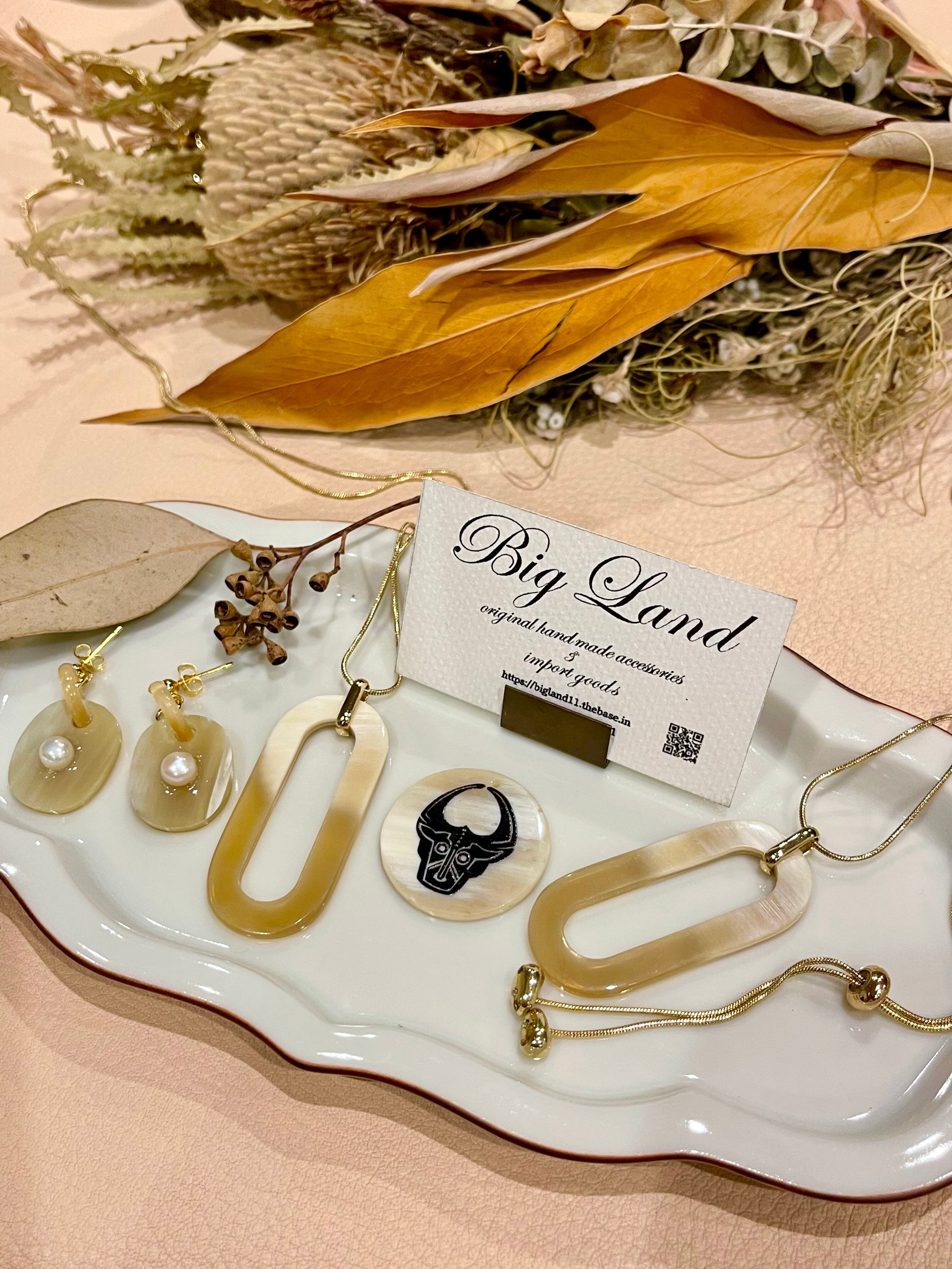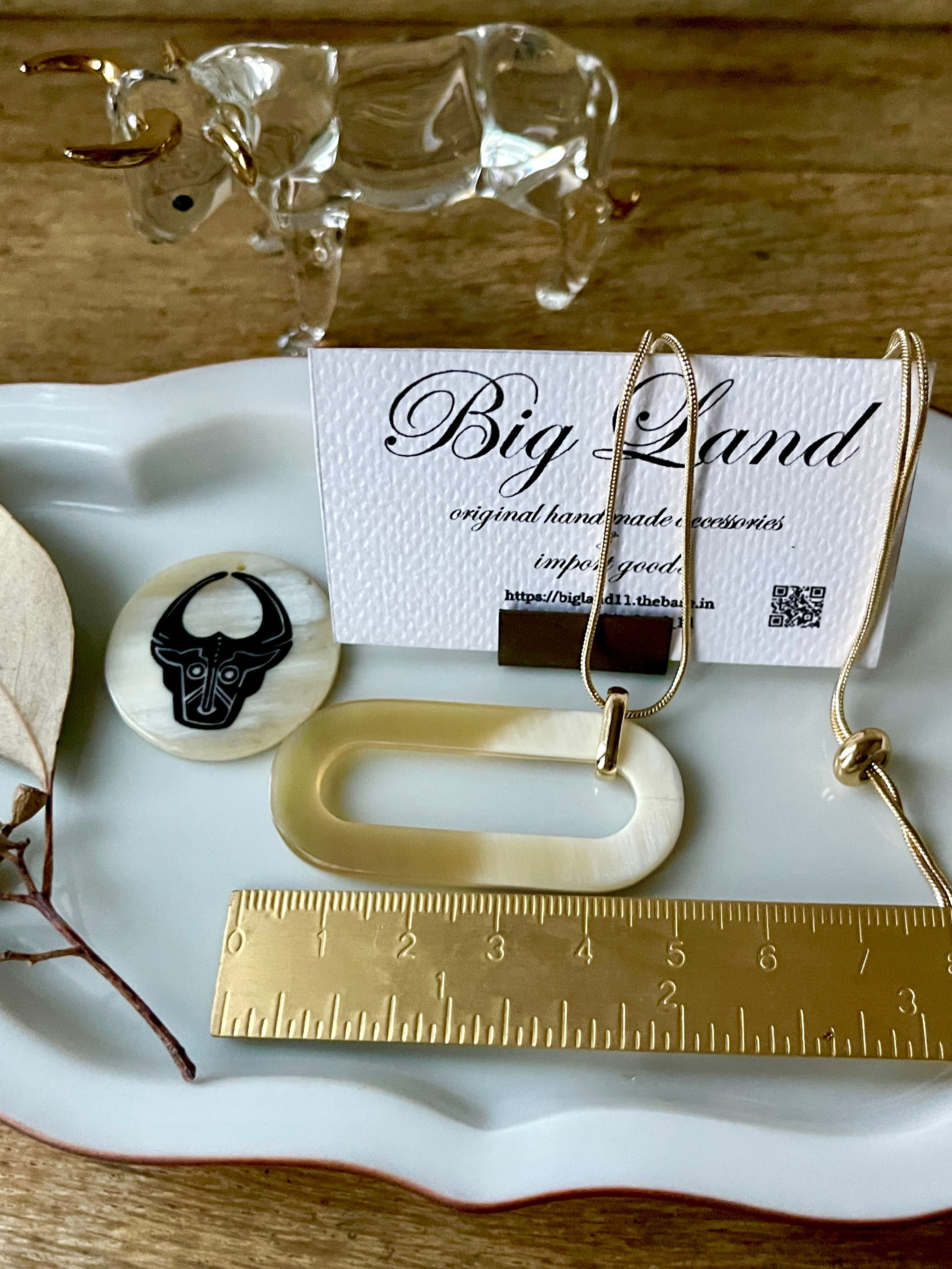 ナチュラルな水牛角ネックレスはアイボリーコーデやアースカラーのリネンワンピースに超マッチでピアスとセットコーデもオススメ‼️