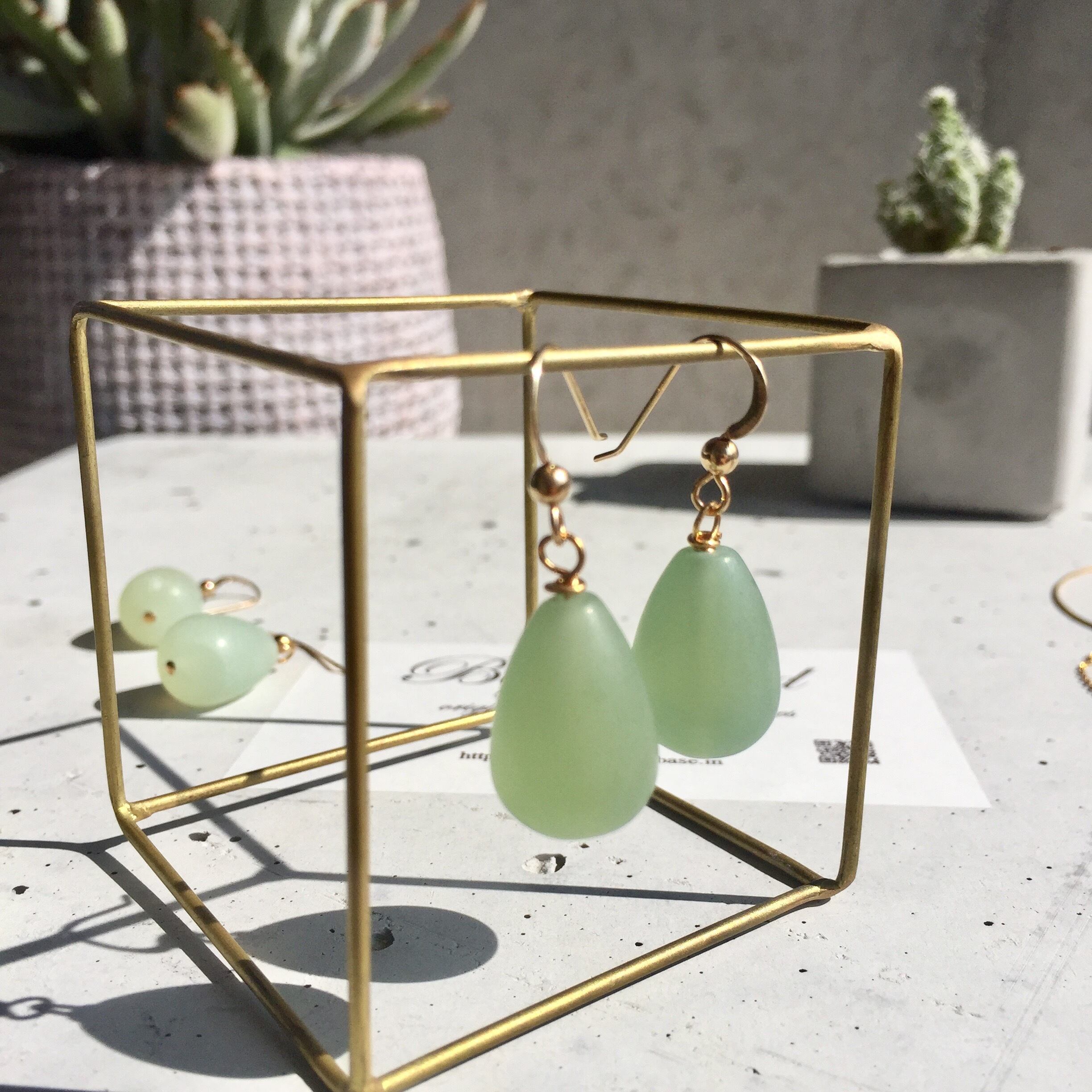 マットなグリーンの天然石が、上品な雰囲気でお顔周りを明るくします✨