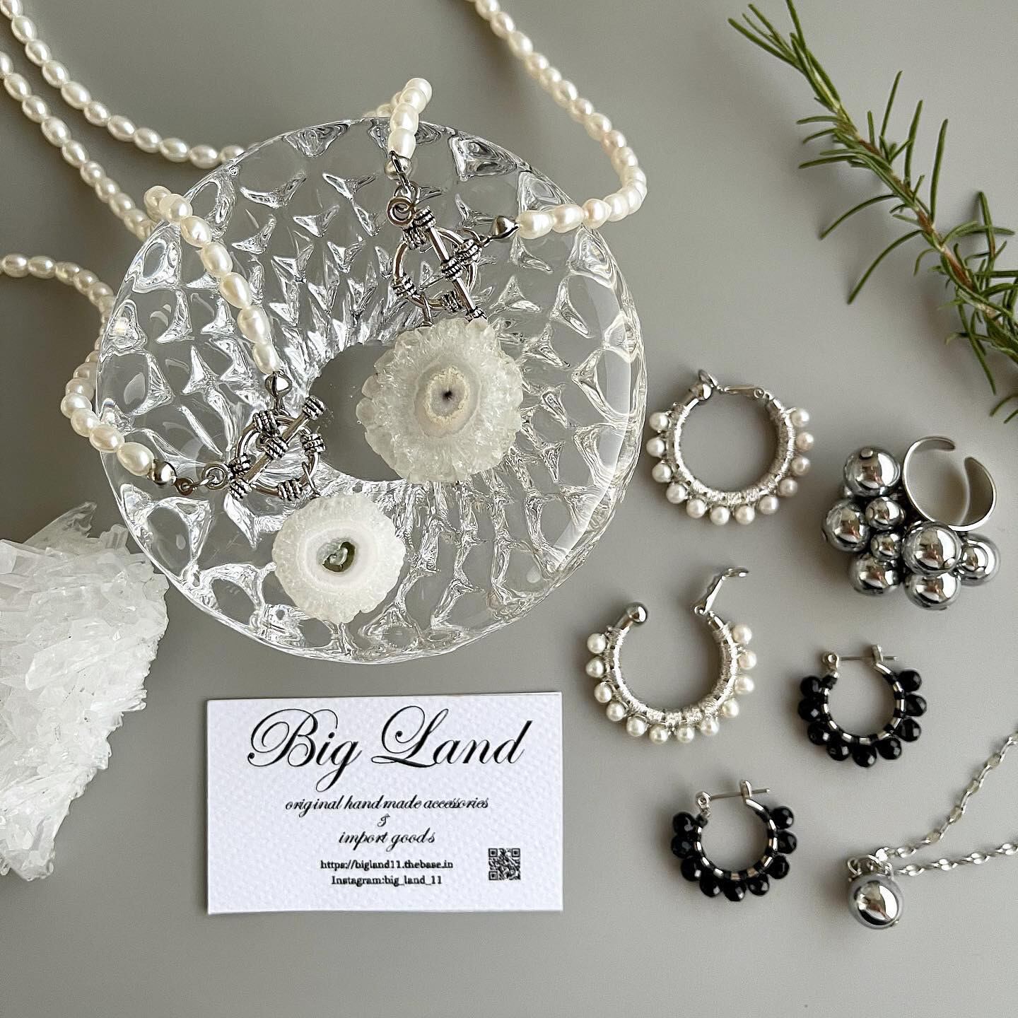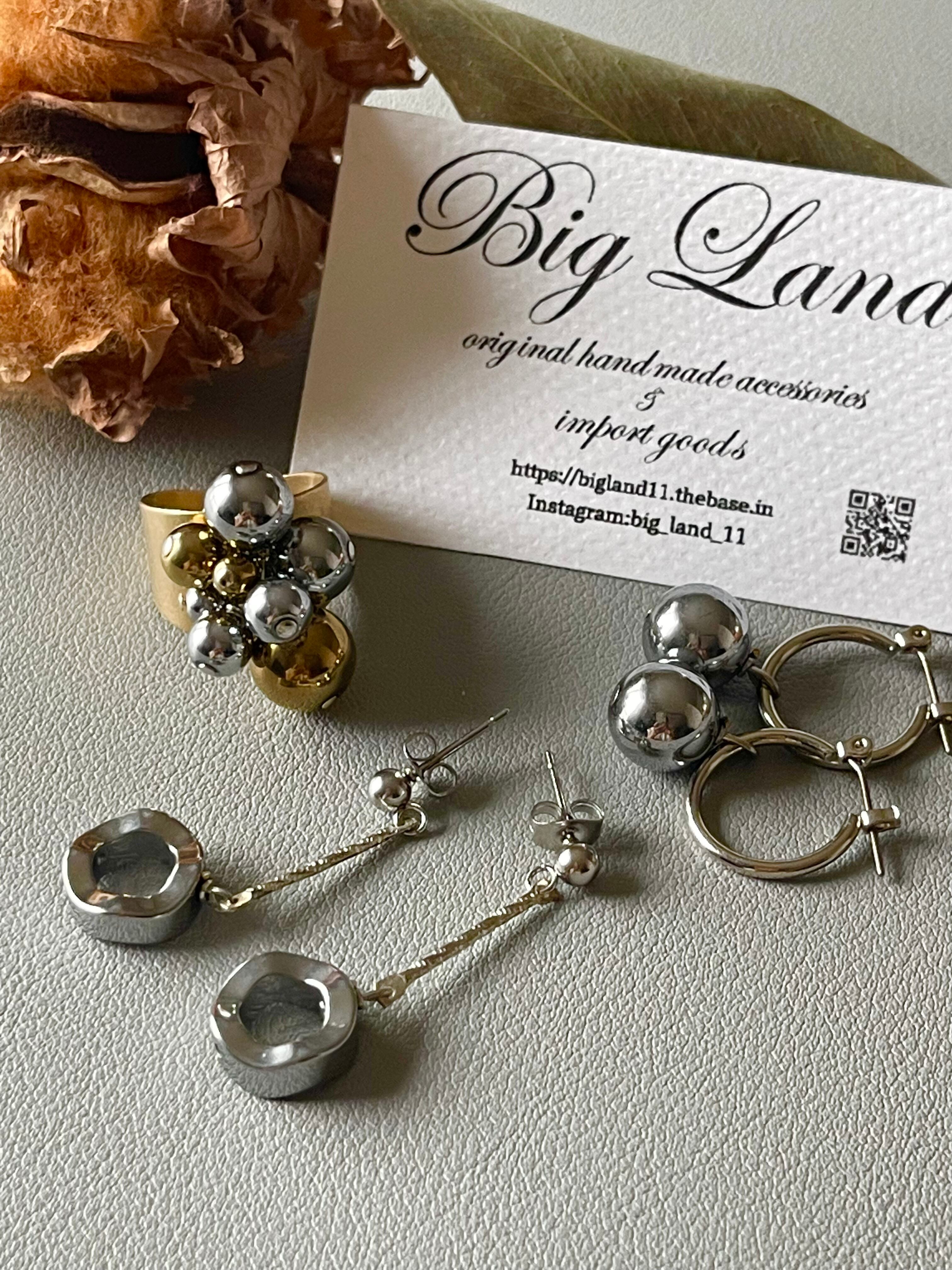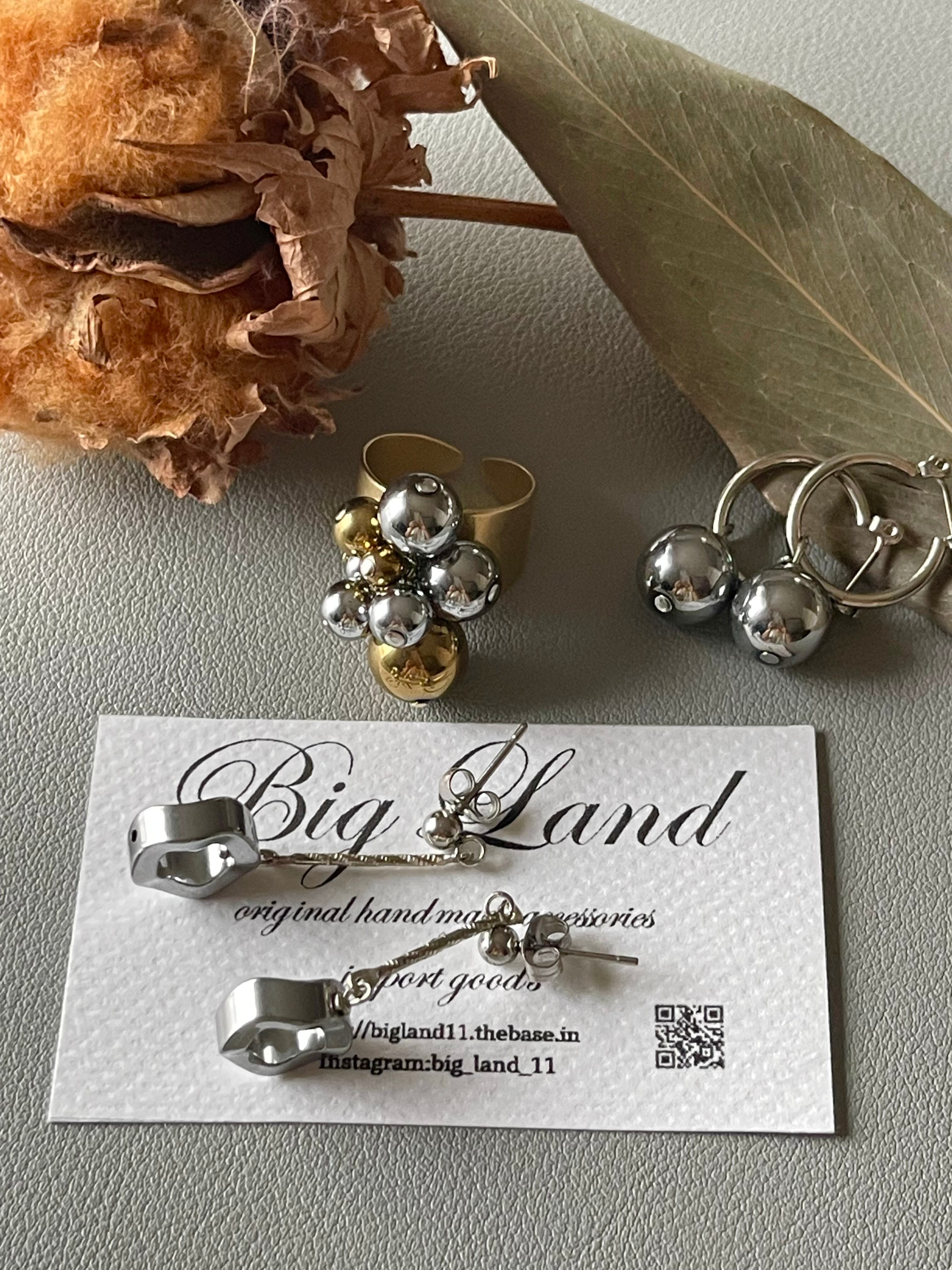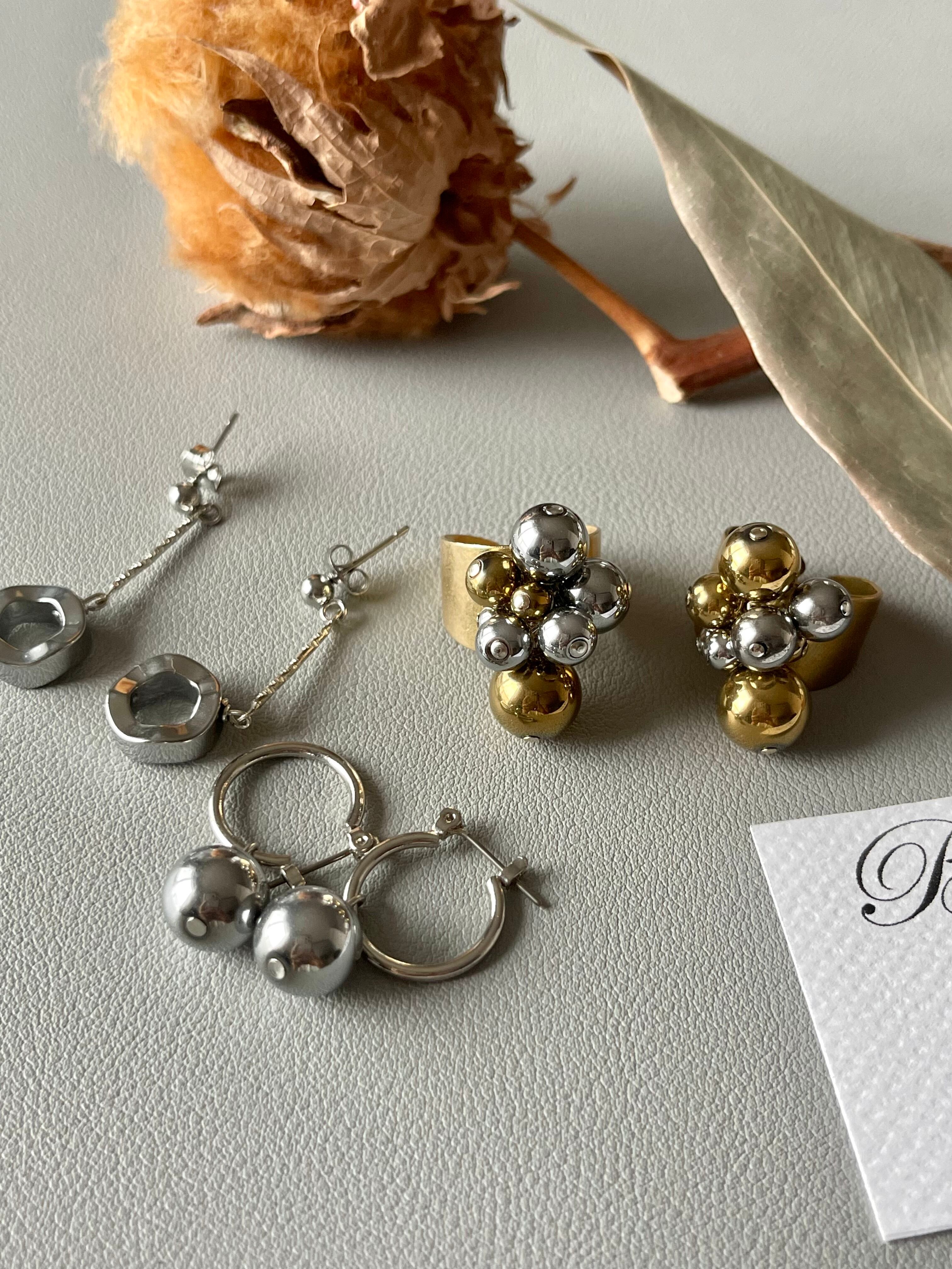 天然石ヘマタイトにコーティングの為シルバー925のようにお手入れが必要なく今迄も皆様からこのシリーズは大変人気で、カジュアルな普段使いからパーティーシーンのお洋服にもリングとピアスのセット使いもキマリます