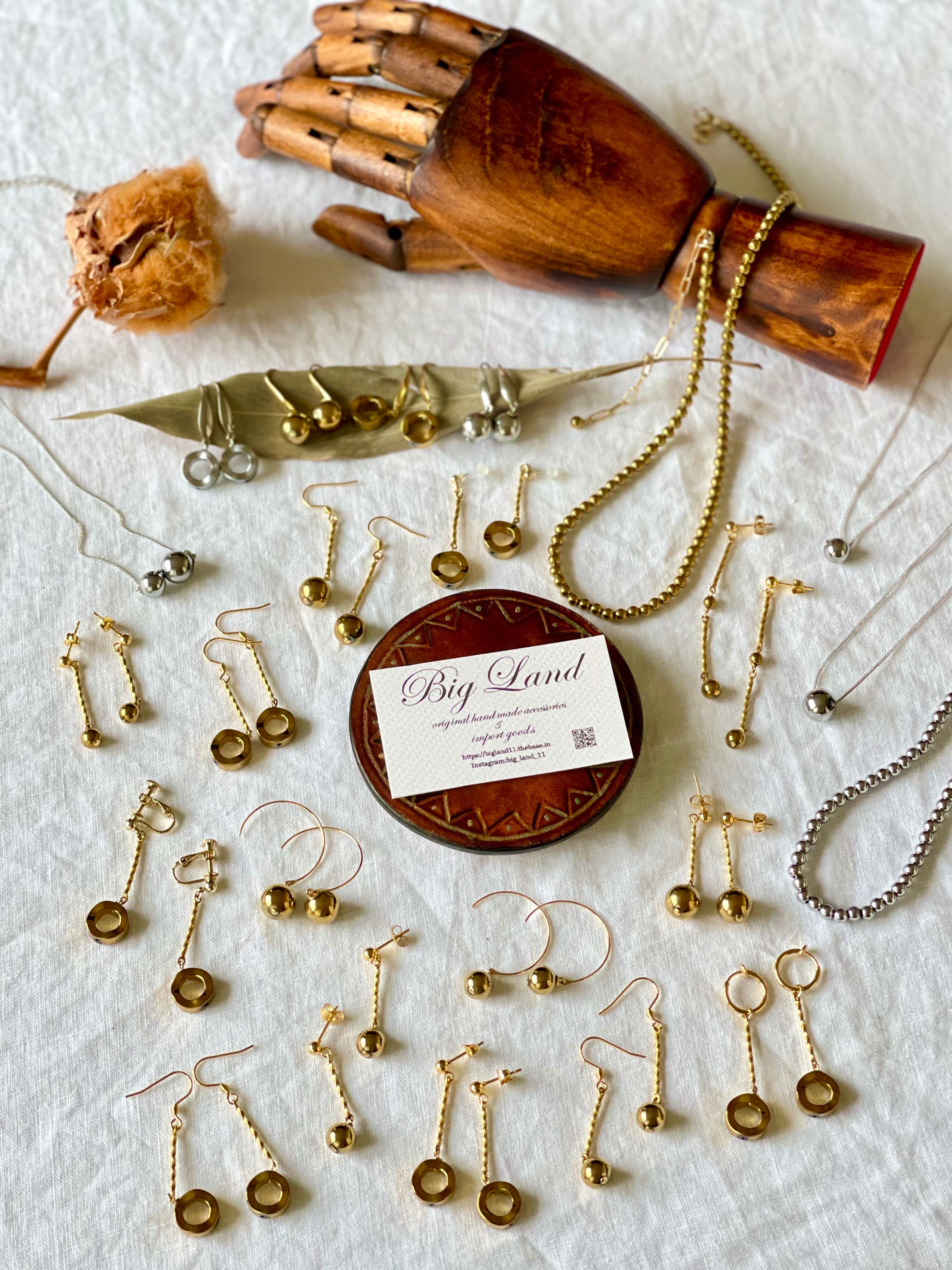 ブラックコーデ、グレーコーデと冬にも夏にも大活躍する色合いで、パーティーシーンのお洋服にもリングとピアスのセット使いもキマリます