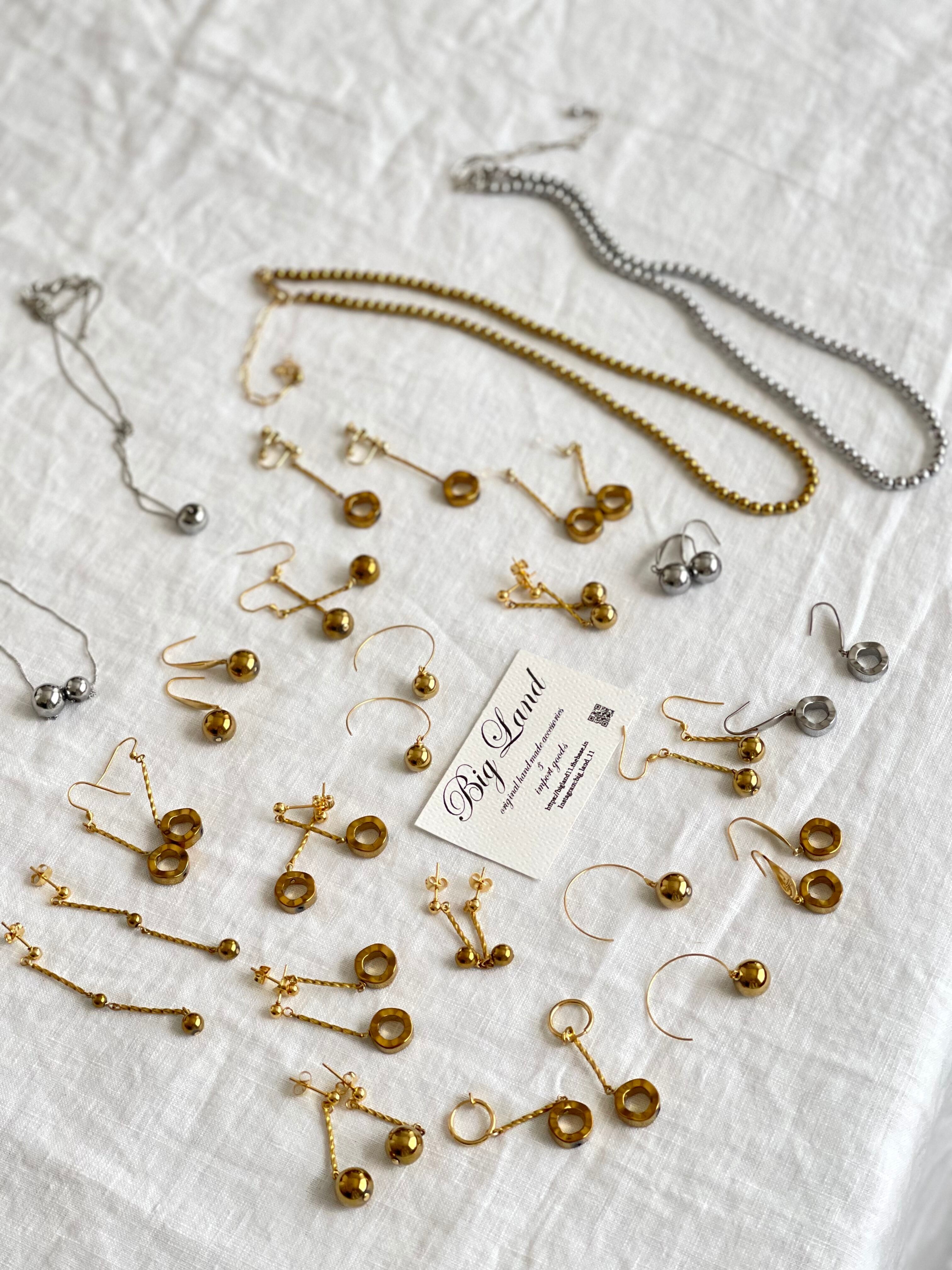 シンプルなお洋服にさりげないサイズ感がワンポイントになり、夏はリネン、冬はタートルニットと合わせるとこれまた映えそう‼︎