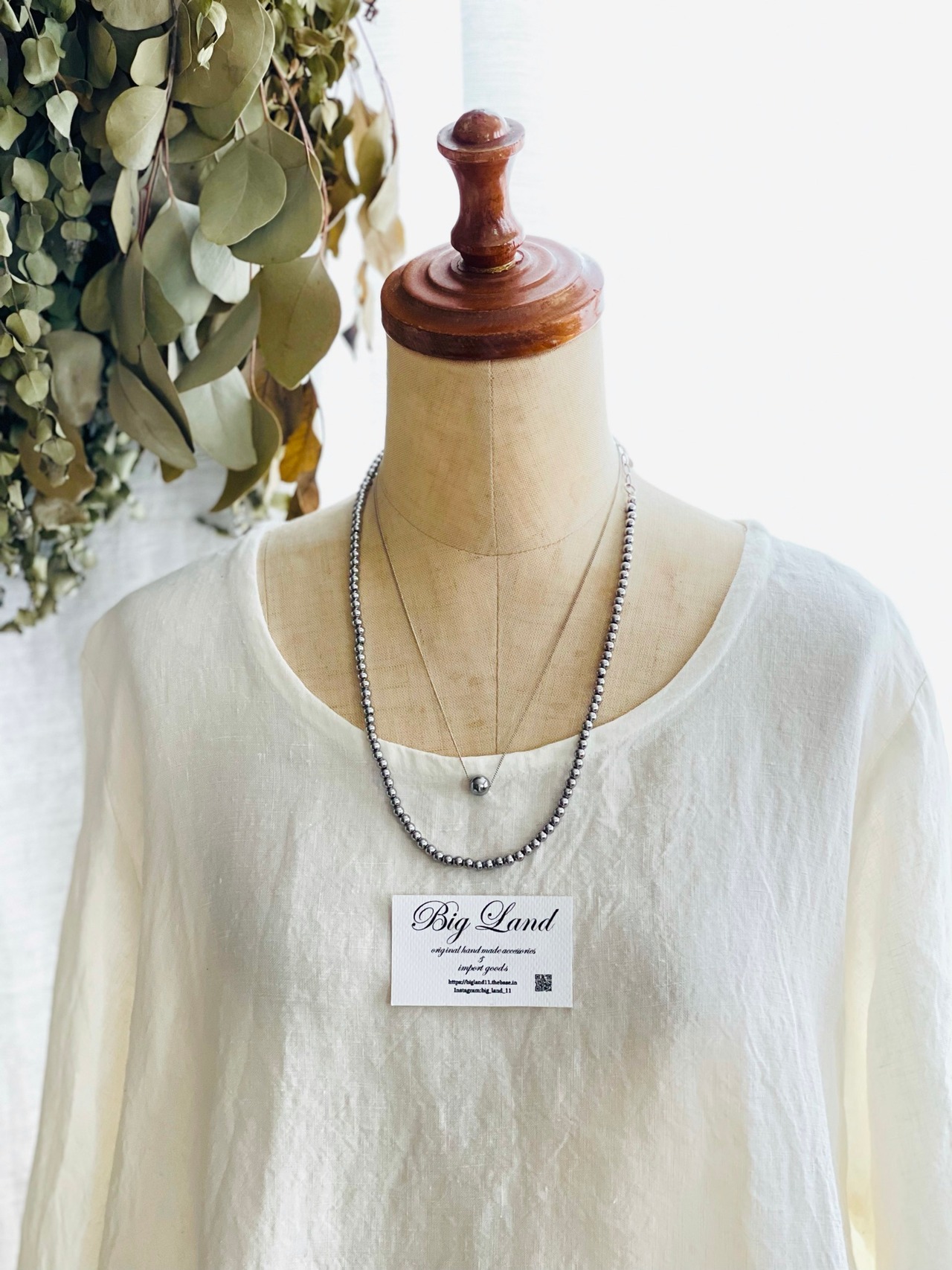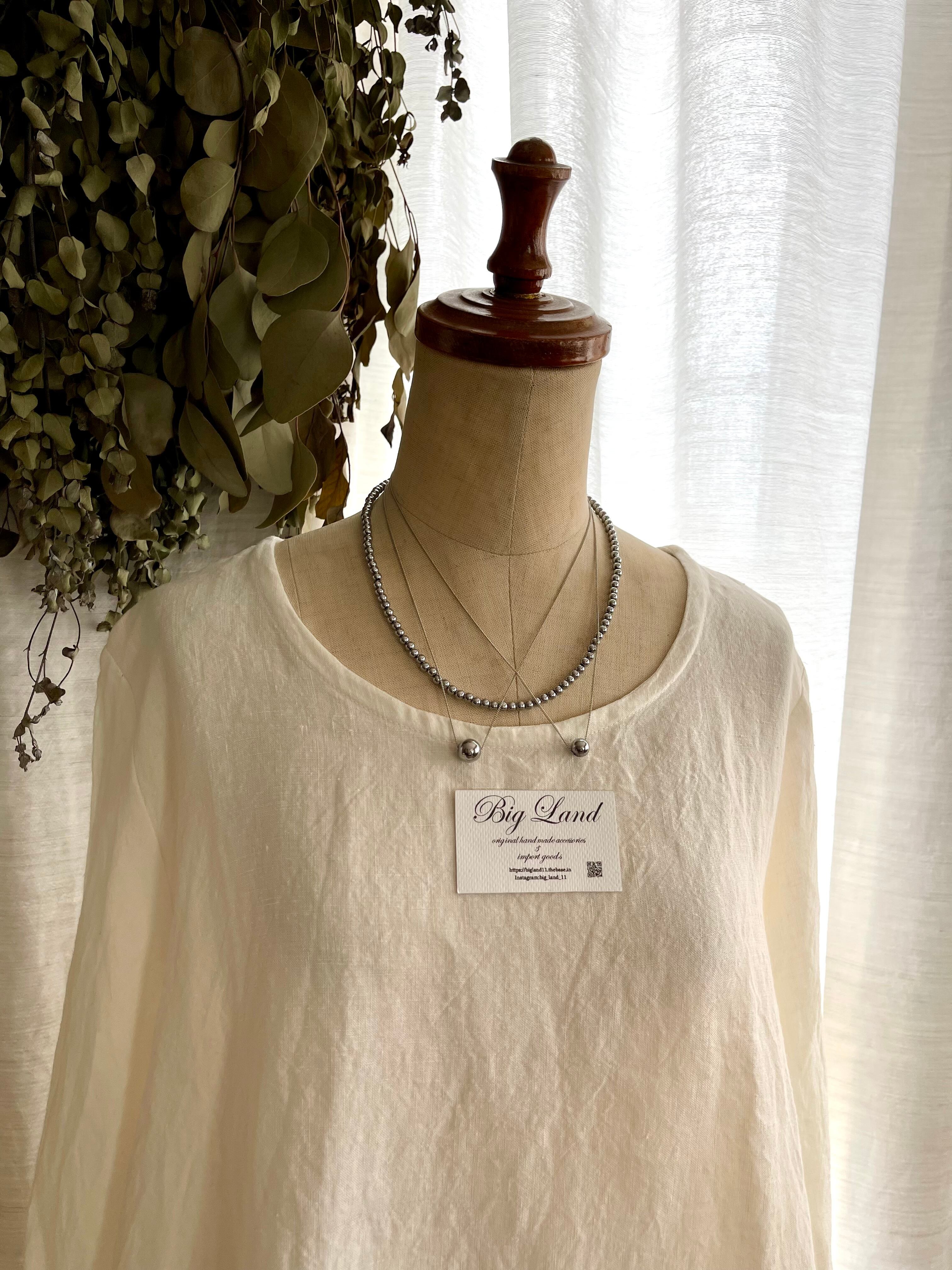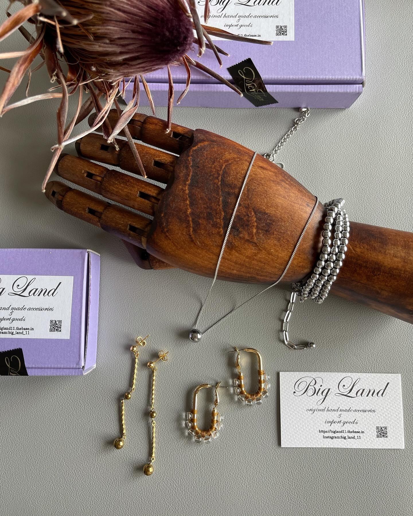 シンプルなお洋服にさりげないサイズ感がワンポイントになり、夏はリネン、冬はタートルニットと合わせるとこれまた映えそうで冬のシルバーも新鮮‼︎