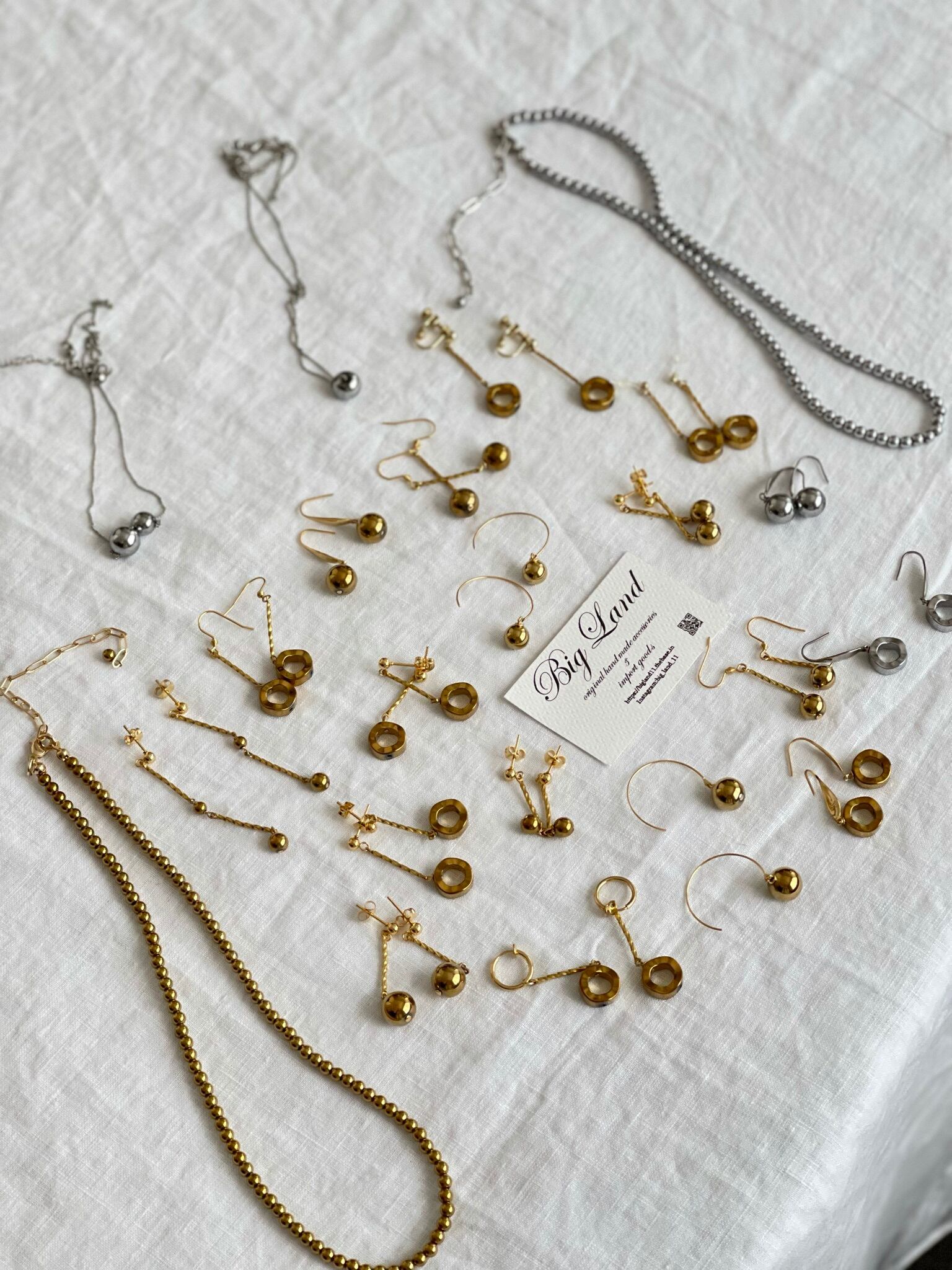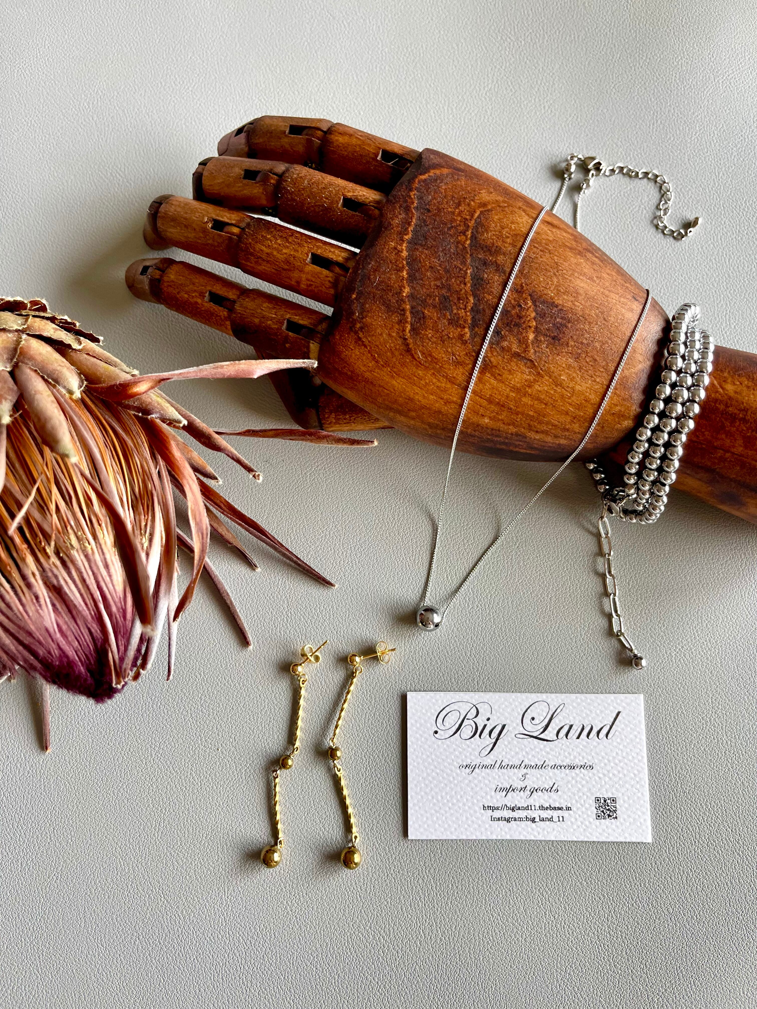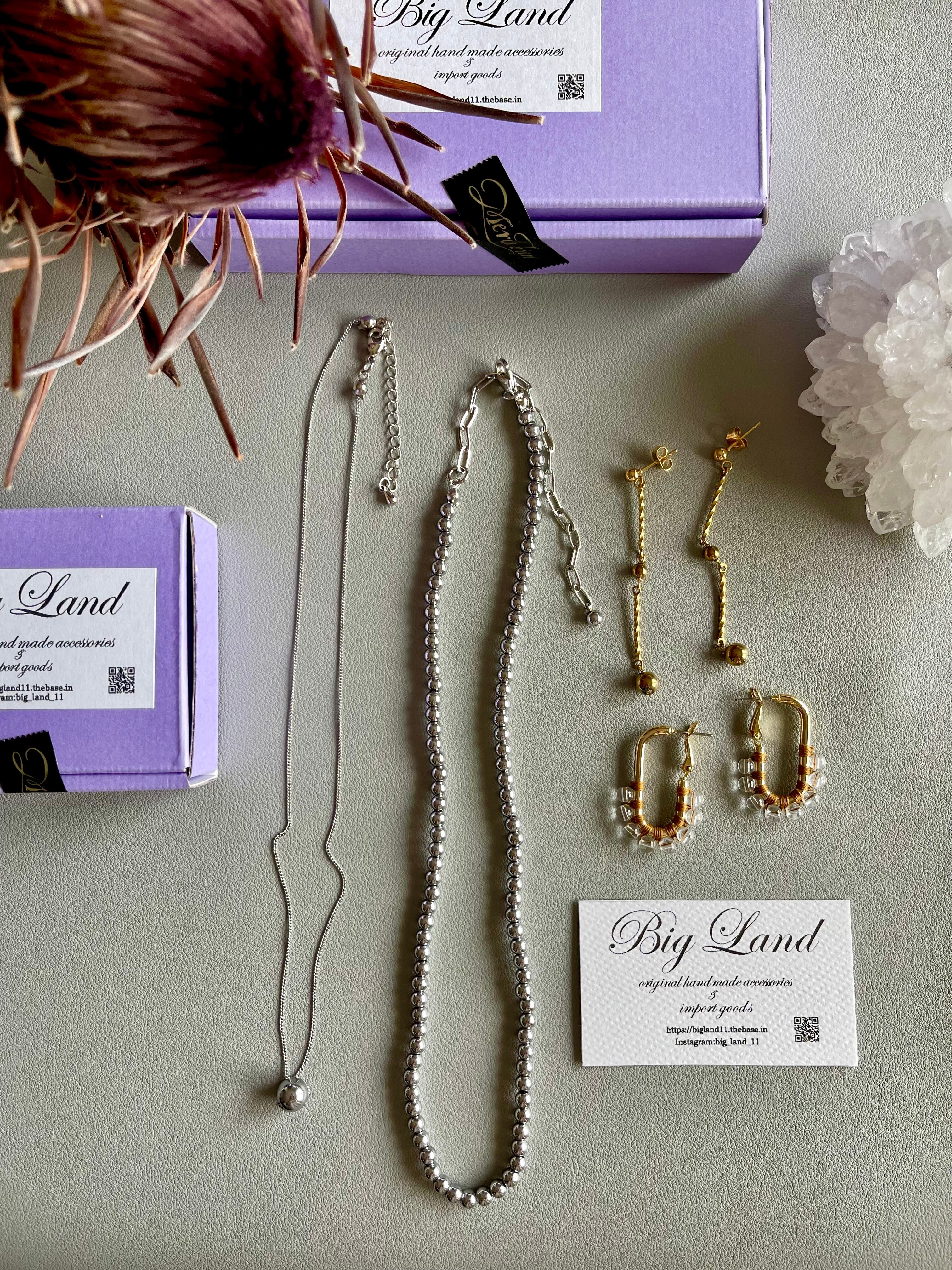 シンプルなお洋服にさりげないサイズ感がワンポイントになり、夏はリネン、冬はタートルニットと合わせるとこれまた映えそうで冬のシルバーも新鮮‼︎