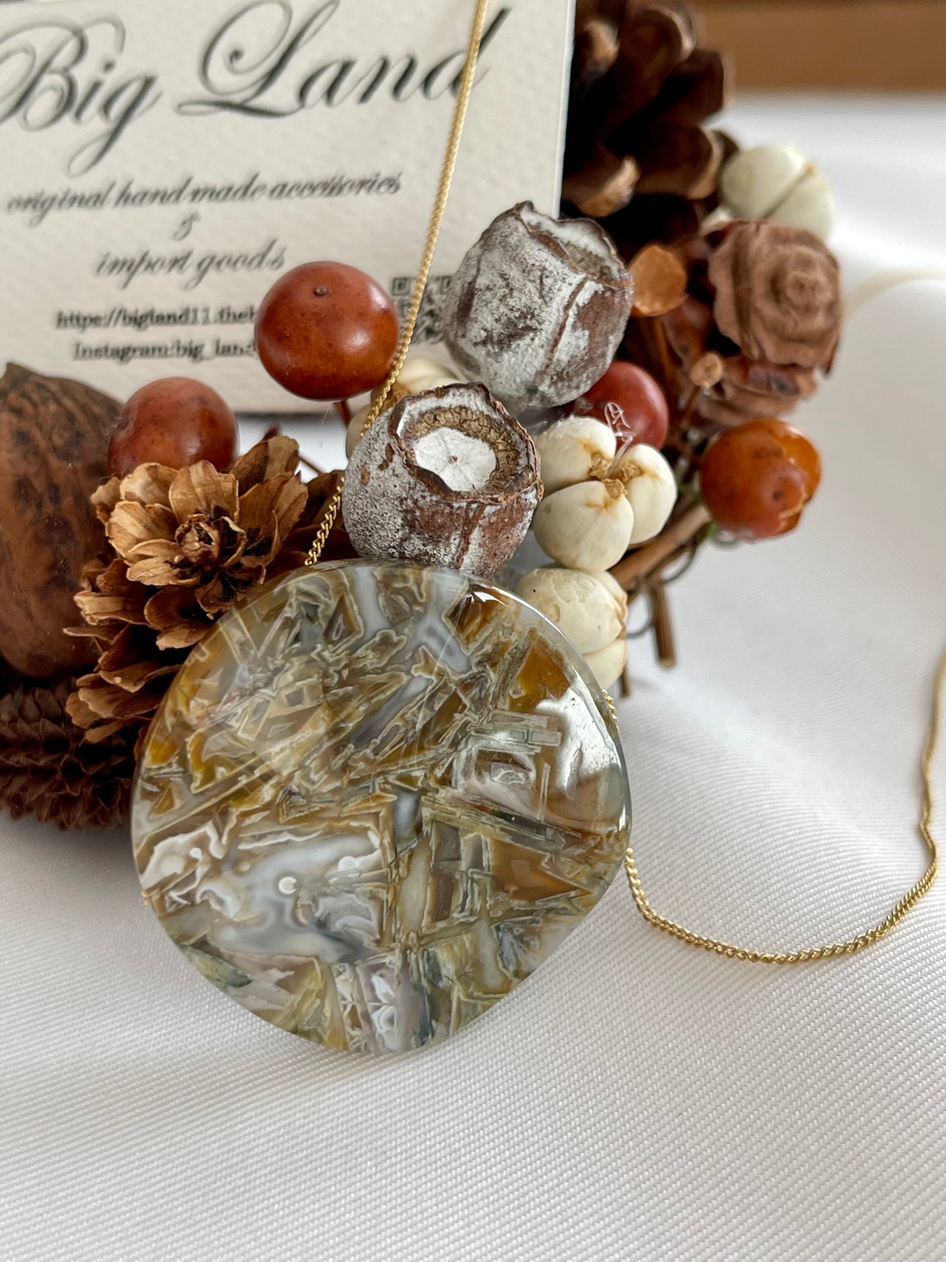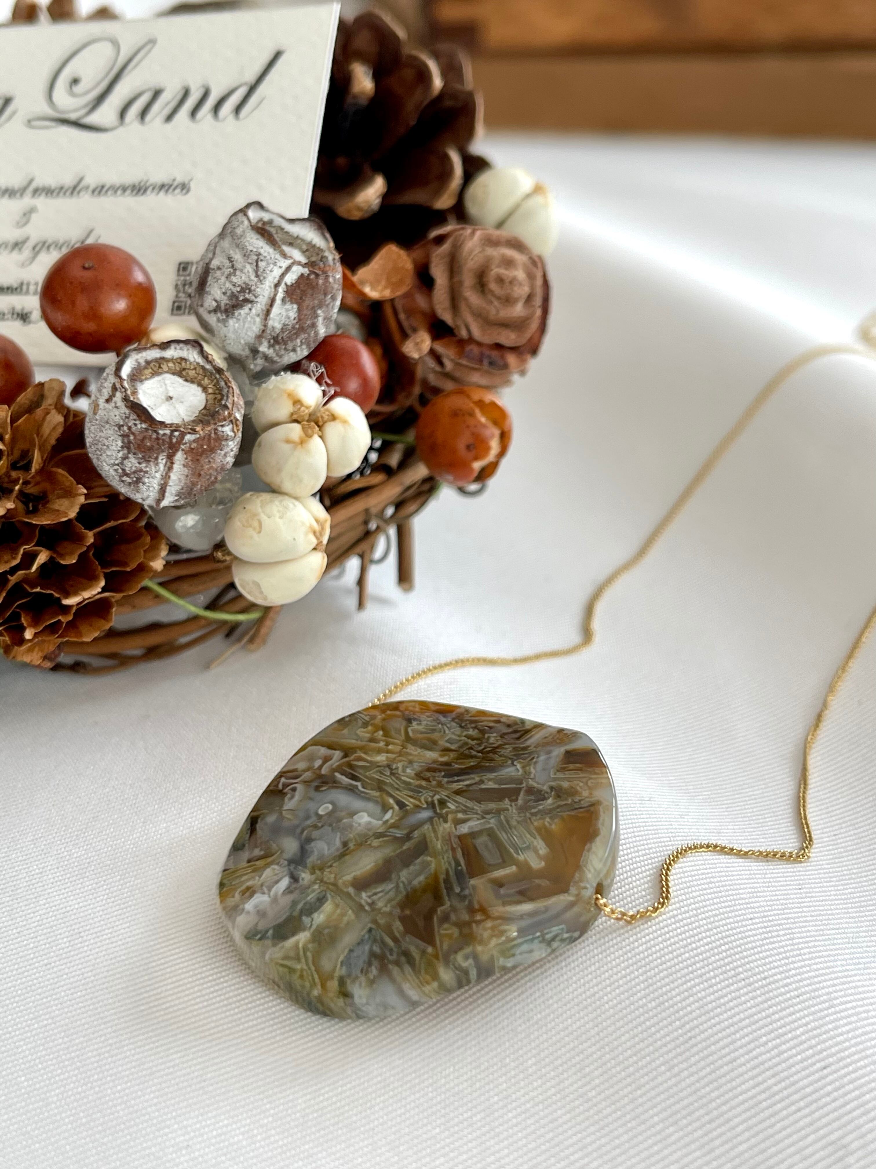 雰囲気ある波打った様な珍しいカタチの天然石瑪瑙をシンプルに大人っぽく上品なロングネックレスに仕上げました✨