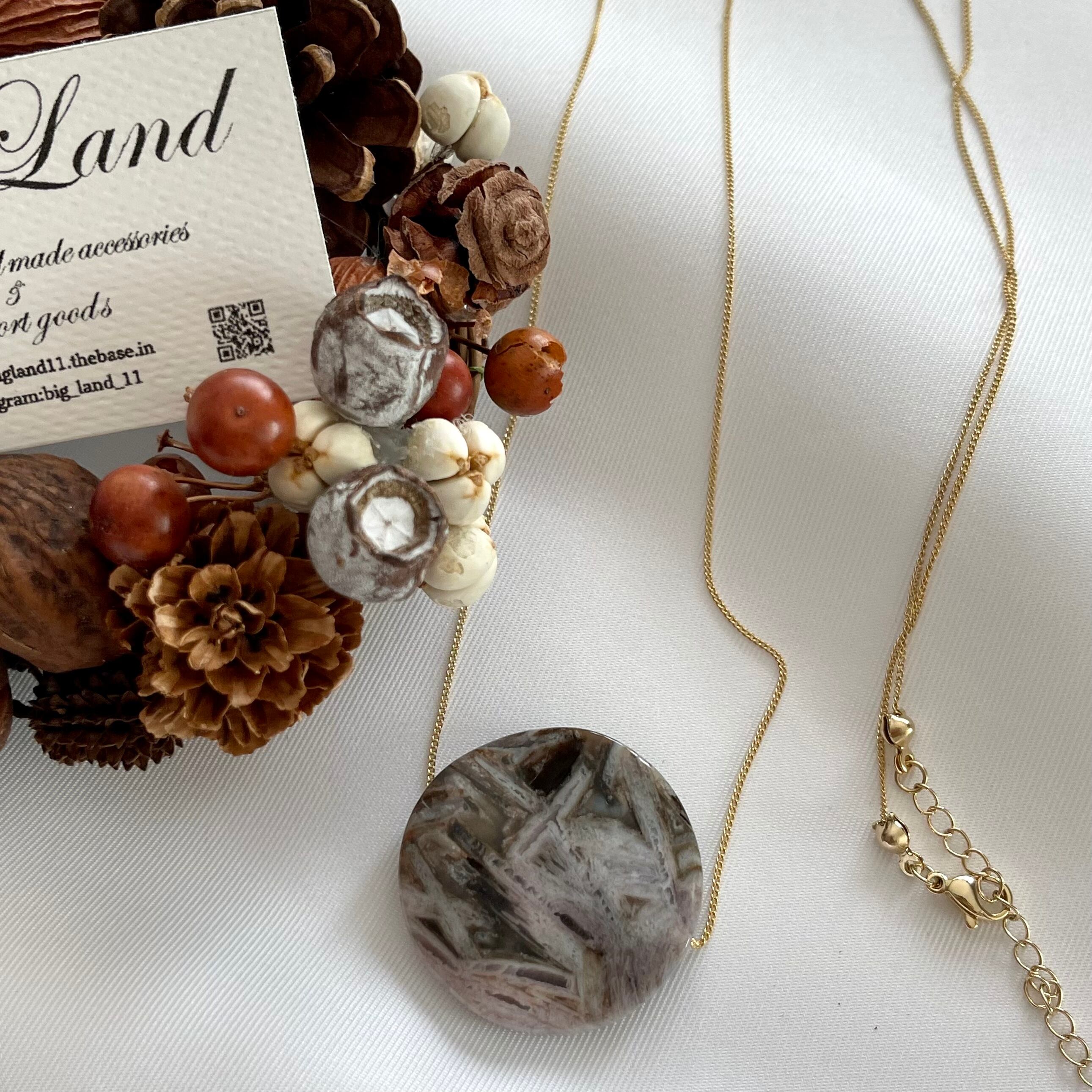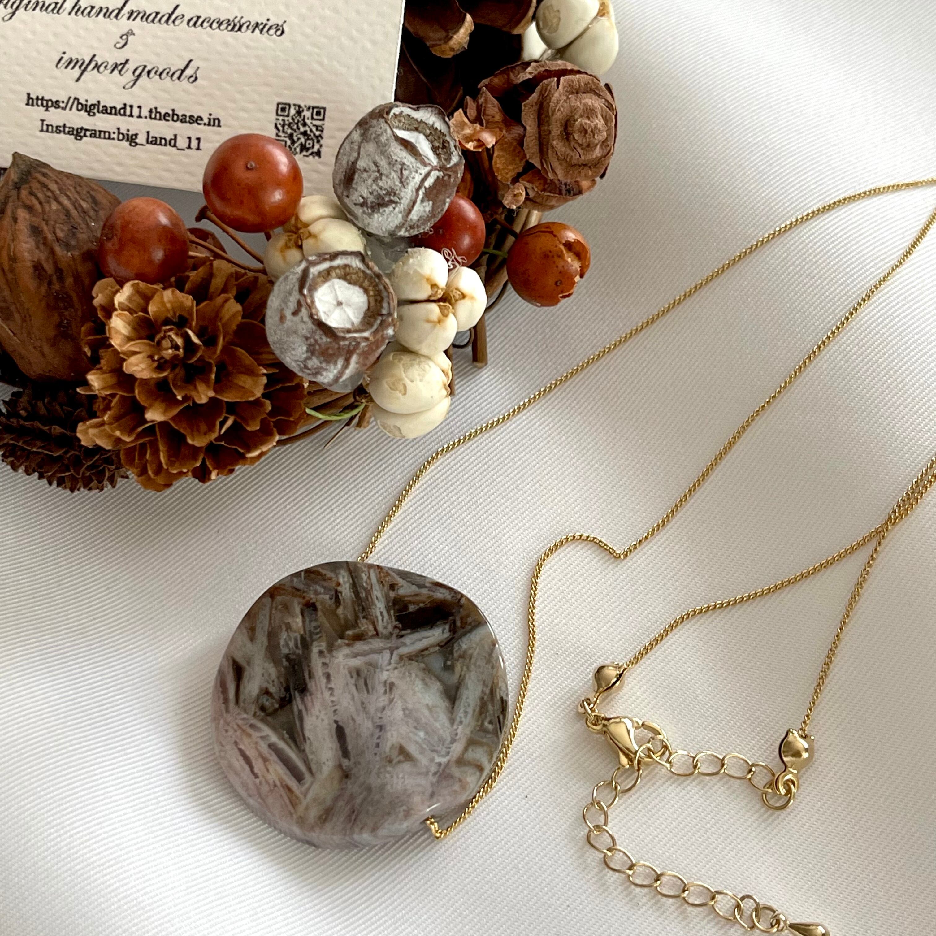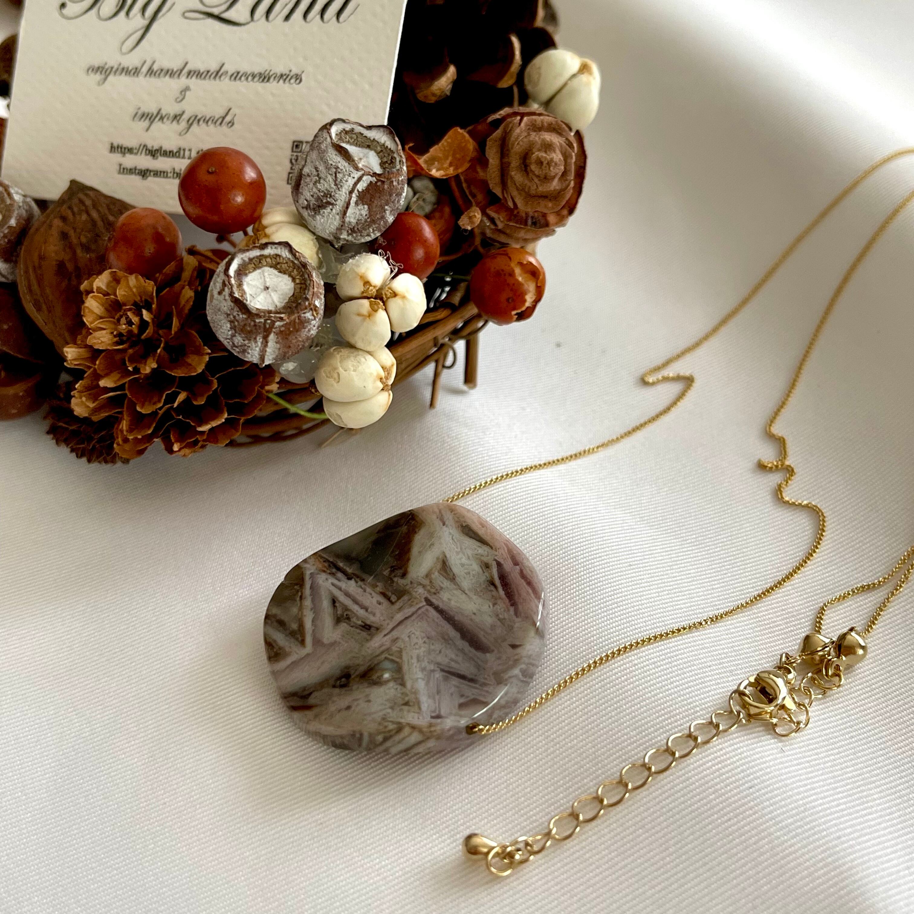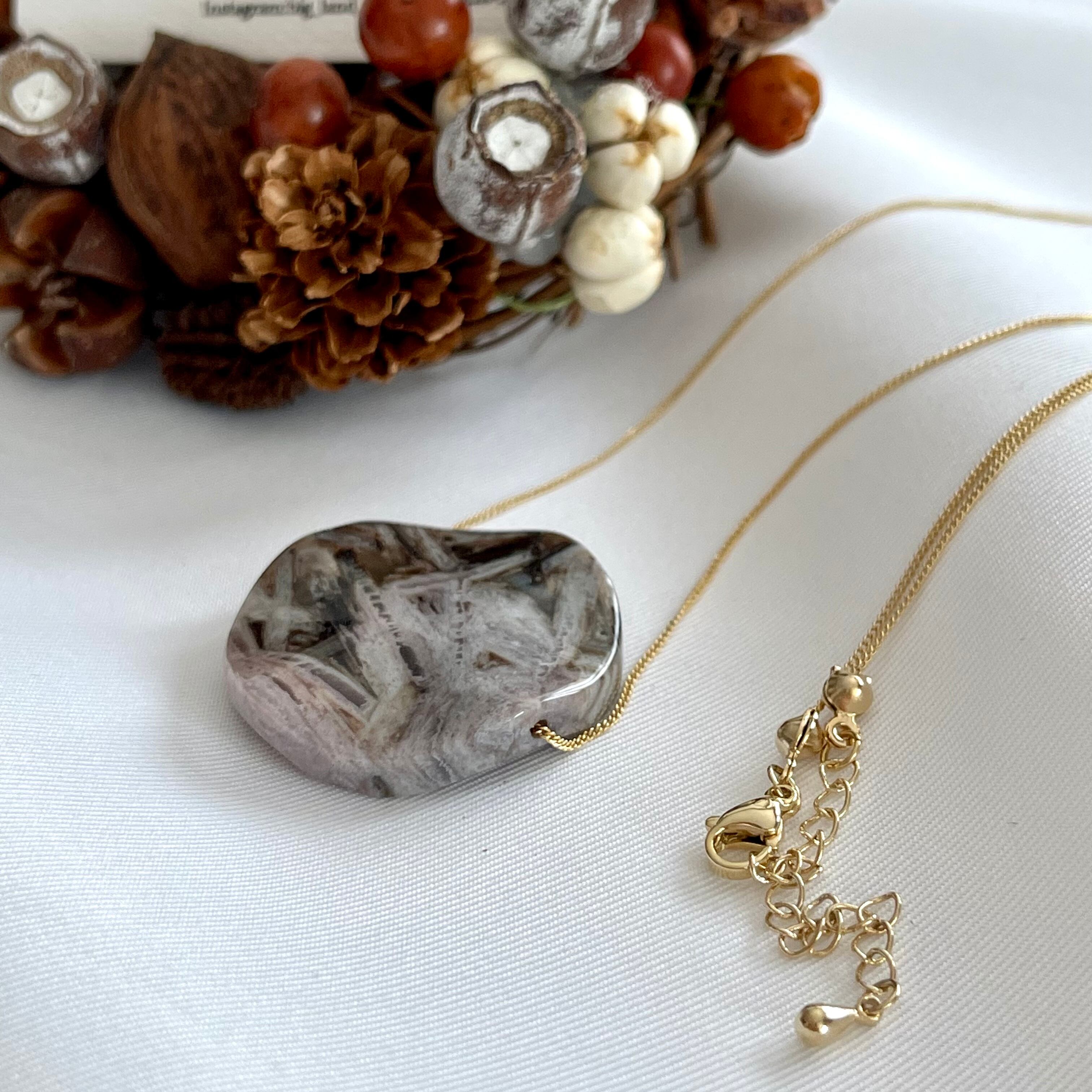 雰囲気ある波打った様な珍しいカタチの天然石瑪瑙をシンプルに大人っぽく上品なロングネックレスに仕上げました✨