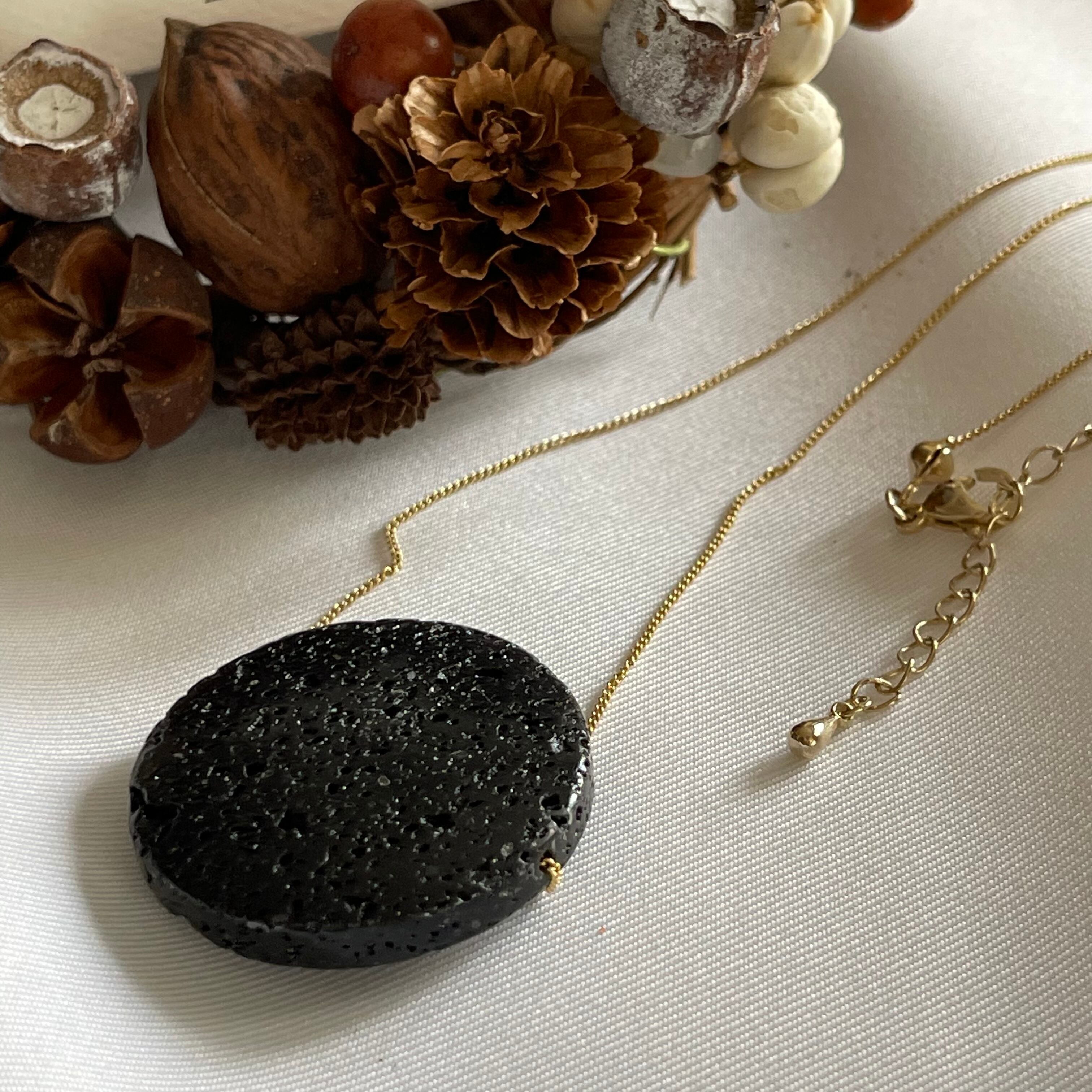 個性が光る溶岩石をシンプルに大人っぽく上品なロングネックレスに仕上げました✨