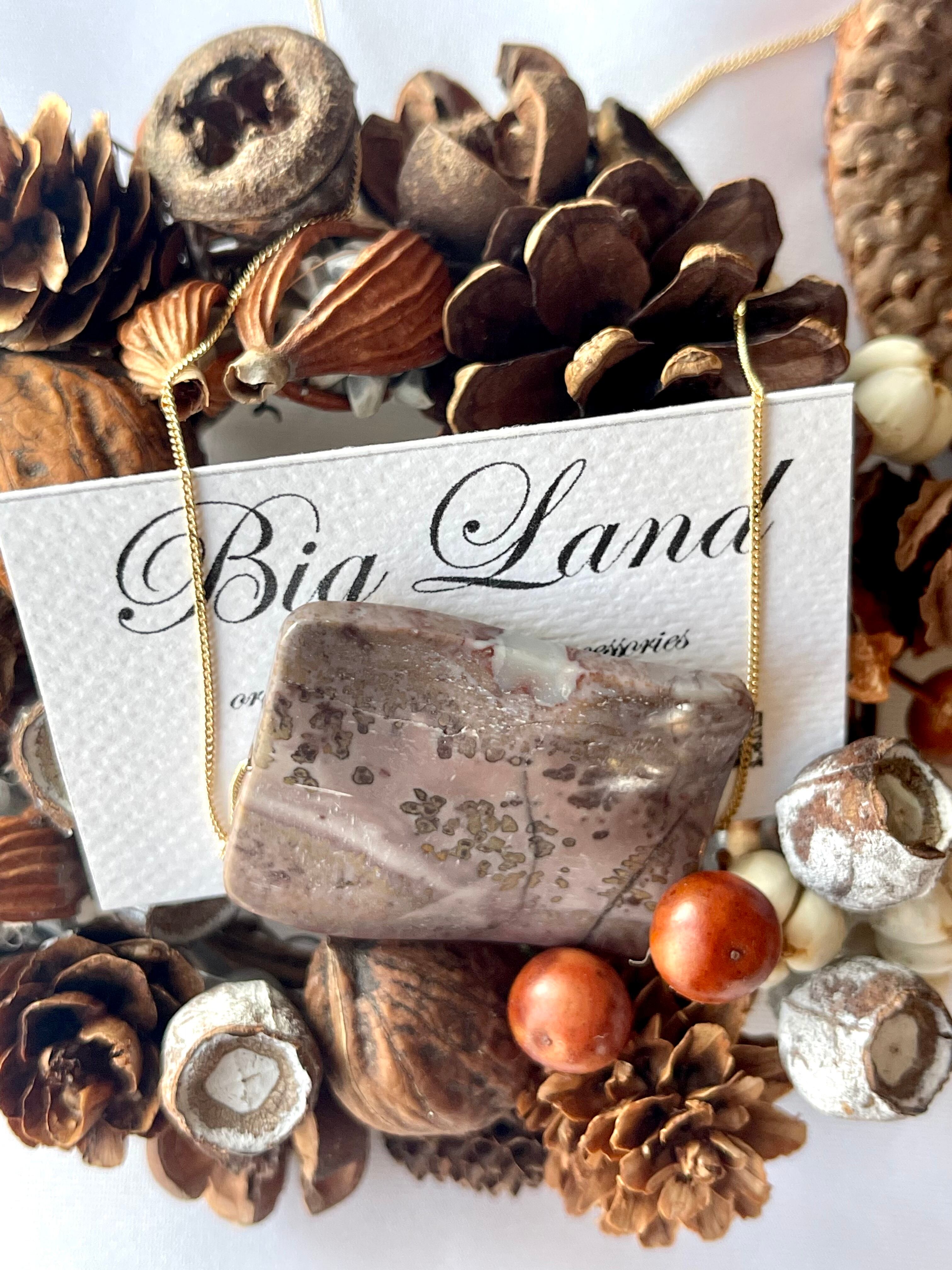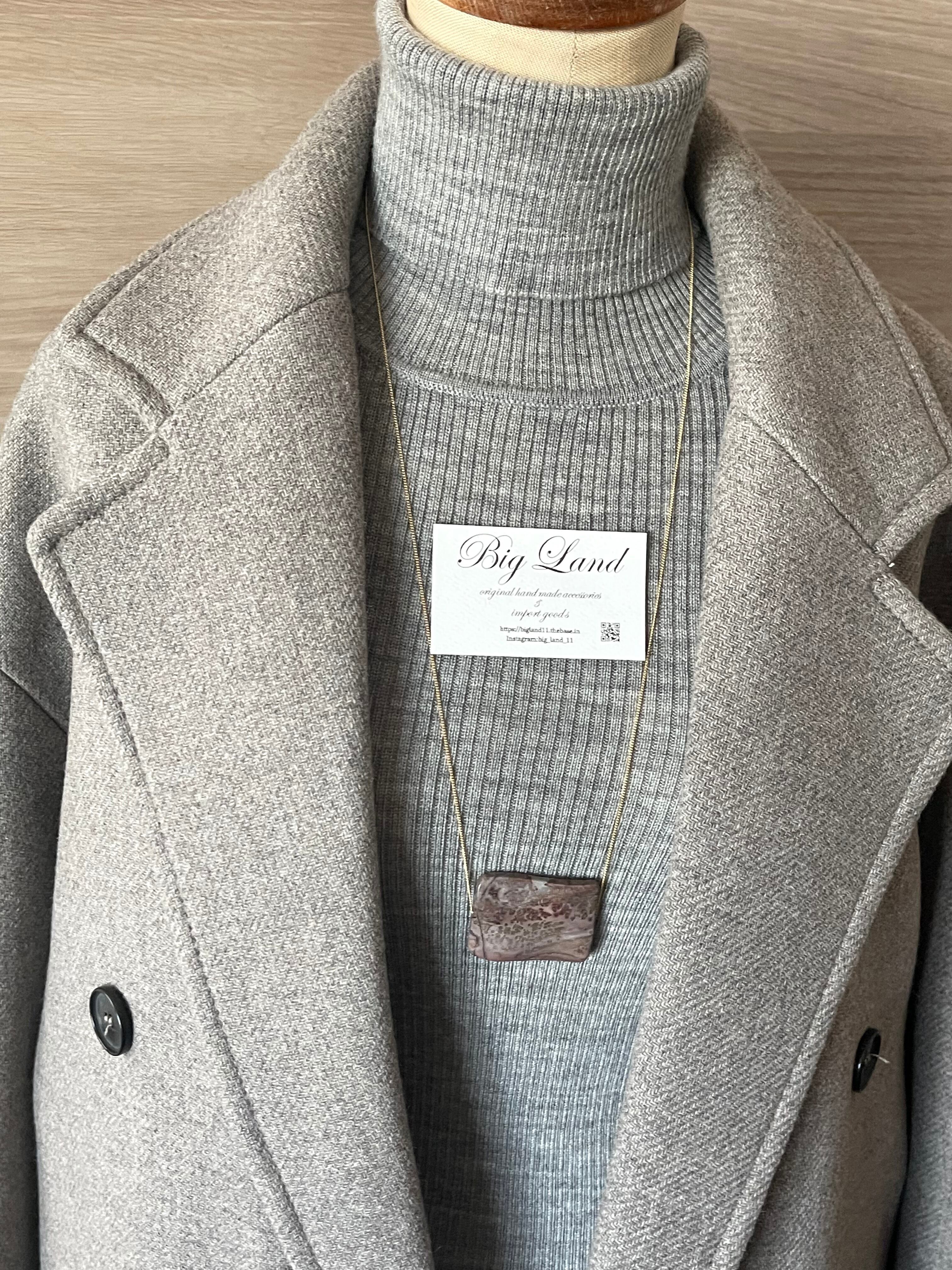 雰囲気ある波打った様な珍しいカタチの天然石をシンプルに大人っぽく上品なロングネックレスに仕上げました✨