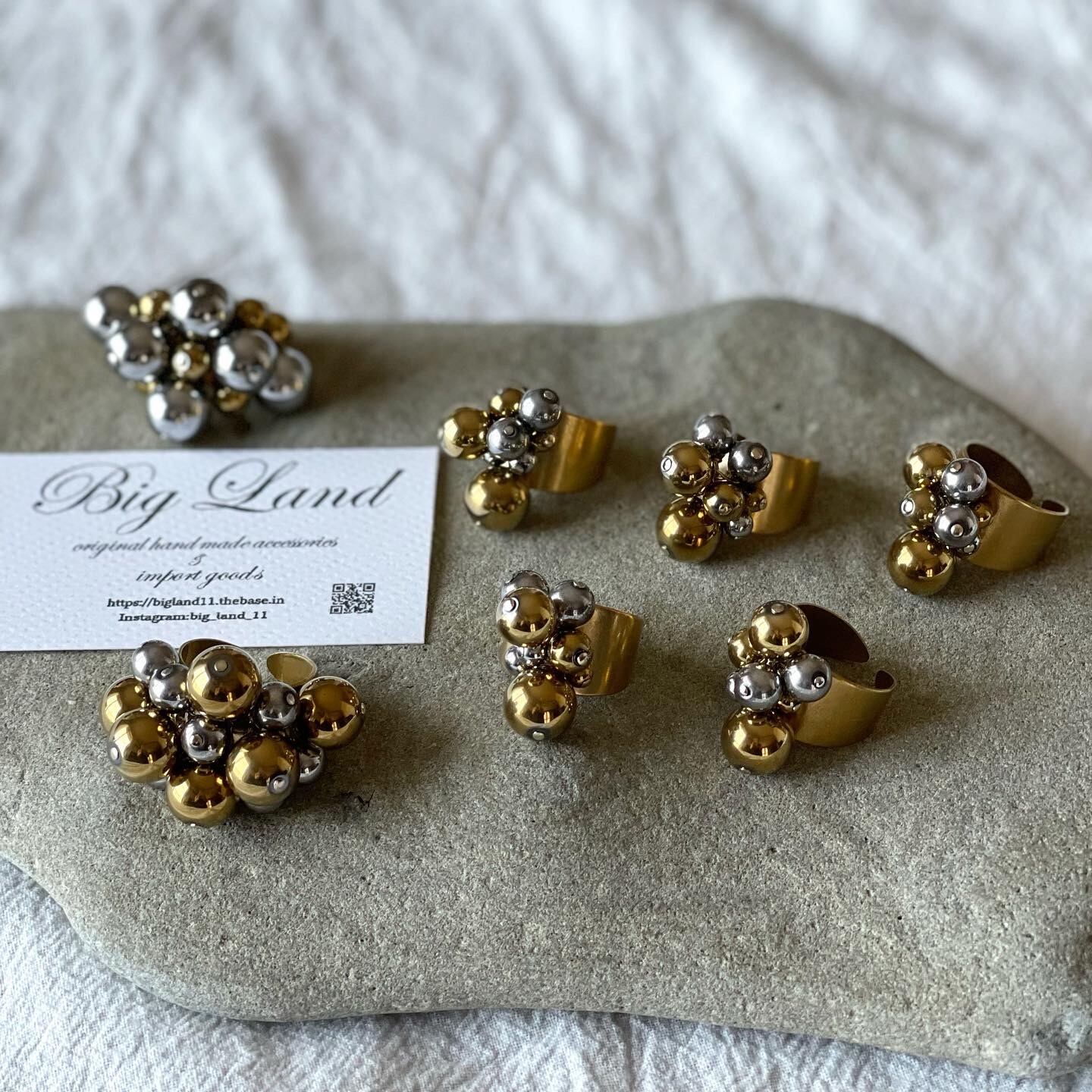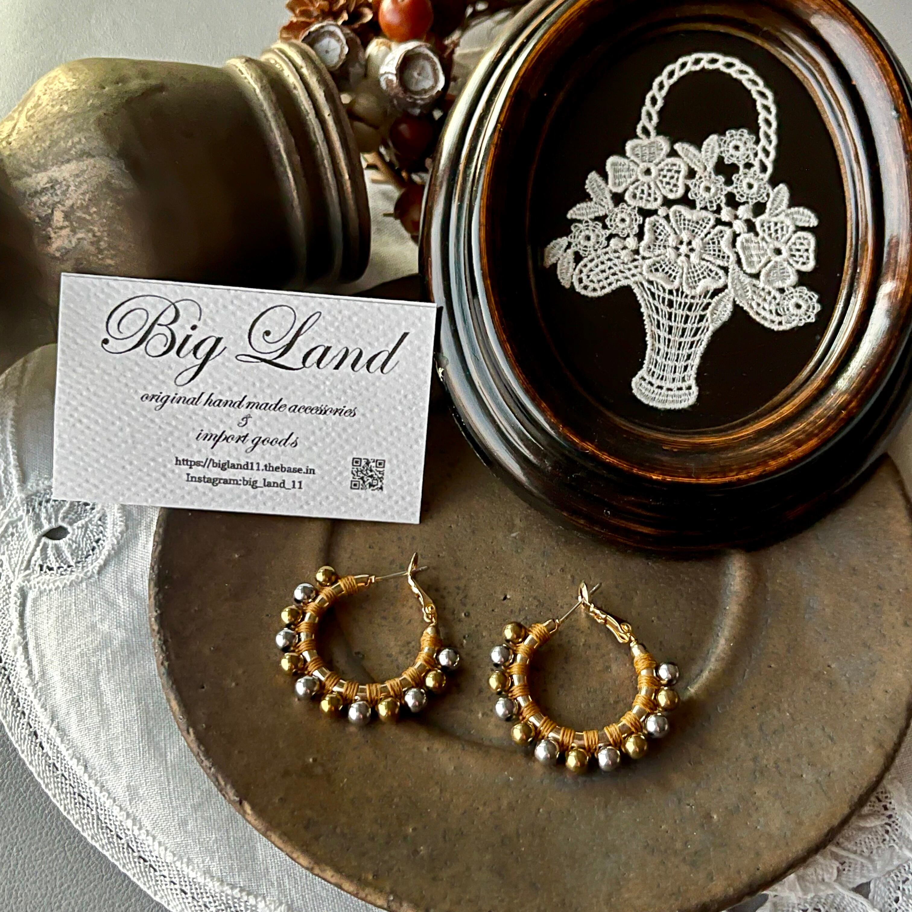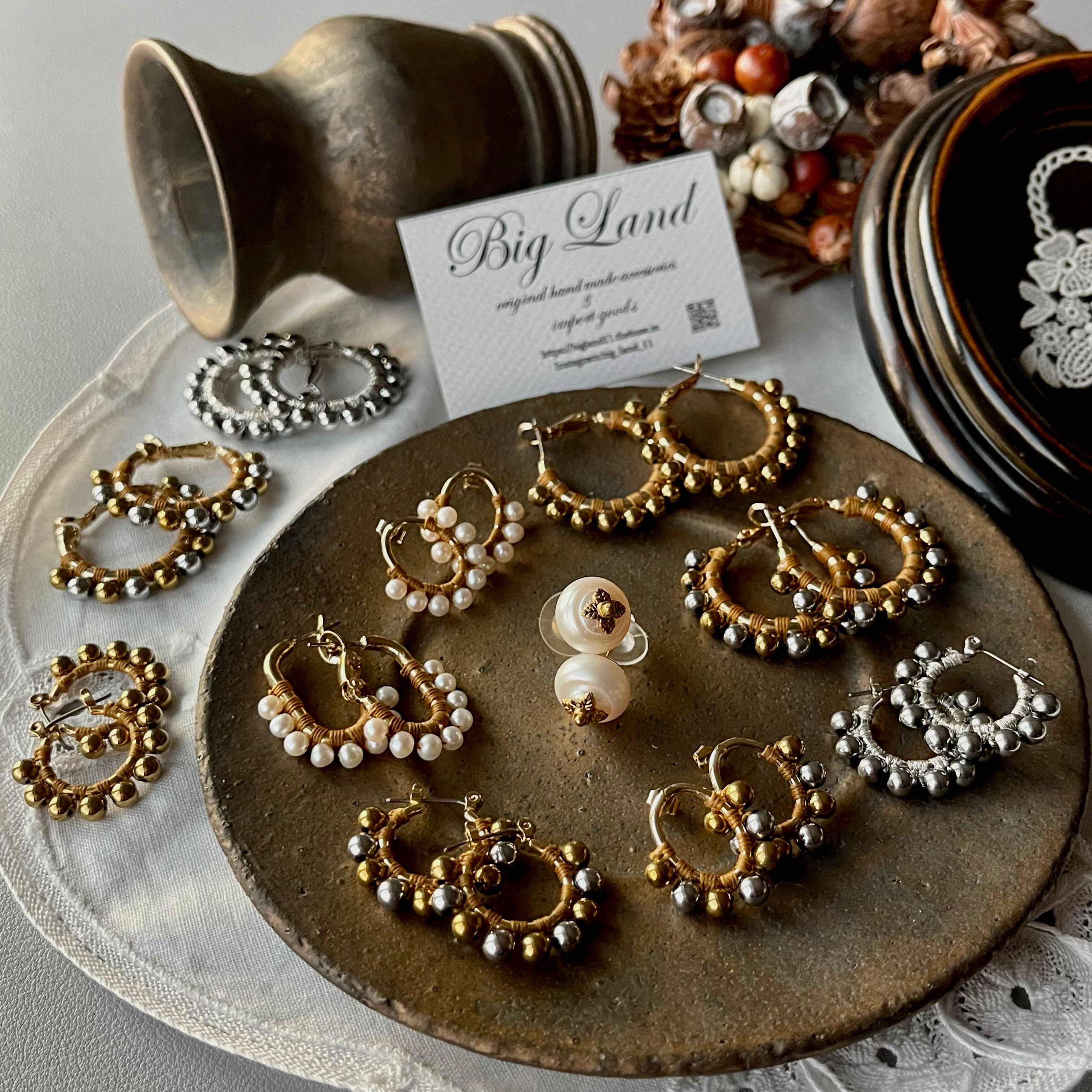 コンビカラーで仕上げた事により、シルバー&ゴールド両方のお色のアクセとコーデが可能なのでオシャレの幅が広がり一粒一粒手間をかけて編んでます