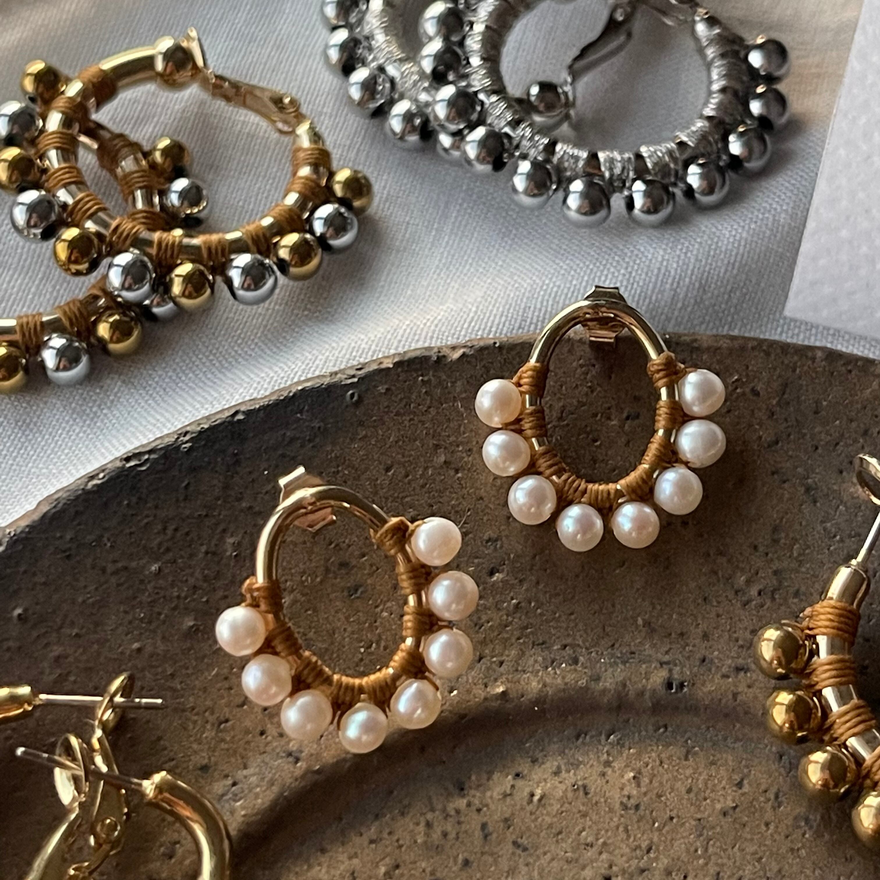 卒入学式シーズンや、普段使いに何かと合わせ易い定番パールでクラッシック&レトロなお洋服との相性も良いです
