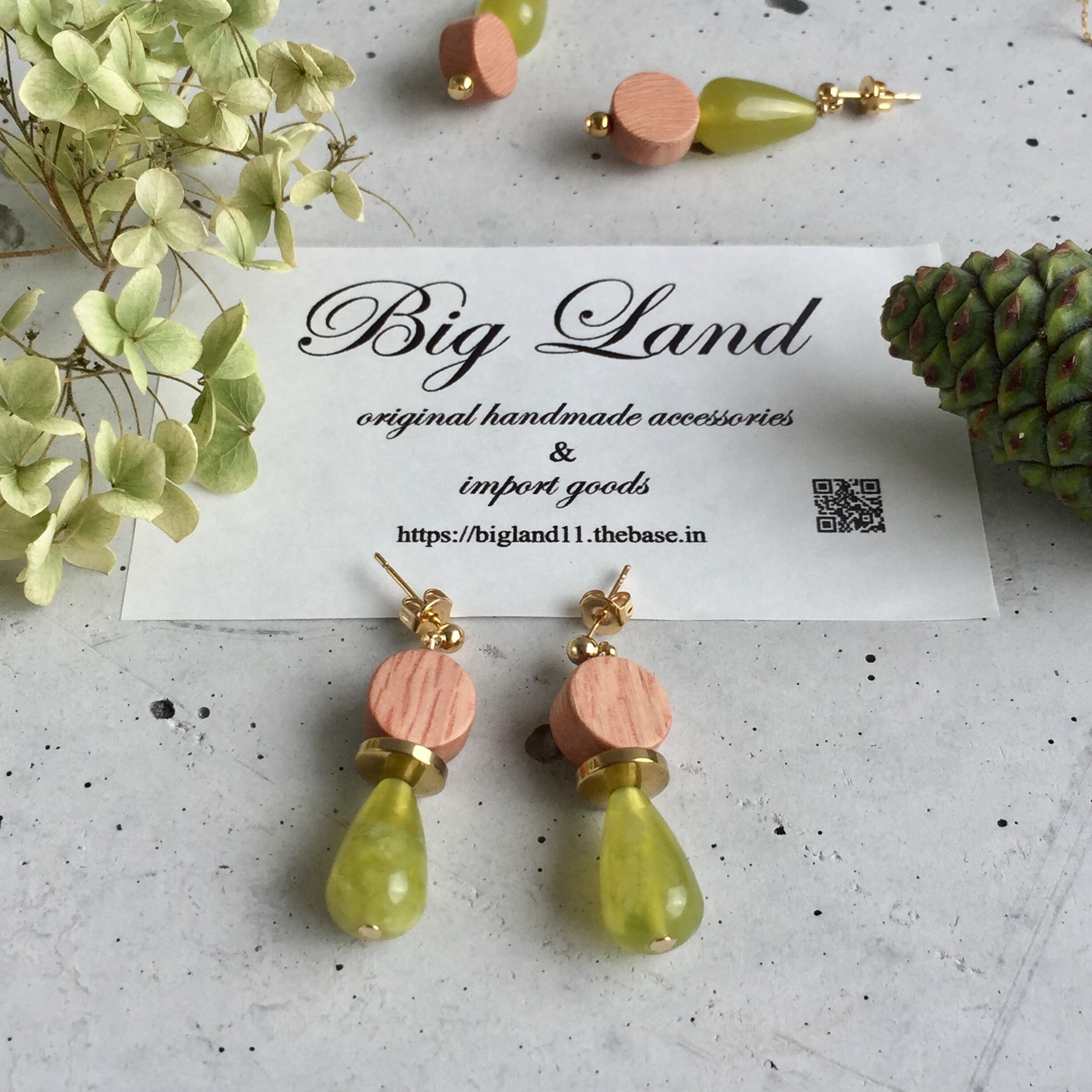 黄緑色の明るい天然石とウッドの組み合わせが北欧っぽい雰囲気でハイセンスです✨