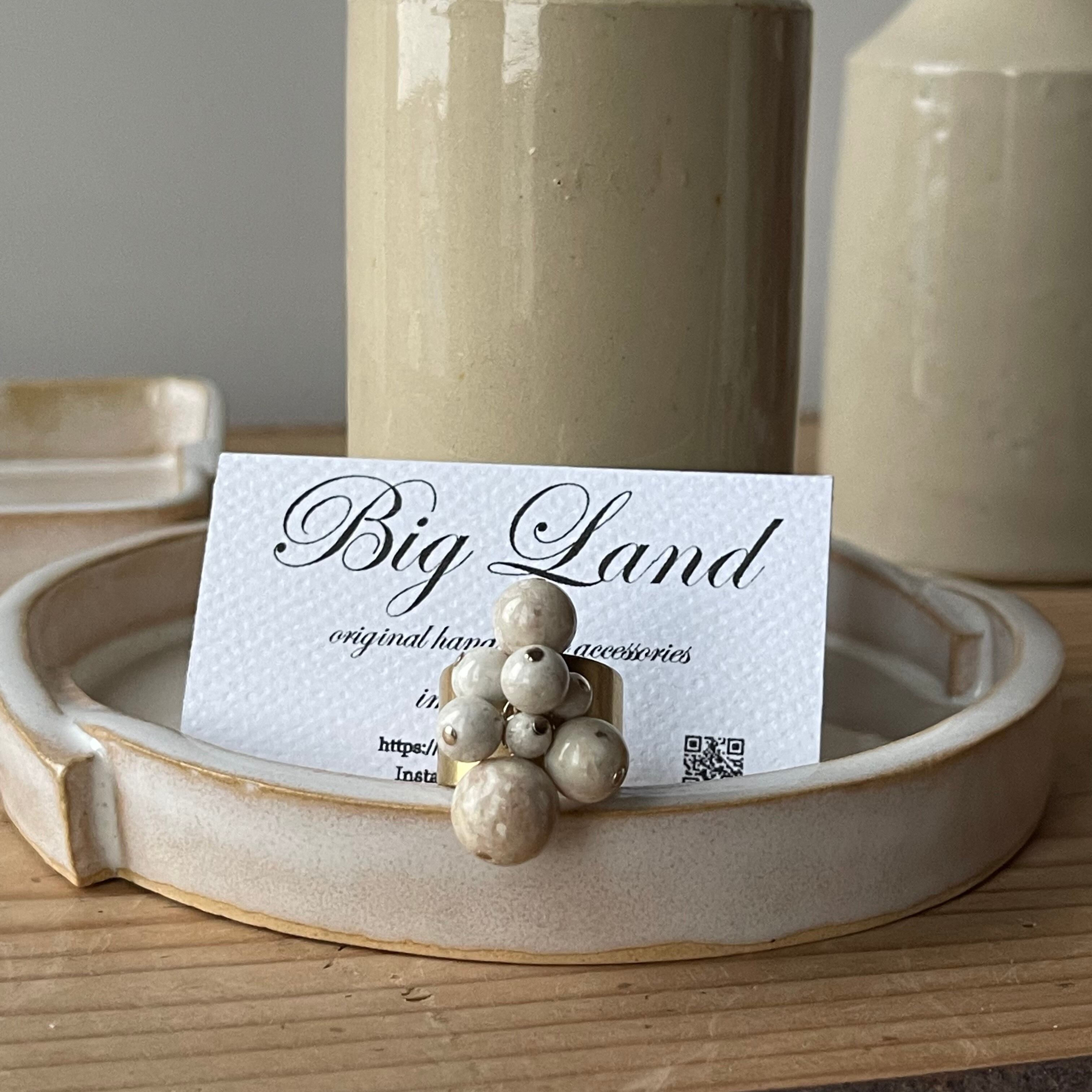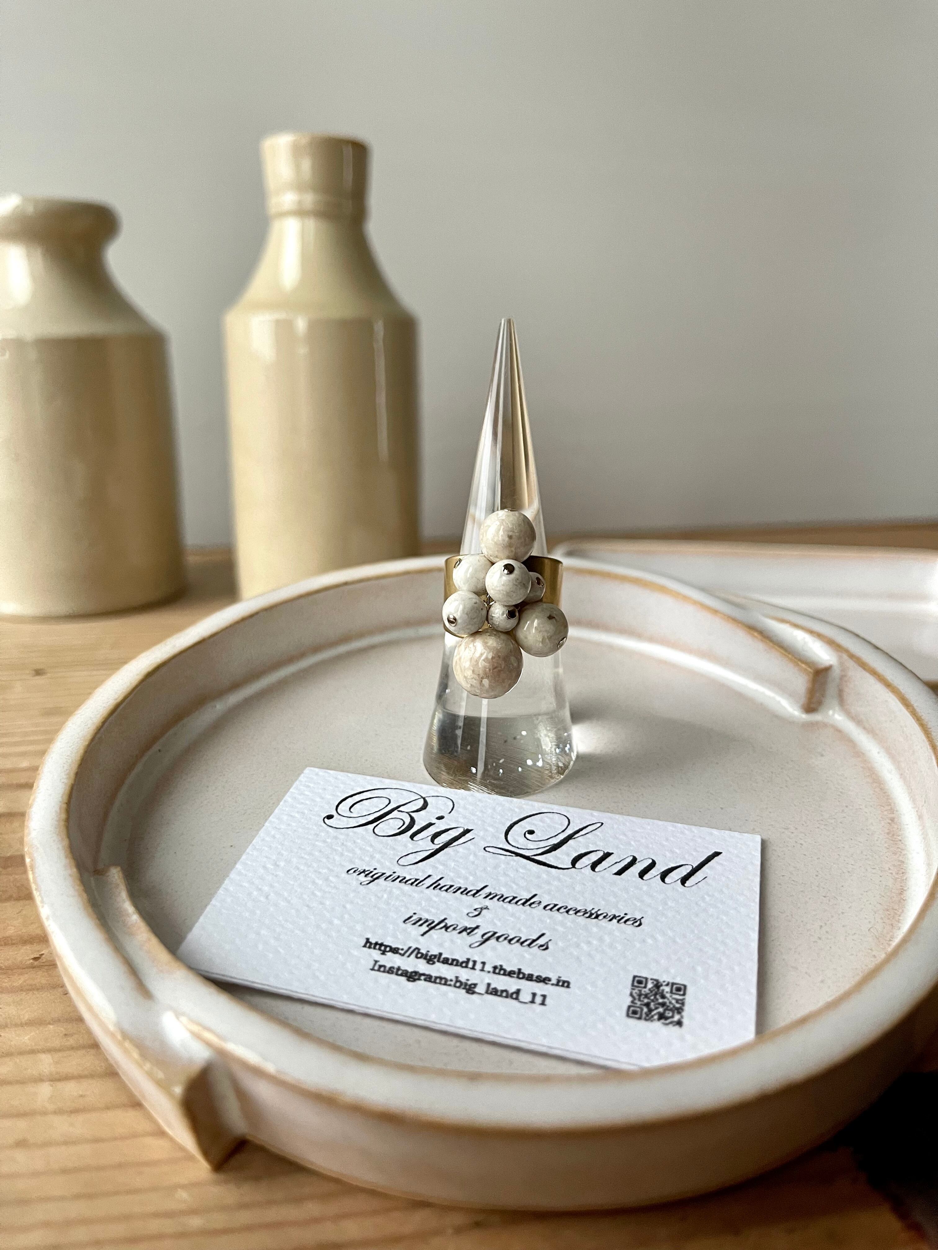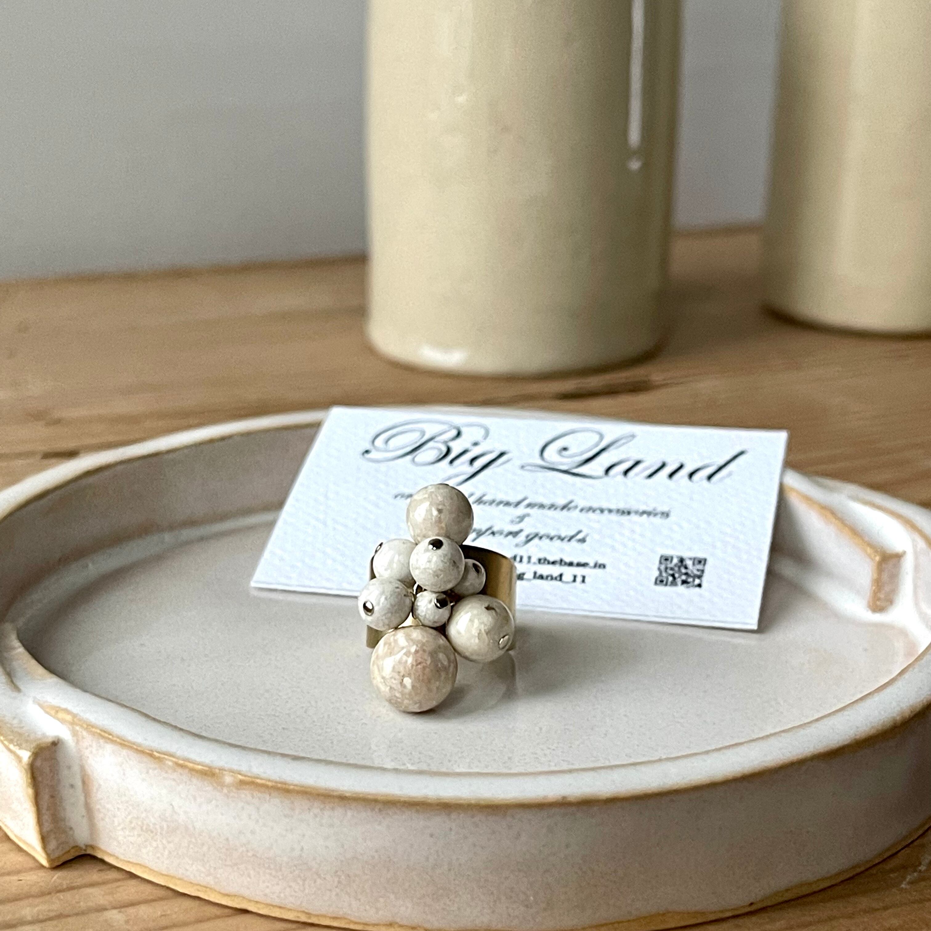 沢山の天然石がゴロゴロとデザイナーズの雰囲気で中指や人差し指に入れ、普段使いに主張し過ぎず肌馴染みも良いので出番が多くなりそう