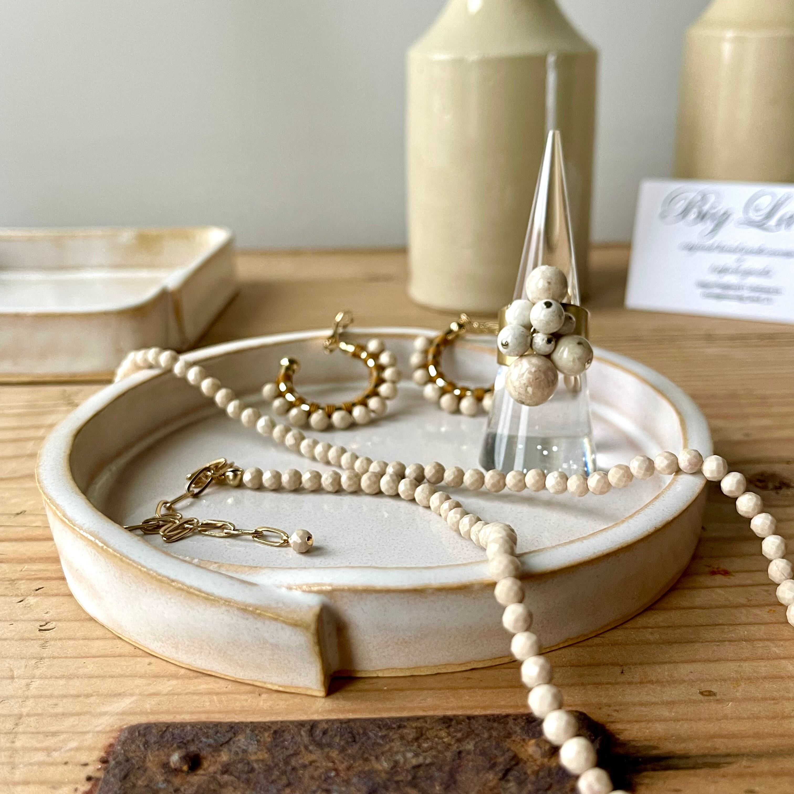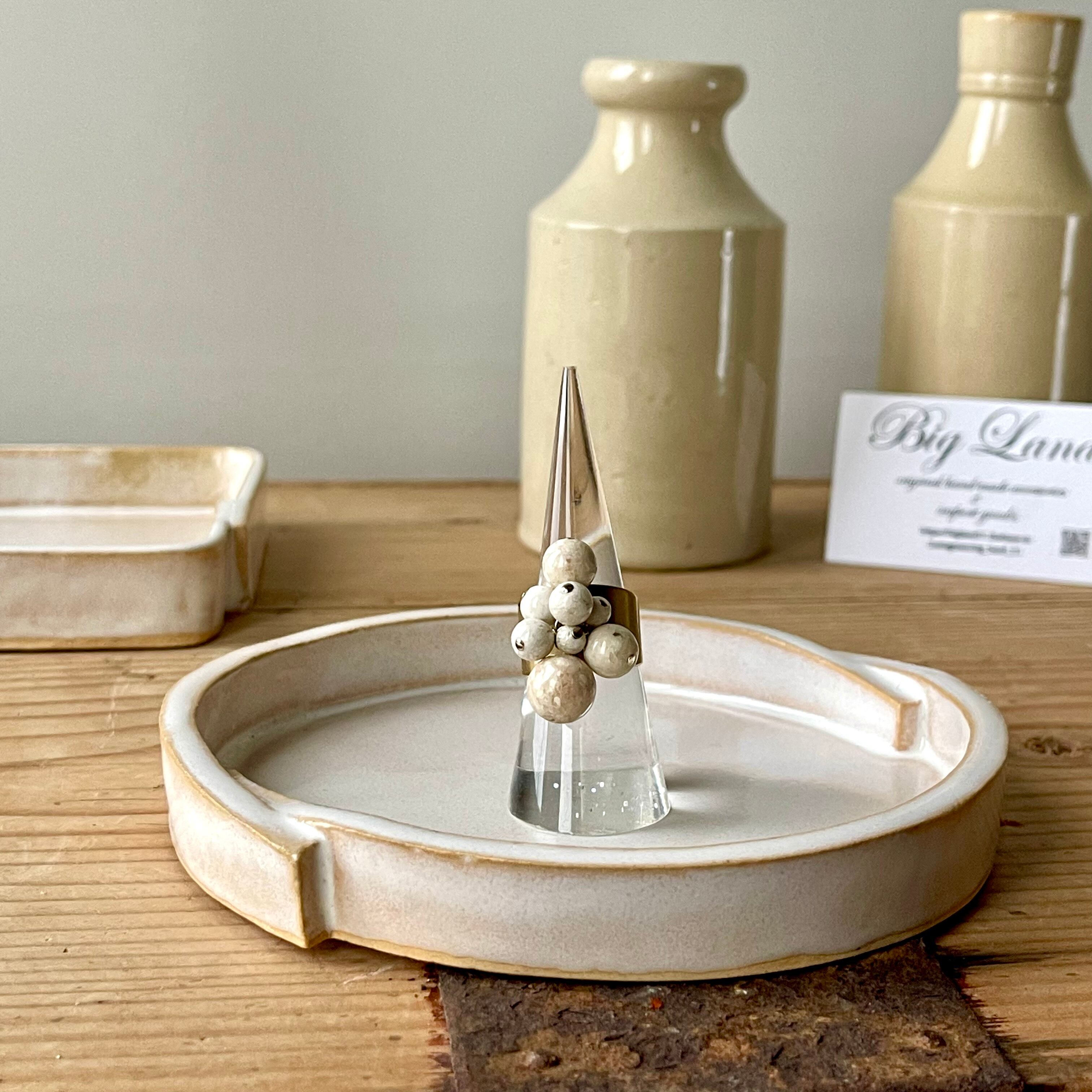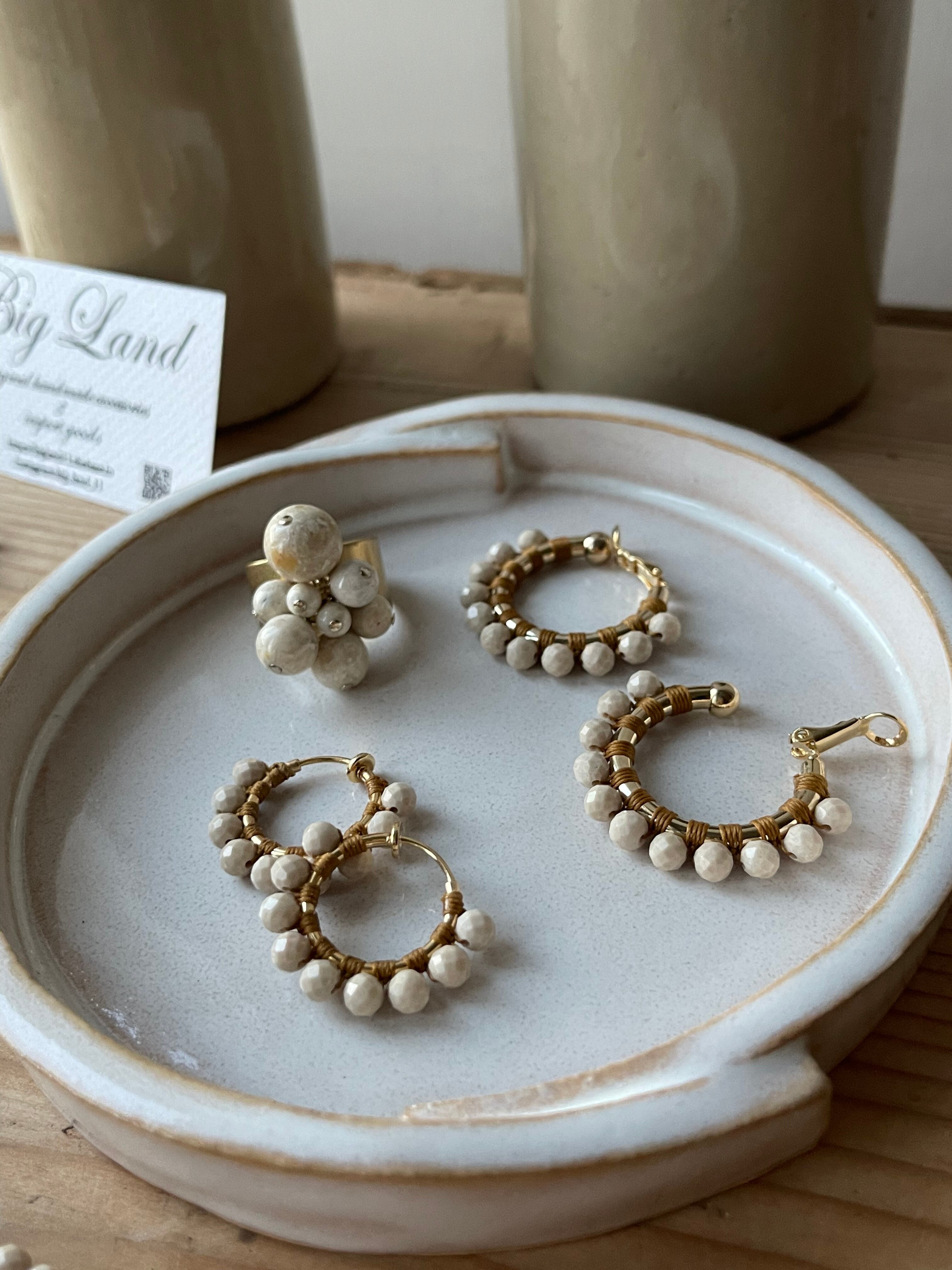 沢山の天然石がゴロゴロとデザイナーズの雰囲気で中指や人差し指に入れ、普段使いに主張し過ぎず肌馴染みも良いので出番が多くなりそう