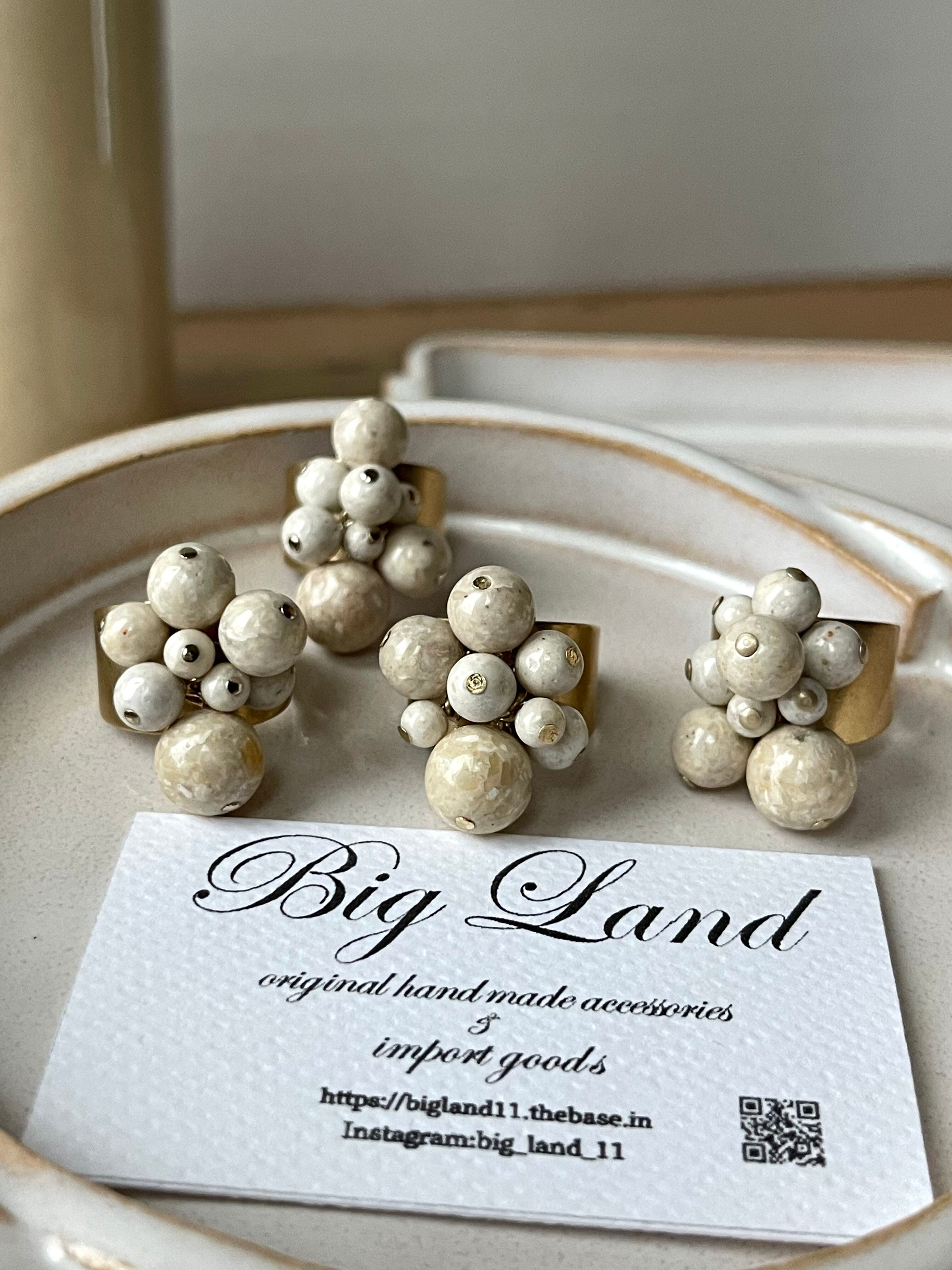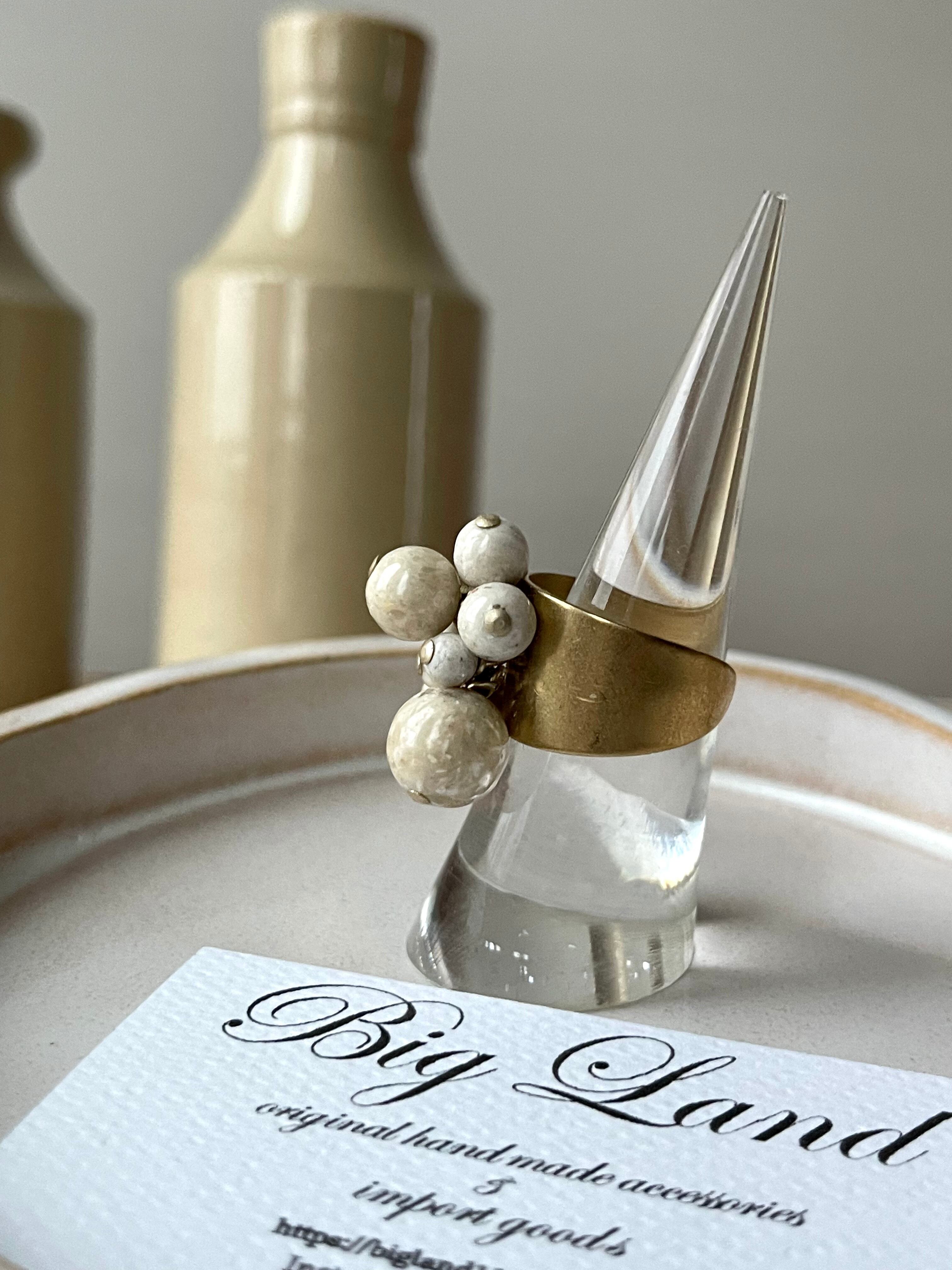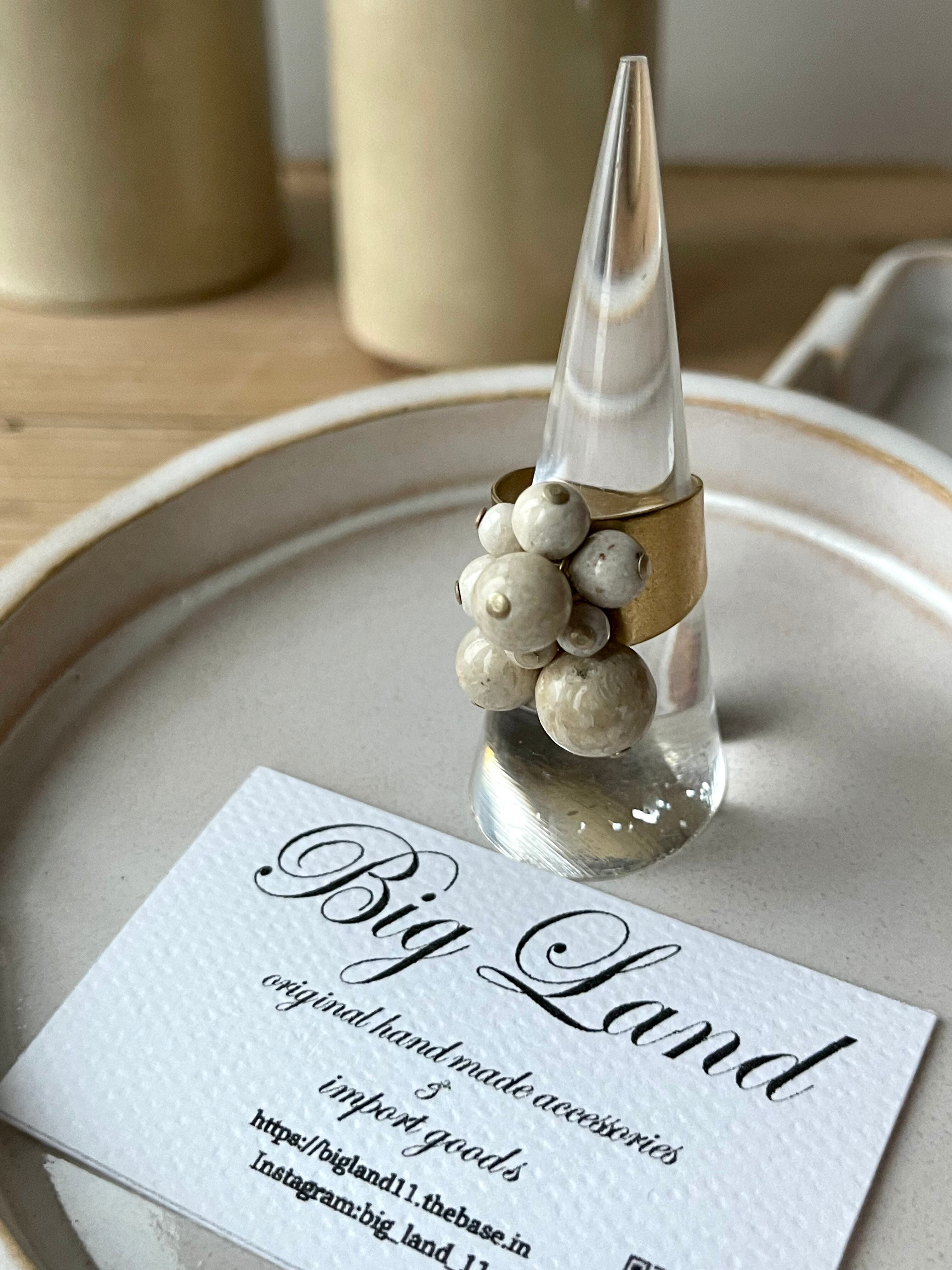 沢山の天然石がゴロゴロとデザイナーズの雰囲気で中指や人差し指に入れ、普段使いに主張し過ぎず肌馴染みも良いので出番が多くなりそう