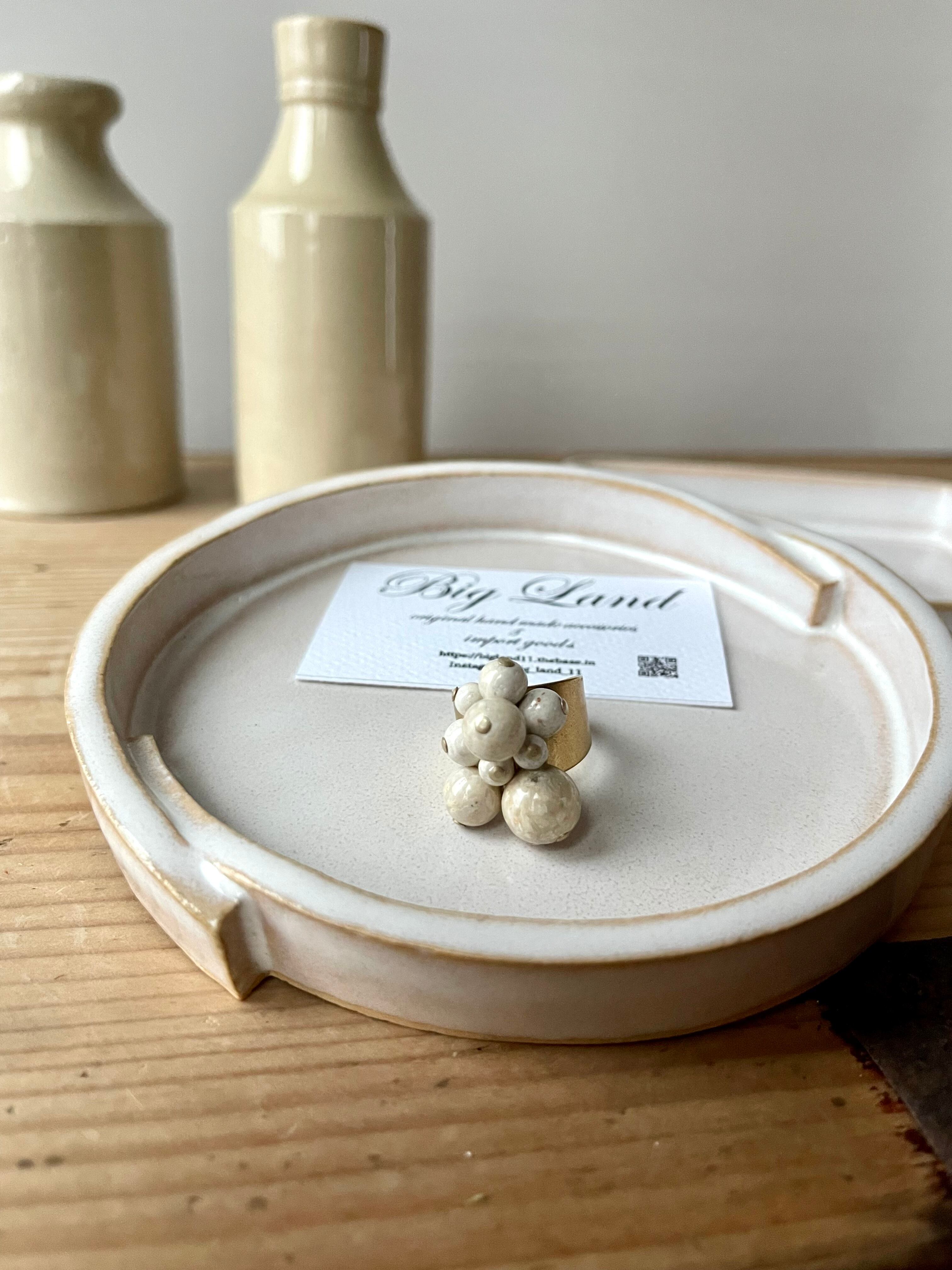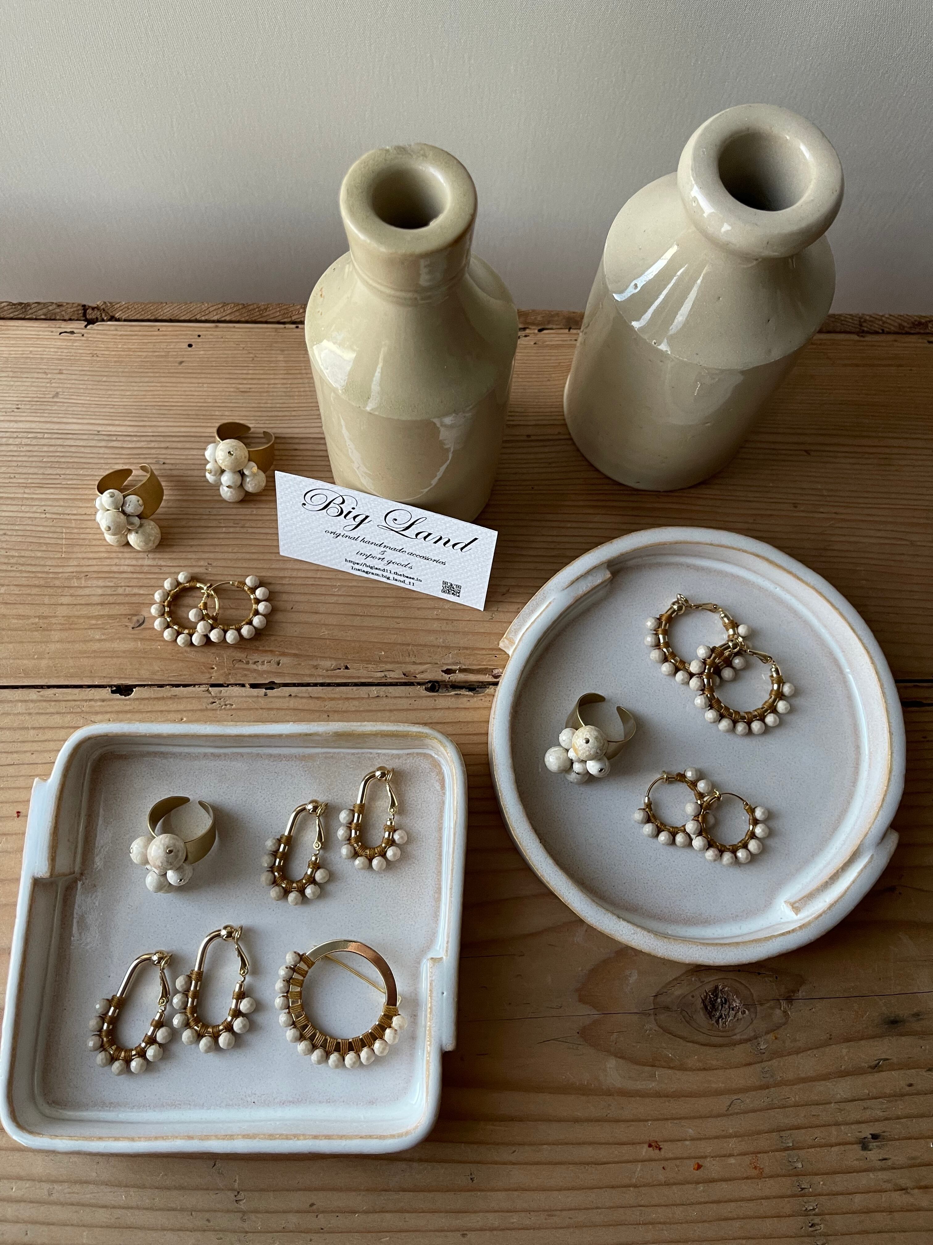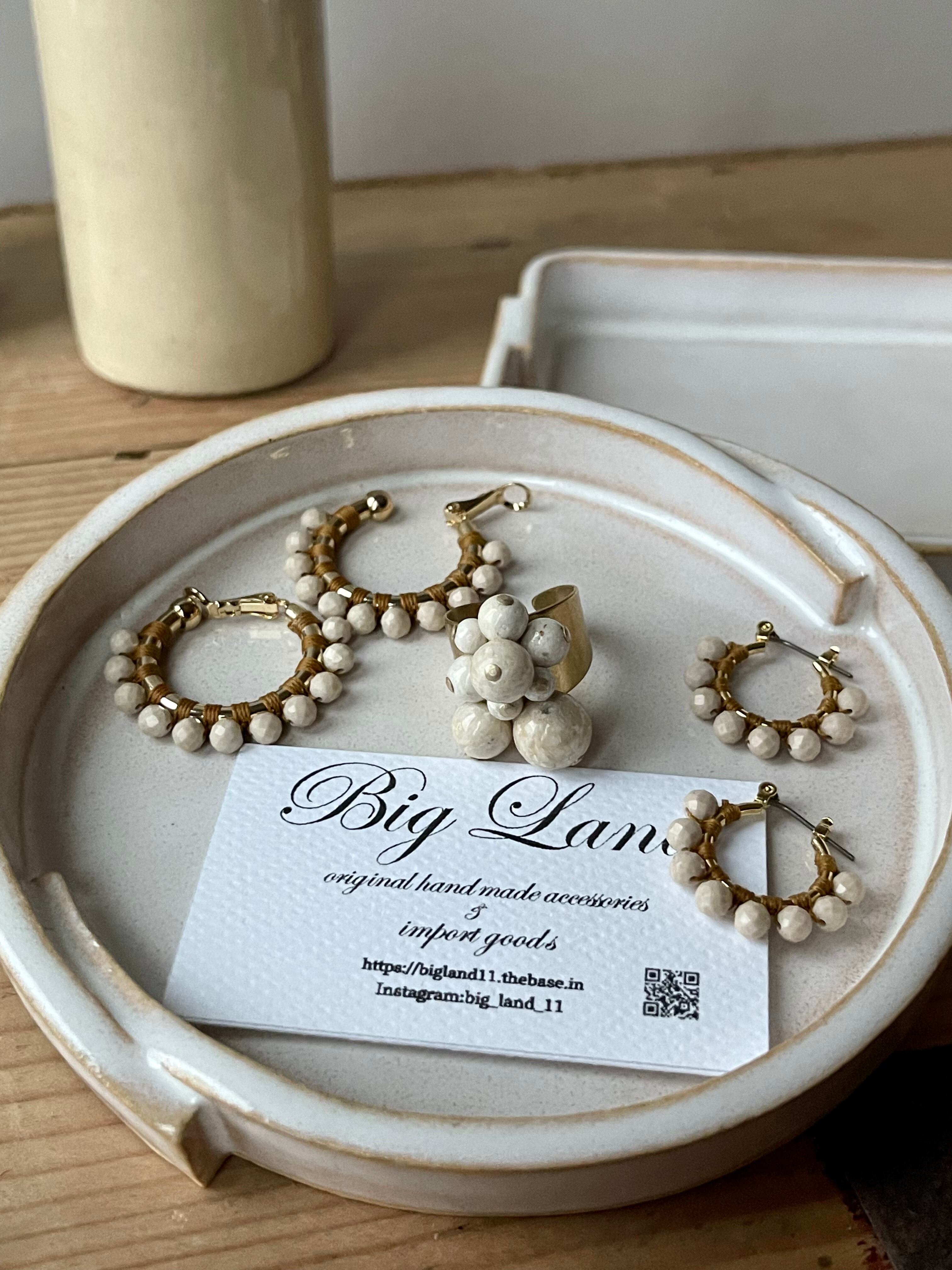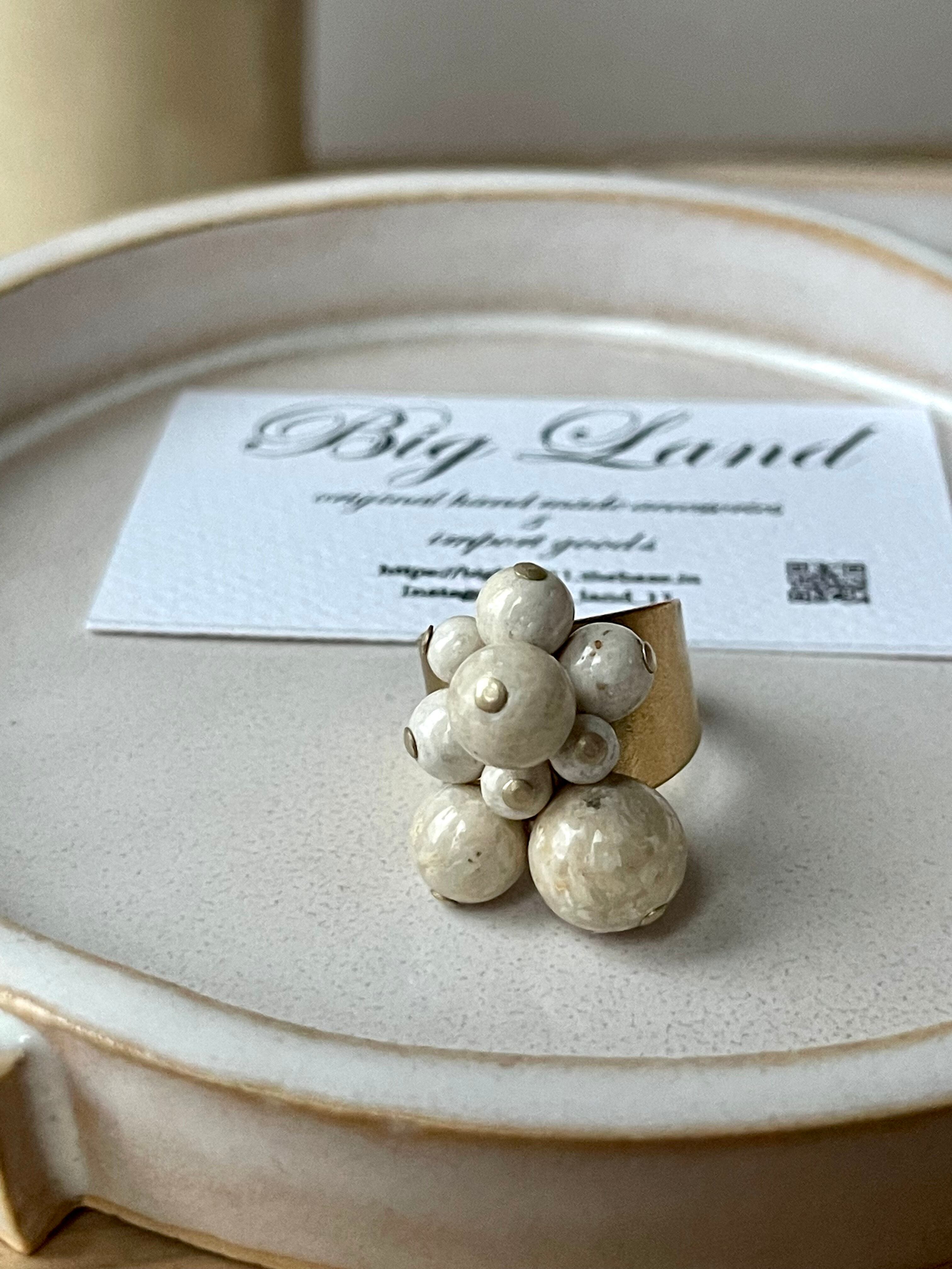 沢山の天然石がゴロゴロとデザイナーズの雰囲気で中指や人差し指に入れ、普段使いに主張し過ぎず肌馴染みも良いので出番が多くなりそう