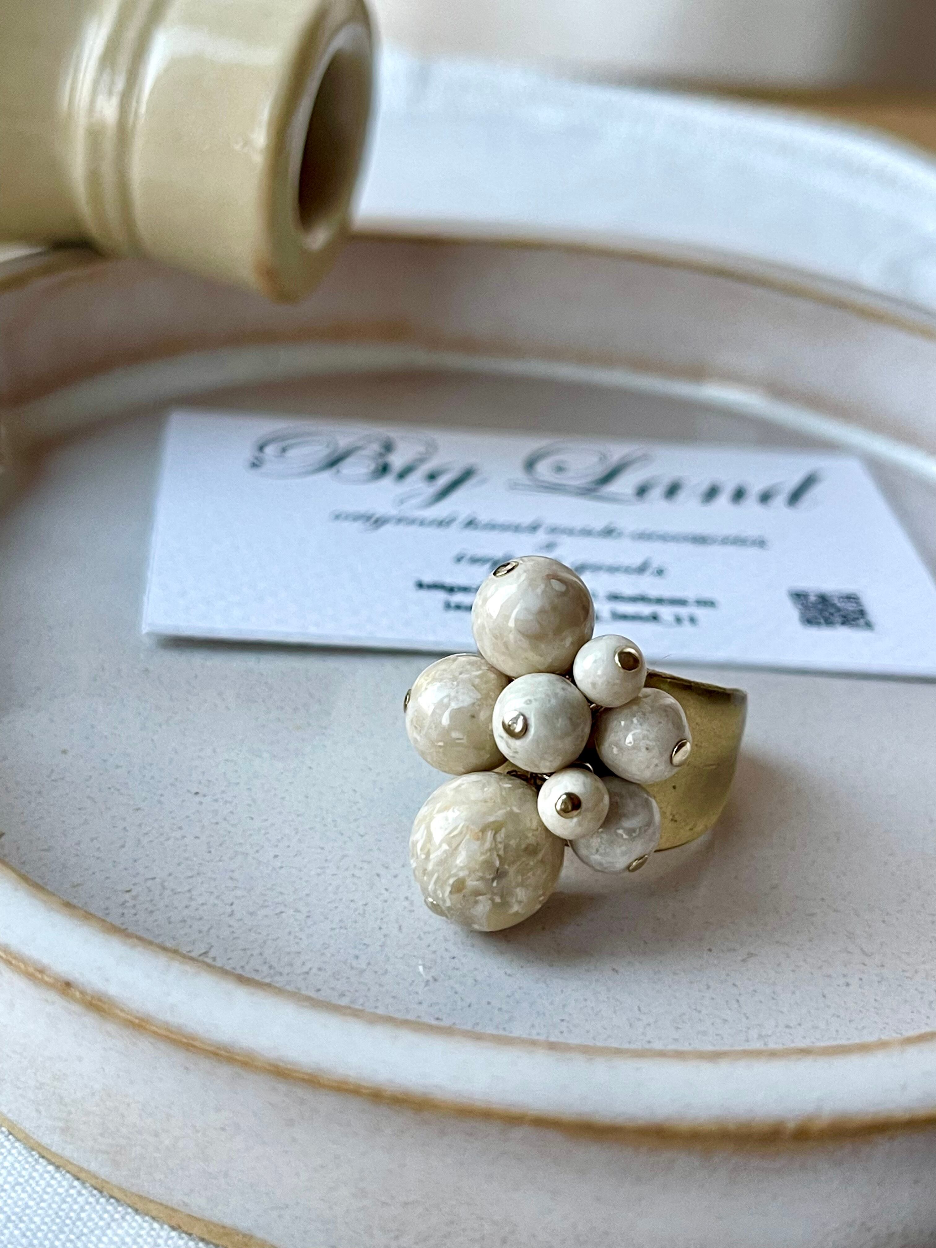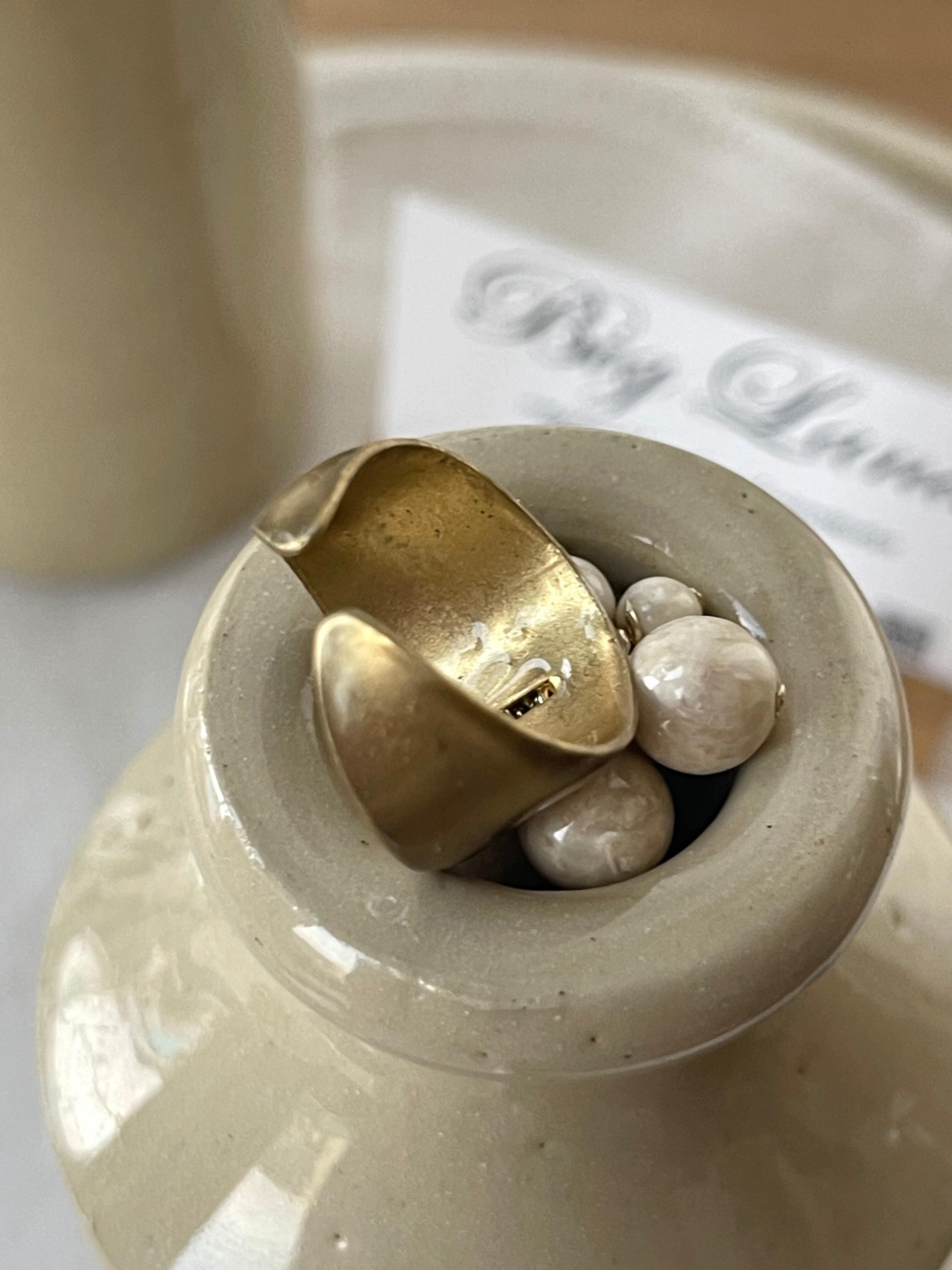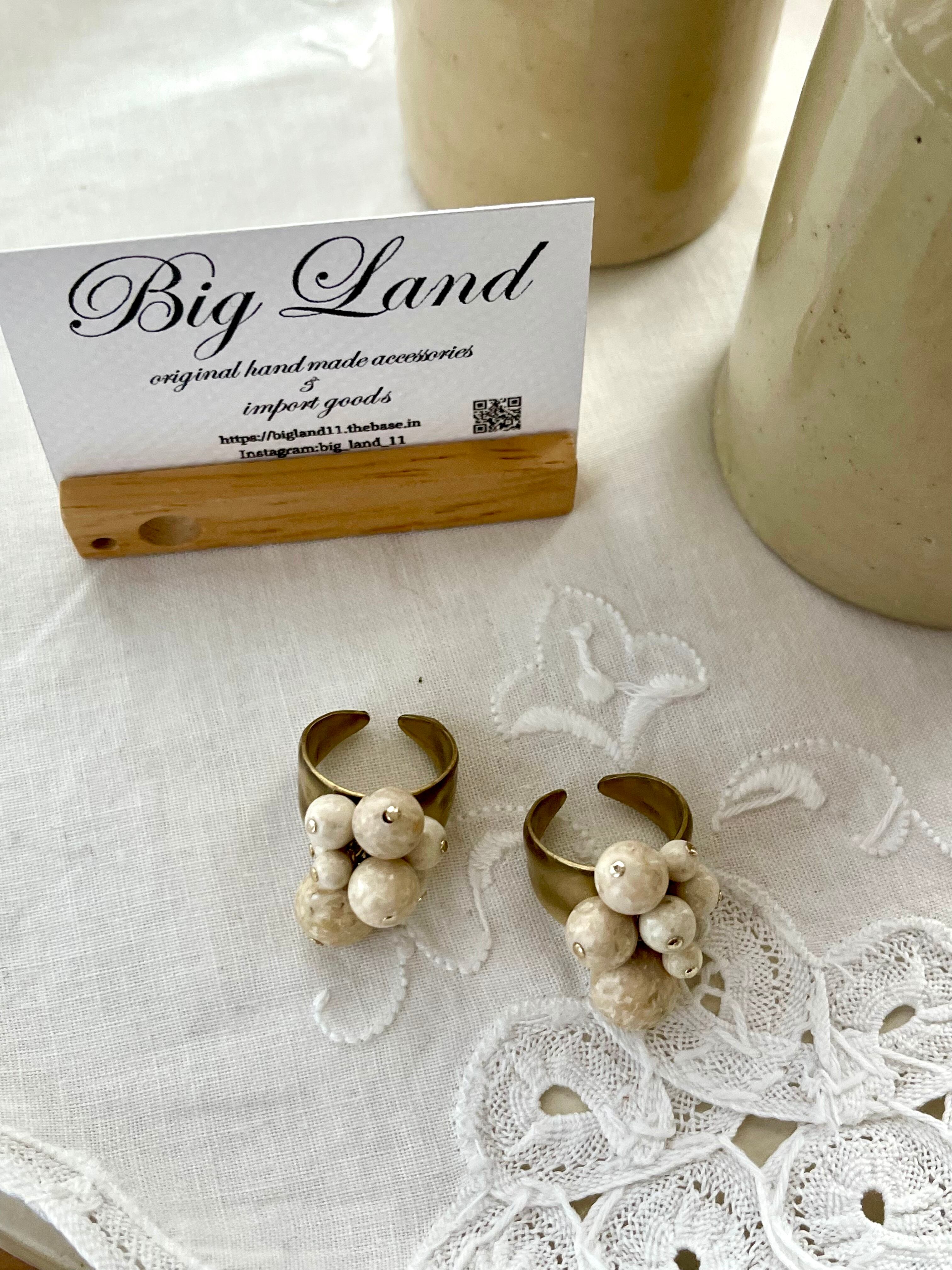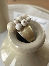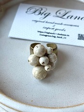 沢山の天然石がゴロゴロとデザイナーズの雰囲気で中指や人差し指に入れ、普段使いに主張し過ぎず肌馴染みも良いので出番が多くなりそう