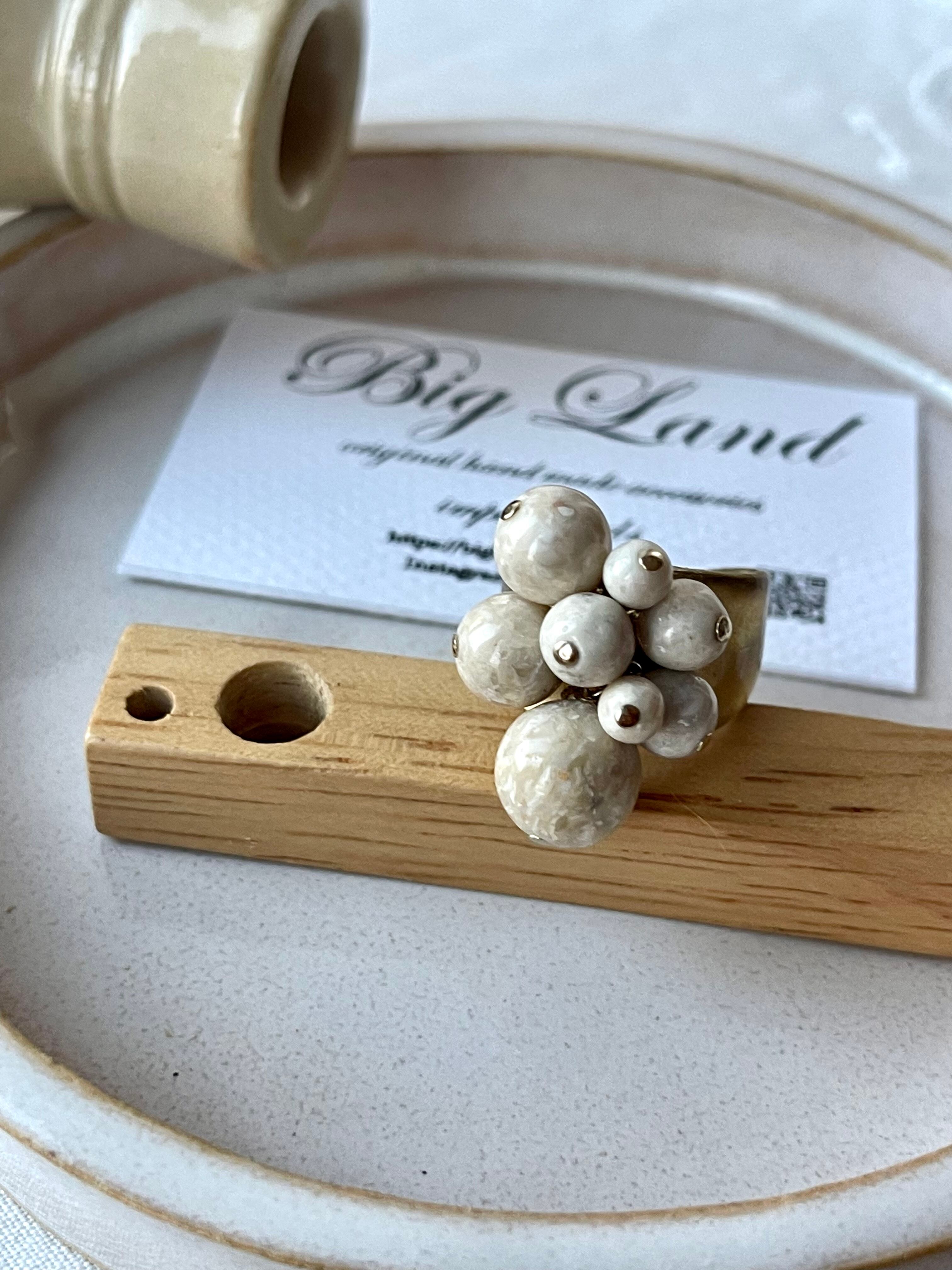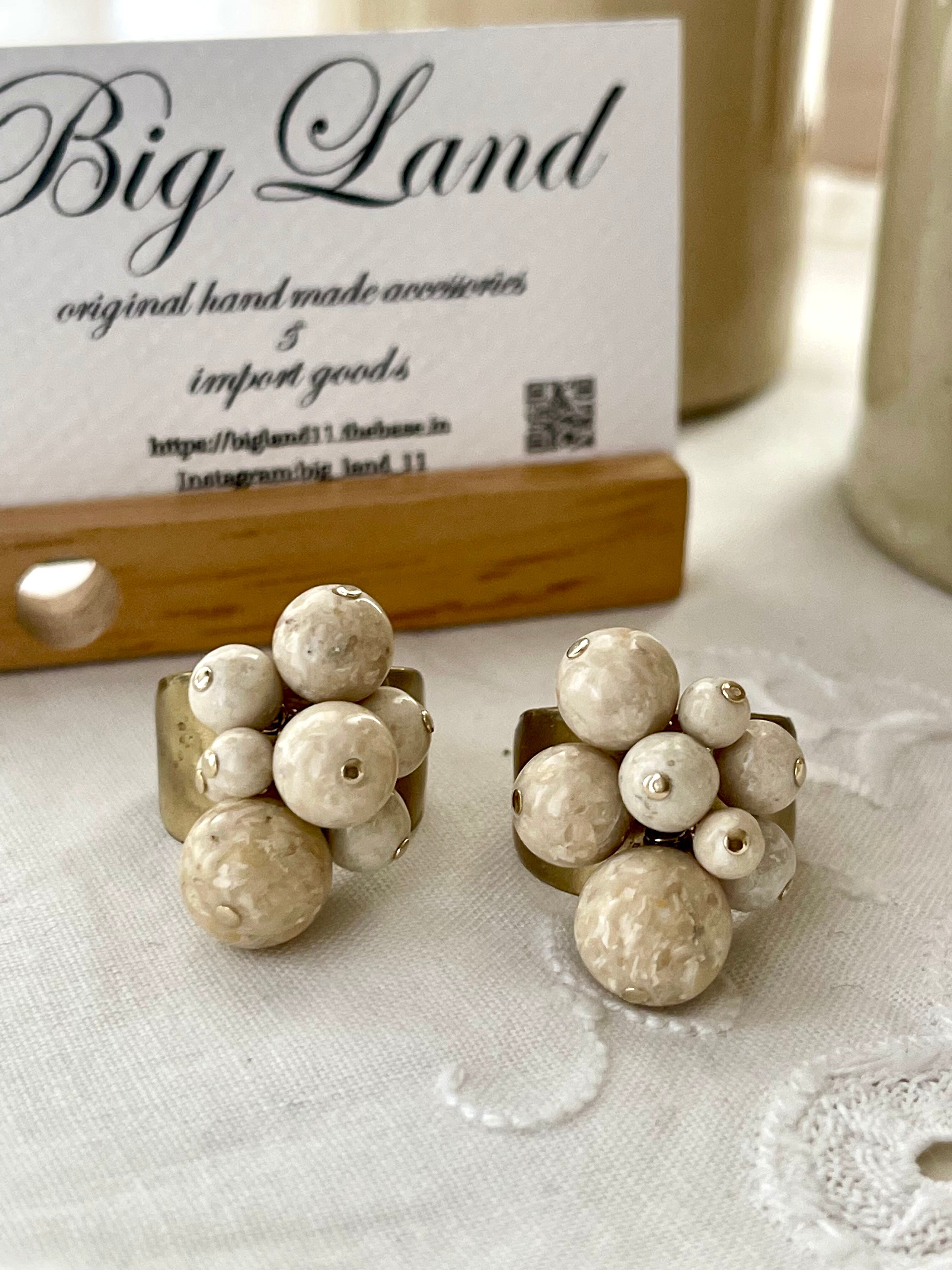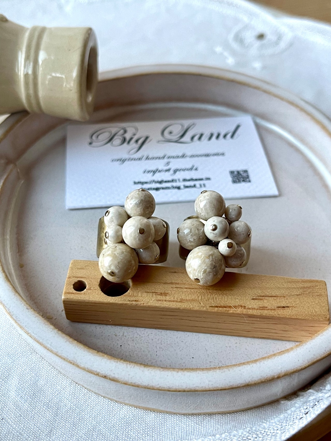 沢山の天然石がゴロゴロとデザイナーズの雰囲気で中指や人差し指に入れ、普段使いに主張し過ぎず肌馴染みも良いので出番が多くなりそう