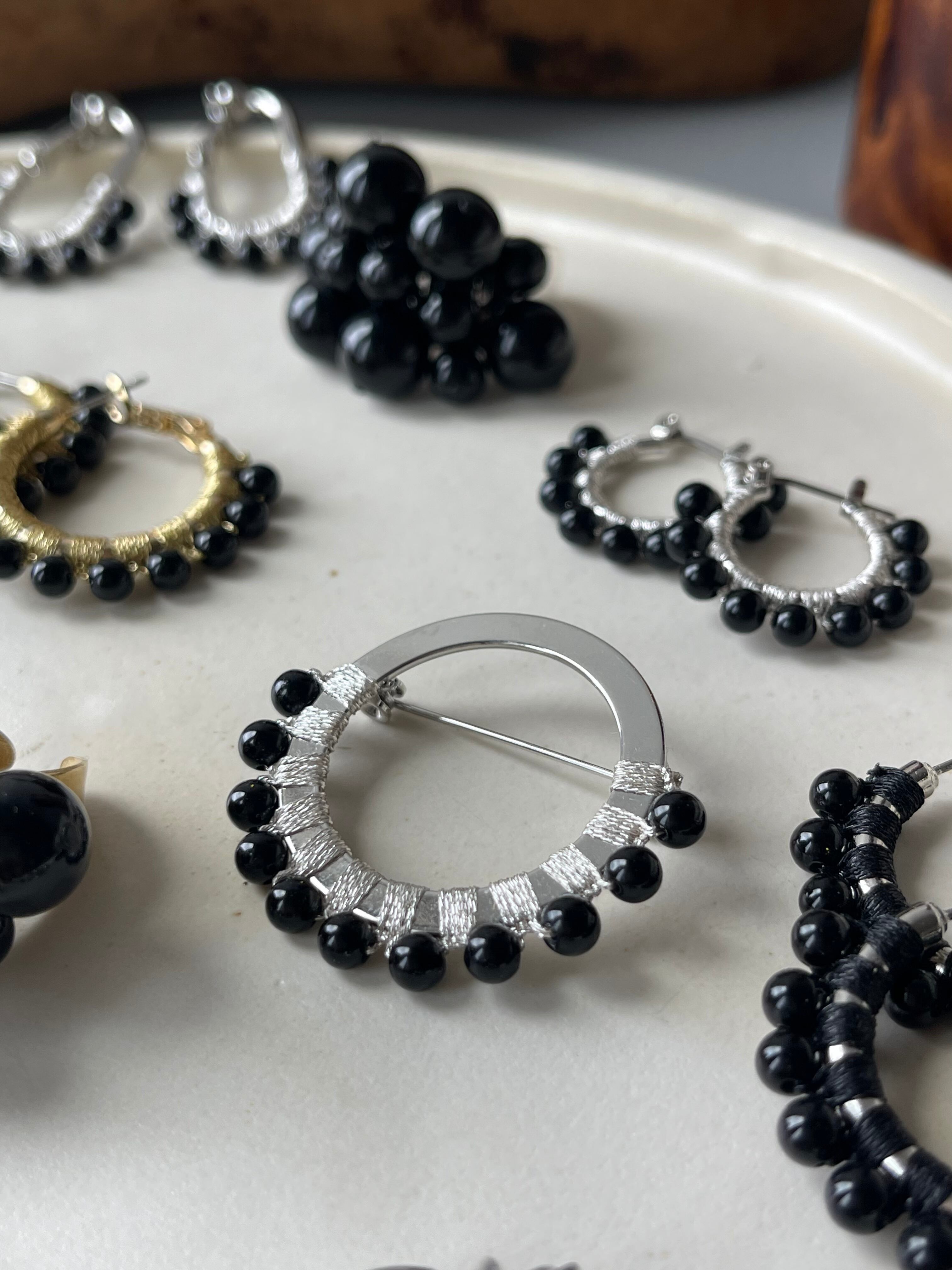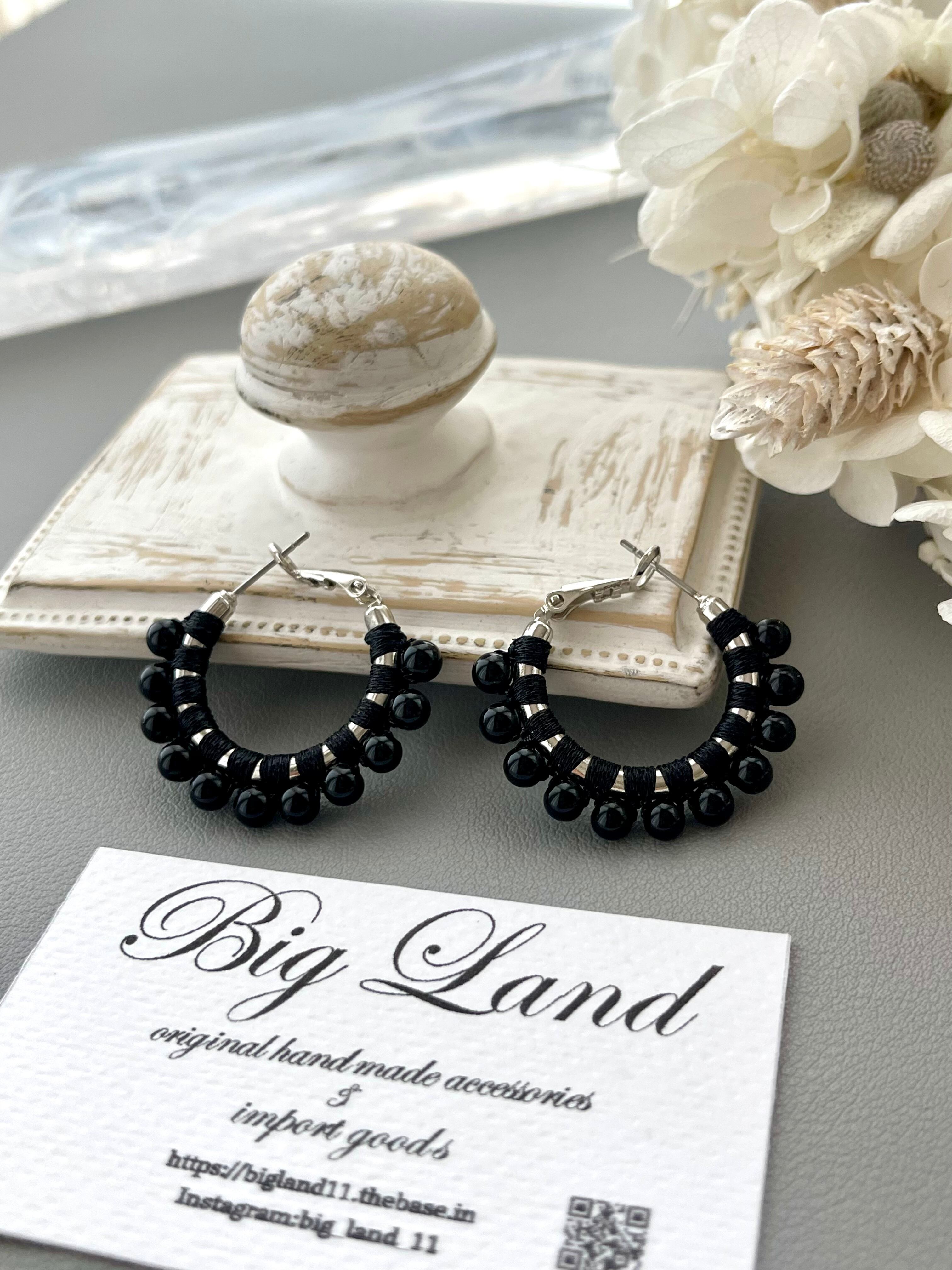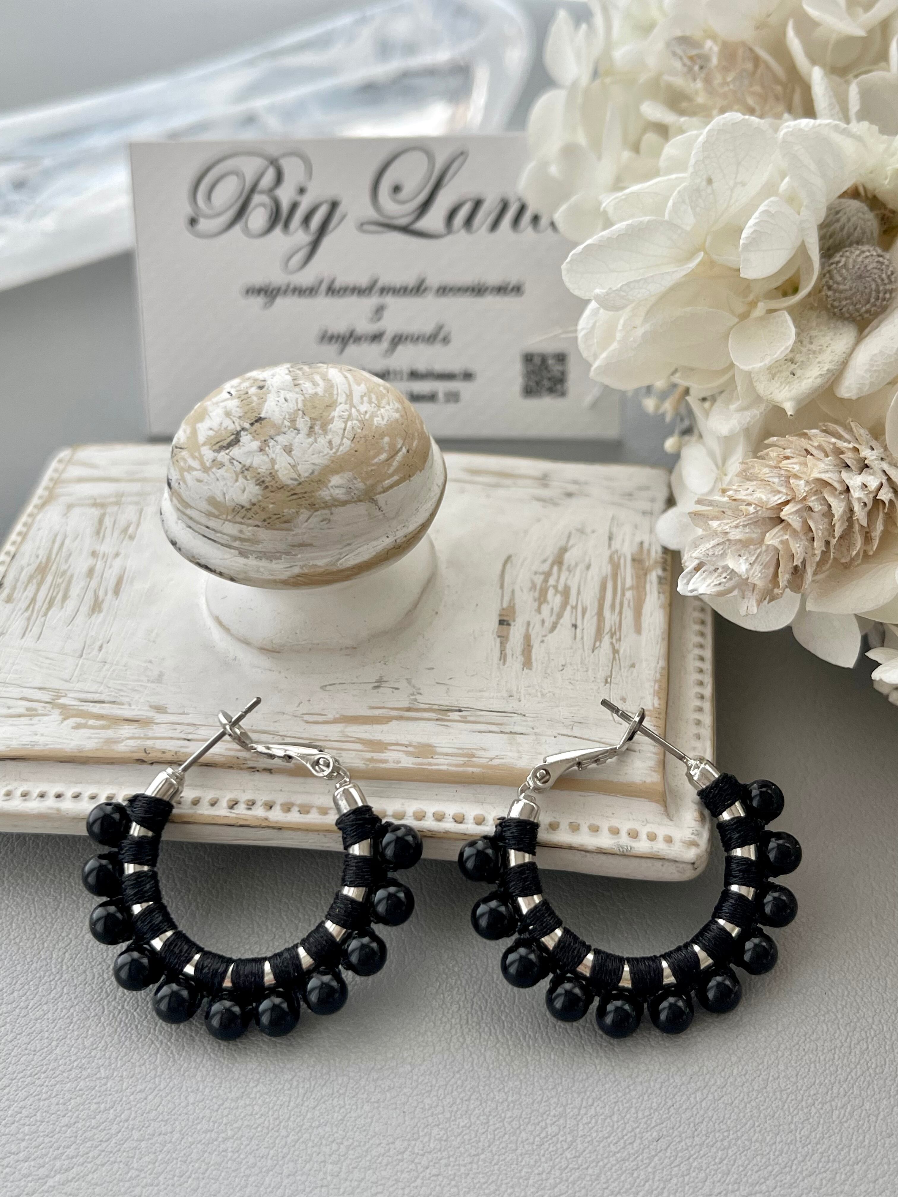 大変美しい艶々のオニキスを一粒一粒糸で丁寧にしっかり編みあげ、高級感がありどんなお洋服にも合うので出番が多くなると思います